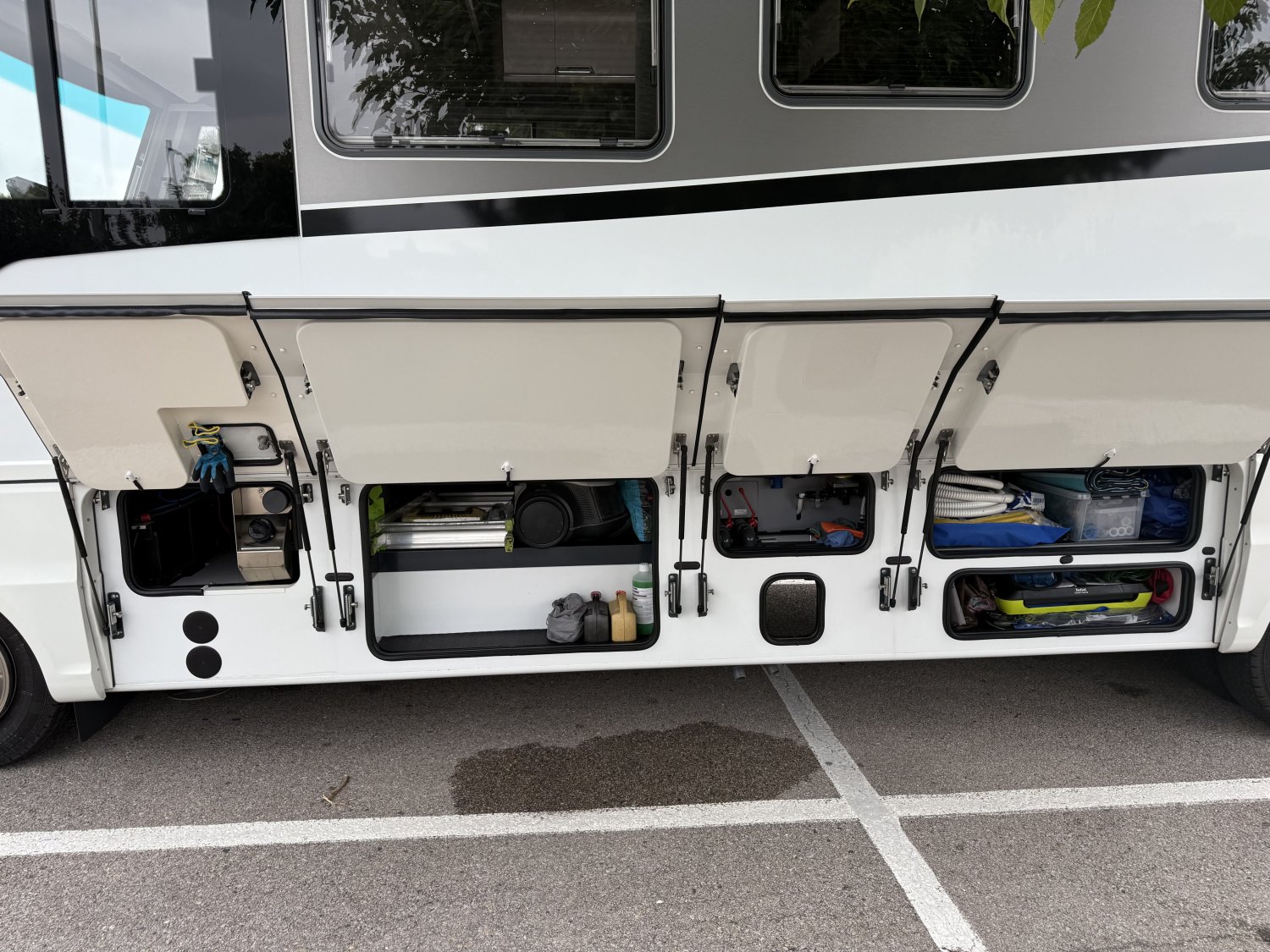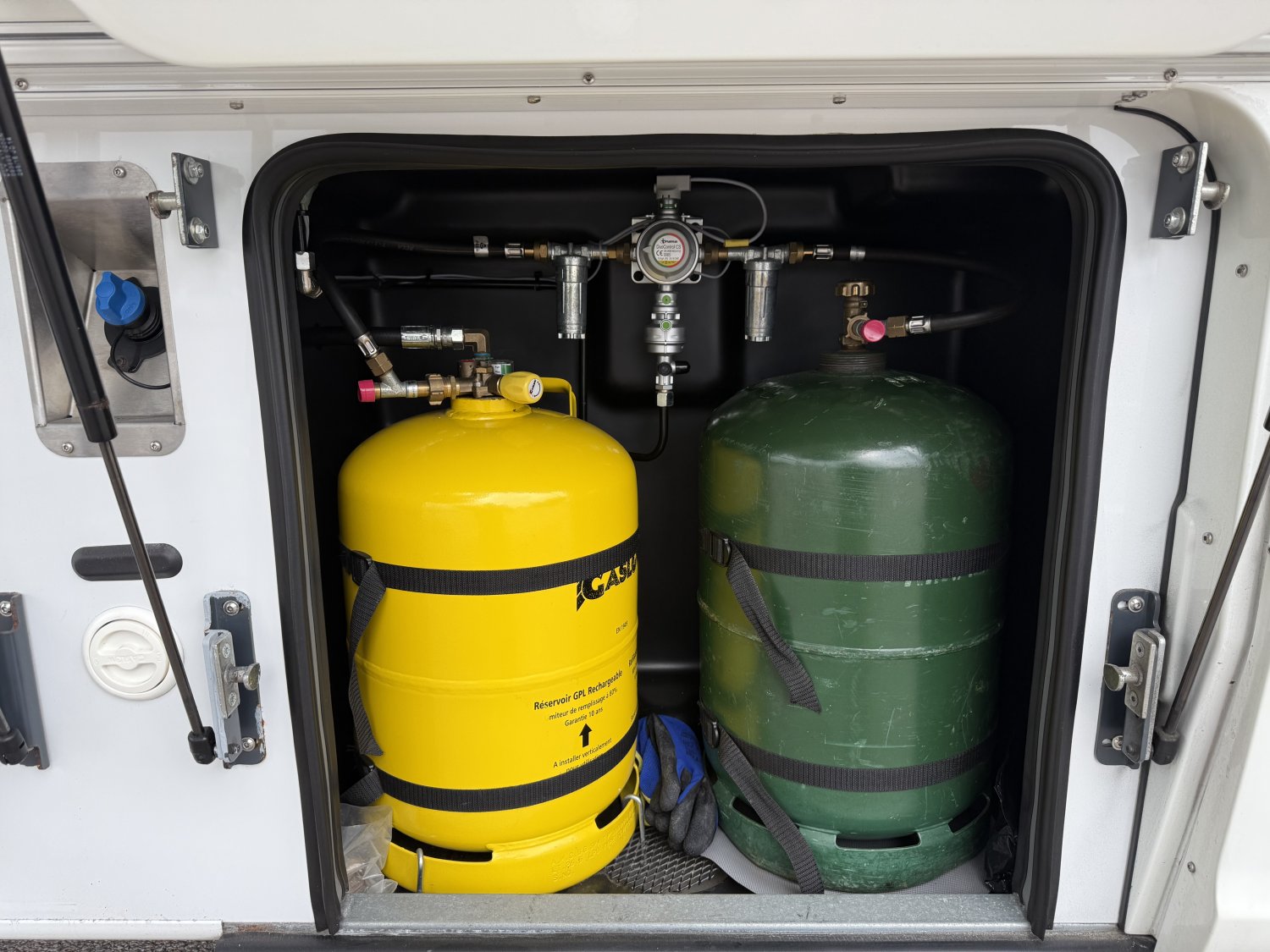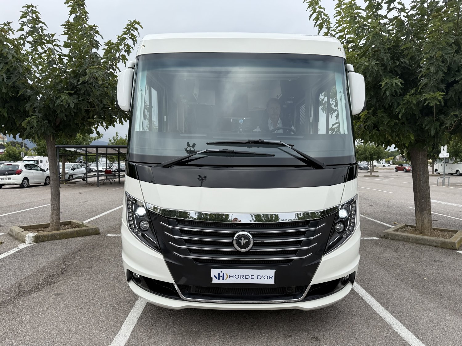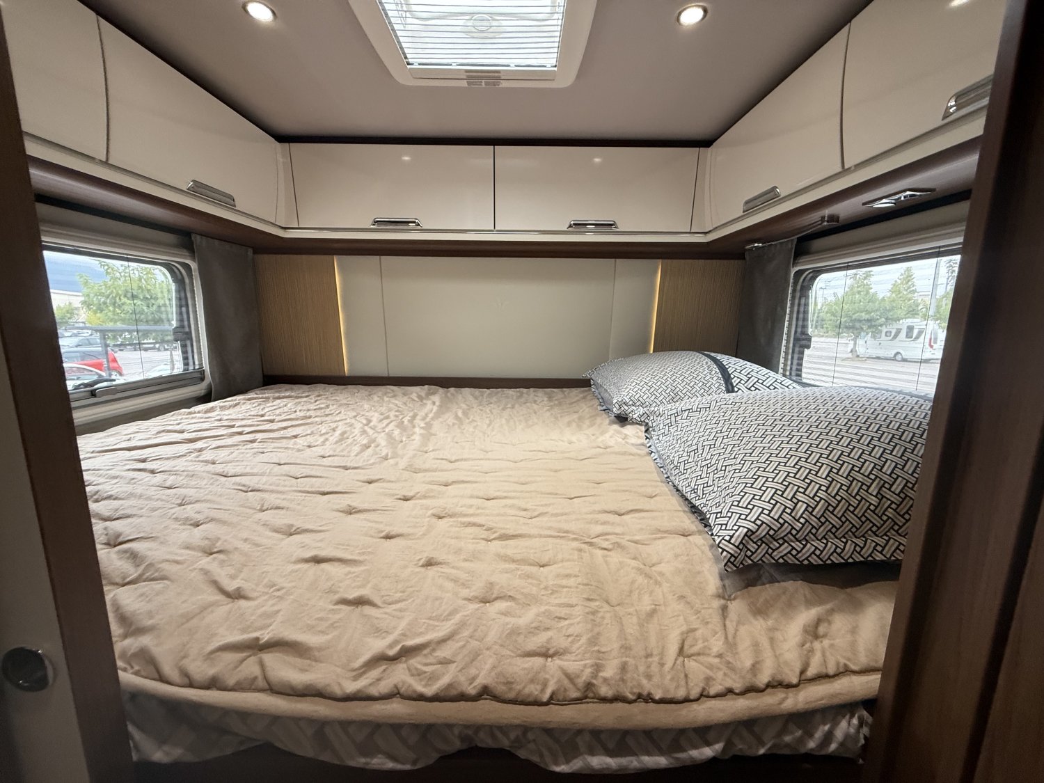 Pensé pour les grands voyageurs exigeants, ce modèle dispose d’une autonomie remarquable. Il est équipé de deux batteries Lithium Super B de 160 Ah chacune, alimentées par 425 W de panneaux solaires, d’un convertisseur 2000 W avec régulateur Victron SmartSolar MPPT, et d’un réservoir GPL pour le gaz de bord. Le chauffage central ALDE avec échangeur thermique garantit un confort parfait, quelles que soient les conditions extérieures. Il bénéficie également d’une douchette extérieure, de deux extracteurs d’air, d’une caméra de recul couplée à un GPS intégré, de deux téléviseurs LED avec antenne satellite automatique double tête, d’un store extérieur électrique et d’une roue de secours.