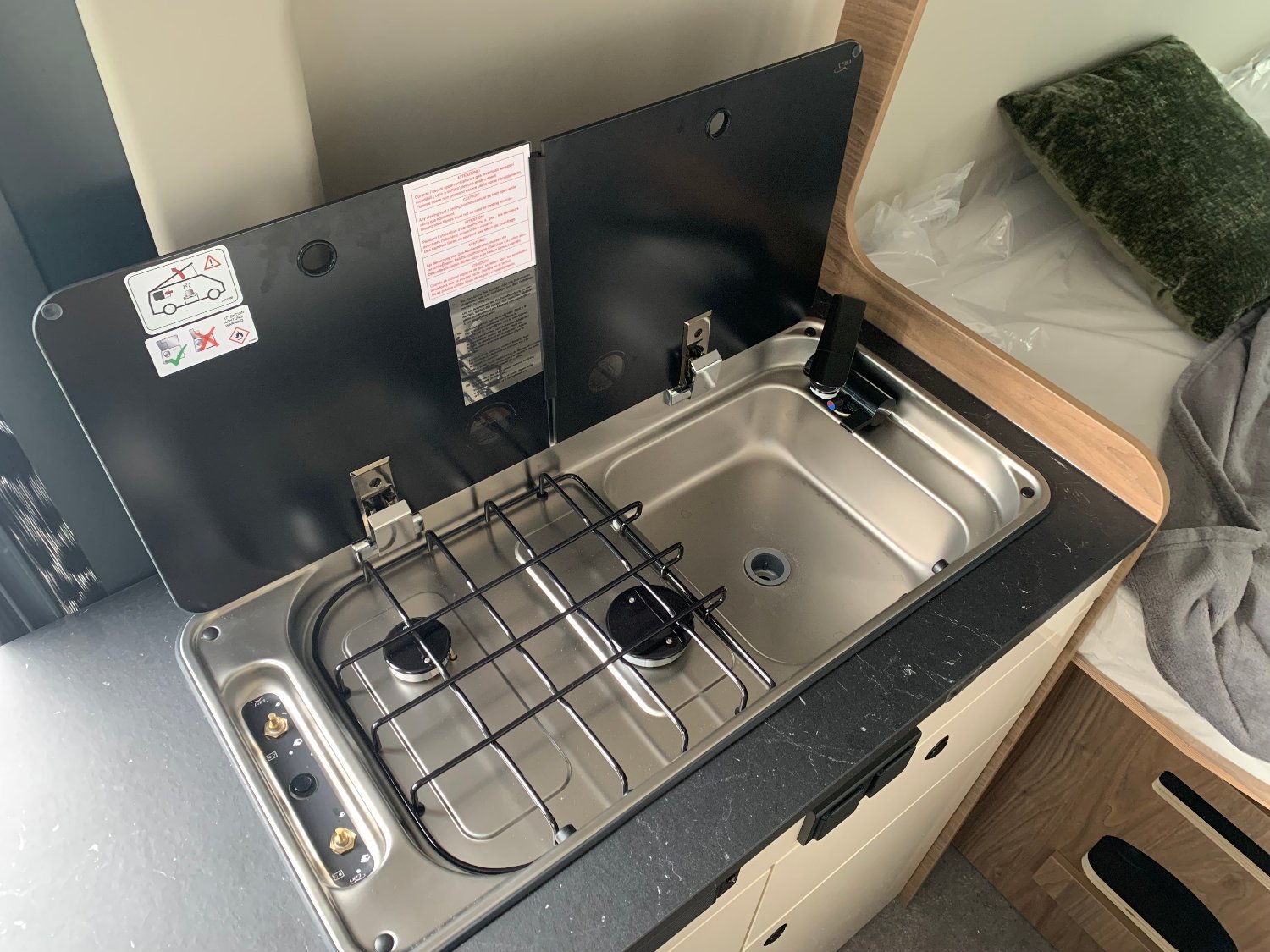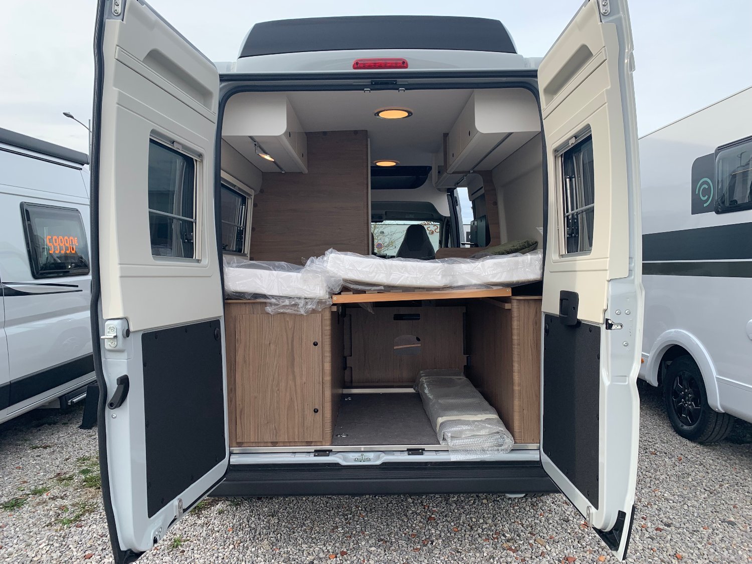 équipements : climatisation régulateur de vitesse ABS Jantes Alu 16’’ Traction + / Hill Descent Rétroviseurs Électriques / Antibrouillard Avant, Feux de jour, Moustiquaire de Porte, Cellule marche pied électrique, Éclairage 100 % LED - prises USB Plaque de cuisson avec 2 feux, réfrigérateur 84 litres à compression
