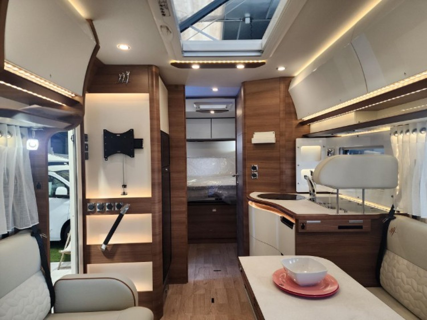 2 BATTERIES, AMBIANCE BOIS NACARAT, CHAUFFAGE GAZ/ELECTRICITE 6KW, DOUCHETTE EXTERIEURE, HALOGENE, MODELE NEUF D EXPOSITION, RADIO DAB, RECHAUD 2 FEUX, TABLE PORTEFEUILLE, VERINS STABILISATEURS