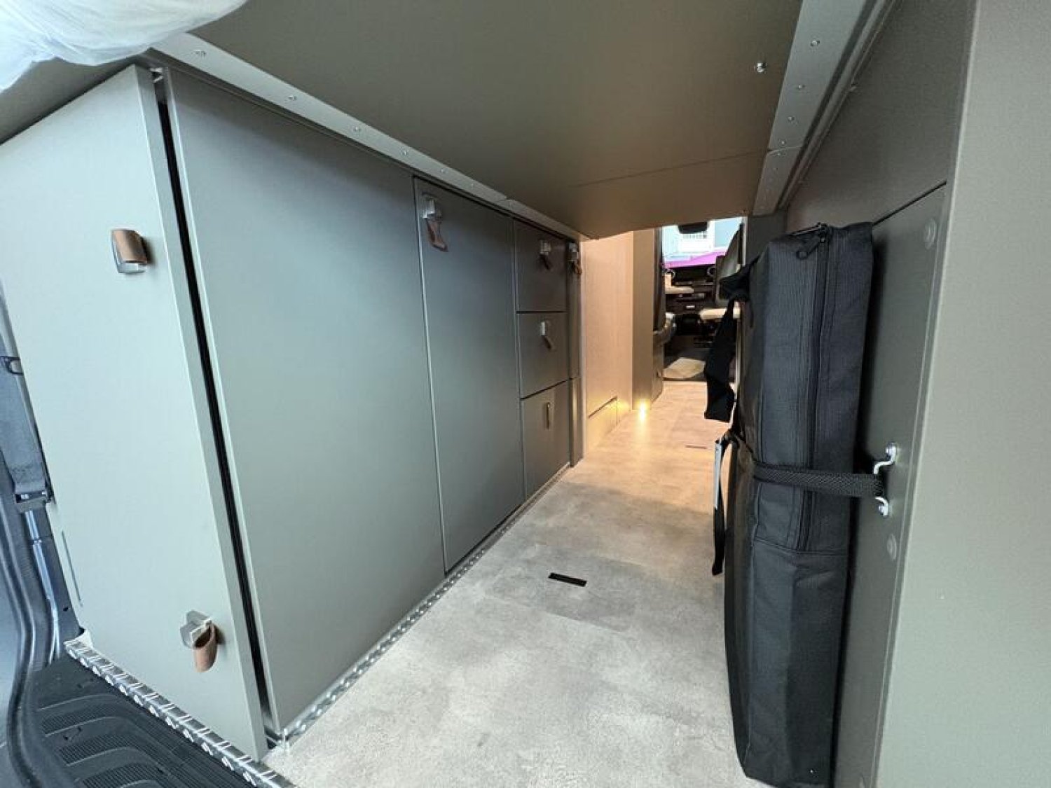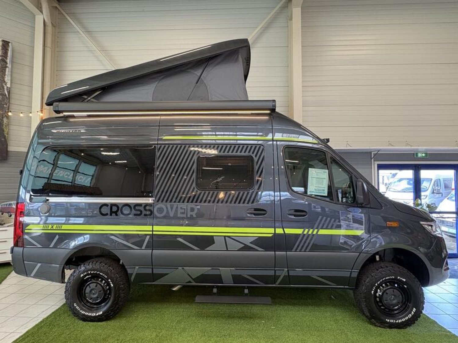 OPTIONS CONSTRUCTEUR Série CrossOver : 419 CDI 190 ch, Transmission intégrale 4x4 permanente, feux AR LED et réservoir carburant 93 l, Boîte automatique 9G-TRONIC incluant la fonction Hold, Rétroviseurs extérieurs rabattables électrique, Calandre chromée, Feux LED haute performance, Protection sous moteur, Feux antibrouillard avec feux de virage, Spoiler et calandre peints couleur carrosserie, Jantes acier 16" avec pneus tout-terrain, Couleur extérieure noir Obsidienne métallisé, Frein de stationnement électrique, Assistance électrique à la fermeture de la porte coulissante, Pack chargement pour le tableau de bord avec 2 x prises USB-C 5 V / 1 x prise 12 V, Volant cuir, Sièges confort Mercedes-Benz, Module PSM Mercedes-Benz programmable, Climatisation automatique THERMOTRONIC avec capteur de pluie, Bande filtrante thermo-isolante sur pare-brise et chauffant, Régulateur de vitesse actif DISTRONIC PLUS avec commandes au volant, Assistance au freinage, Détecteur de franchissement de ligne, Assistant vigilance du conducteur, Système de gestion automatique des phares, Assistant angles morts, Assistant reconnaissance des panneaux de signalisation, Sérigraphie Carbon des baies latérales, Barres LED 11", Sérigraphie CrossOver, Chauffage à air pulsé gasoil 6 kW avec chauffe-eau 10l et kit altitude et résistance 1.800 W, Réservoir eaux usées isolé et chauffé, 2 Batteries "HYMER Smart Battery System" (150 Ah lithium) avec chargeur supplémentaire 18 A et panneau de contrôle, Ambiance style "HOME" (2 coussins houssés + pochette de rangement en tissu), 2 Chaises pliantes + table, Set d’outils (bêche pliante, hache, etc.) dans le compartiment de rangement arrière, Caillebotis de douche, Système multimédia Mercedes-Benz MBUX 10,25" avec navigation, volant multifonction, DAB+, écran tactile et caméra de recul + PTAC 4100kg : 260 €