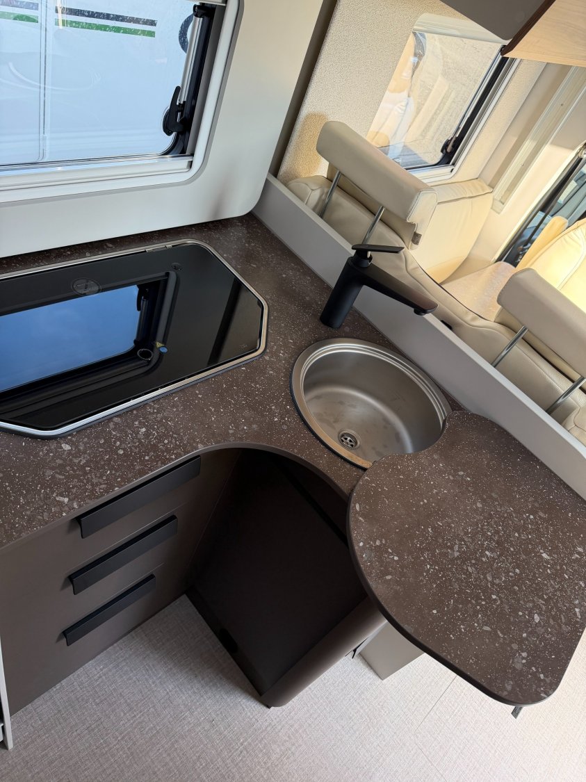 Jantes aluminium 16'' Bi-Color, Start & Stop, Collecteur de déchets et verrouillage centralisé, ************, CHAUFFAGE/CHAUFFE EAU COMBI 6 GAZ, Fix and Go Kit (à la place de la roue de secours), Frein à main électrique, REFRIGERATEUR 131L DONT COMPARTIMENT CONGELATION 15L, COFFRE A GAZ 2X11 KG, ABS (système antiblocage des roues), Station multimédia avec caméra de recul, Capteur de pression, Porte d'entrée version large avec fenêtre, moustiquaire,, Pare-chocs avant couleur carrosserie, Pneus 4 saisons, Ressorts à lames composites, Régulateur de vitesse avec limiteur de vitesse, Réservoir diesel 60 litres, Rétroviseurs bras large, Traction + avec fonction Hill Descent Control, Alternateur renforcé (220 Ah), Habillage des sièges cabine assorti à la cellule, Porte-gobelets, Rétroviseurs électriques et dégivrants, Tableau de bord Techno (application aluminium), BATTERIE LITHIUM 100Ah, DCDC 25AMP, Châssis Fiat à voie arrière élargie, Feux antibrouillard avant, Feux de jour, Sièges cabine pivotants, Stores plissés occultants cabine, Volant et pommeau de levier de vitesse gainés cuir, ********, Marchepied cellule encastré, Marchepied électrique, Peinture extérieure Gris Lanzarote (cabine), Airbag conducteur et passager, Climatisation manuelle en cabine, Marchepieds cabine, Plancher isolé en XPS avec soubassement en polyester