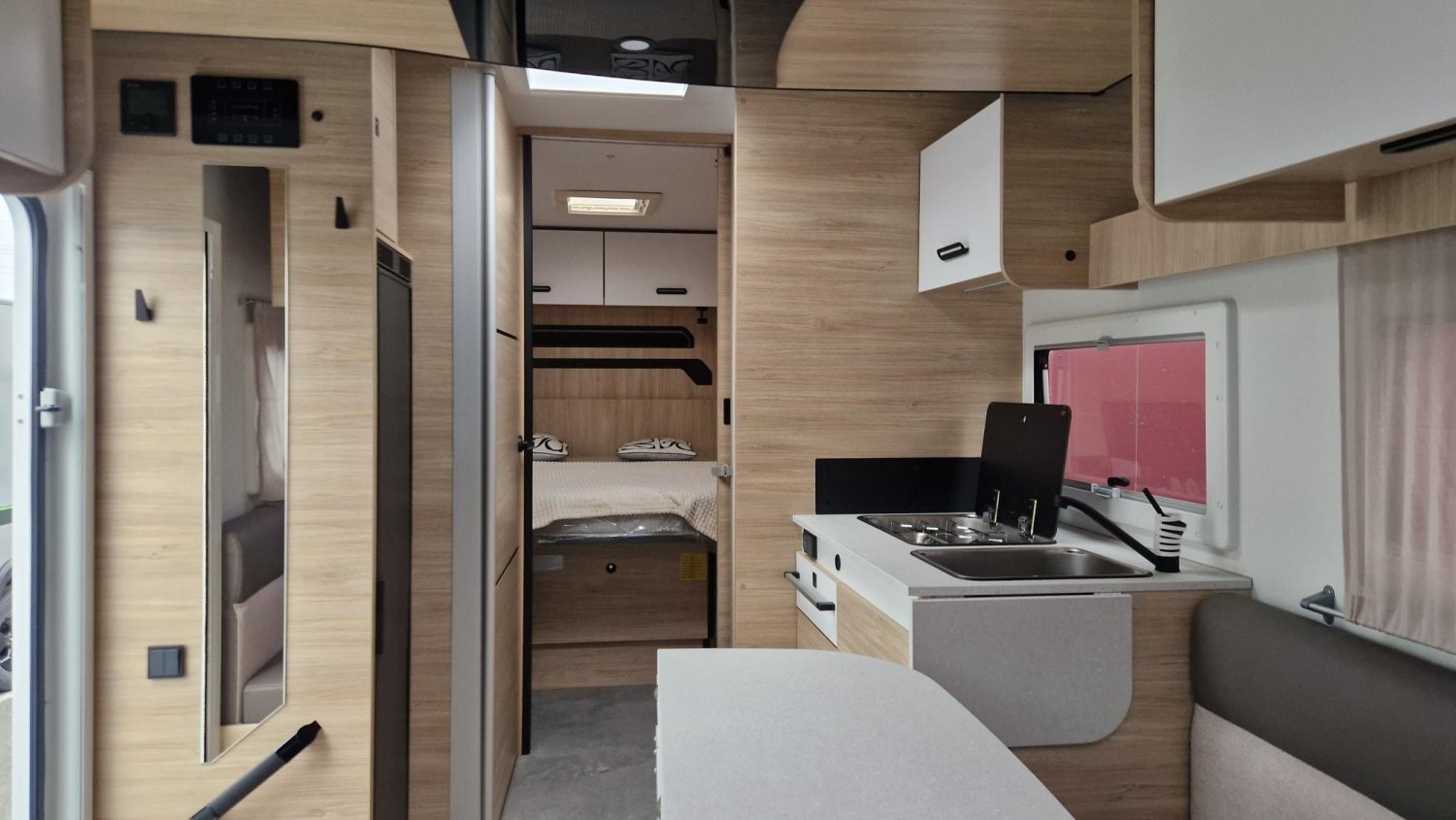 e Chausson 798 ultimate Line 2026 est un camping-car profilé haut de gamme conçu pour célébrer les 45 ans de la marque. Long d’environ 7,4 m, il offre un espace intérieur moderne et convivial avec un grand salon face-face « Smartlounge », une cuisine équipée, une salle d’eau avec douche séparée et un confortable lit central réglable en hauteur. Il dispose également d’un lit de pavillon électrique et d’un vaste garage arrière. Basé sur le châssis Fiat Ducato 2.2 L 140 ch , il combine confort de conduite, design élégant et nombreux équipements de série : jantes alliage, panneau solaire, caméra de recul, multimédia connecté et finitions soignées. Idéal pour voyager à deux ou en famille avec style et autonomie.