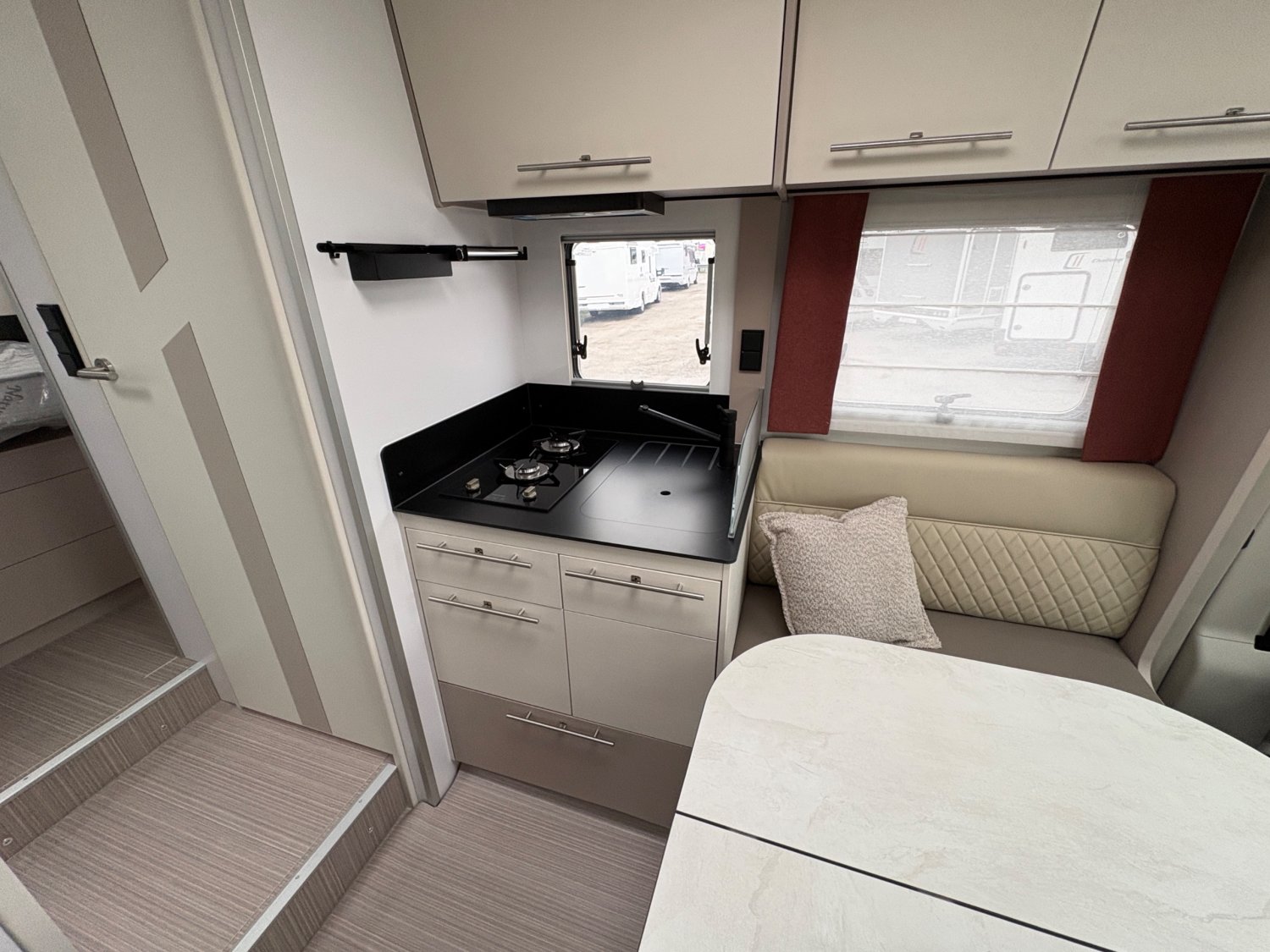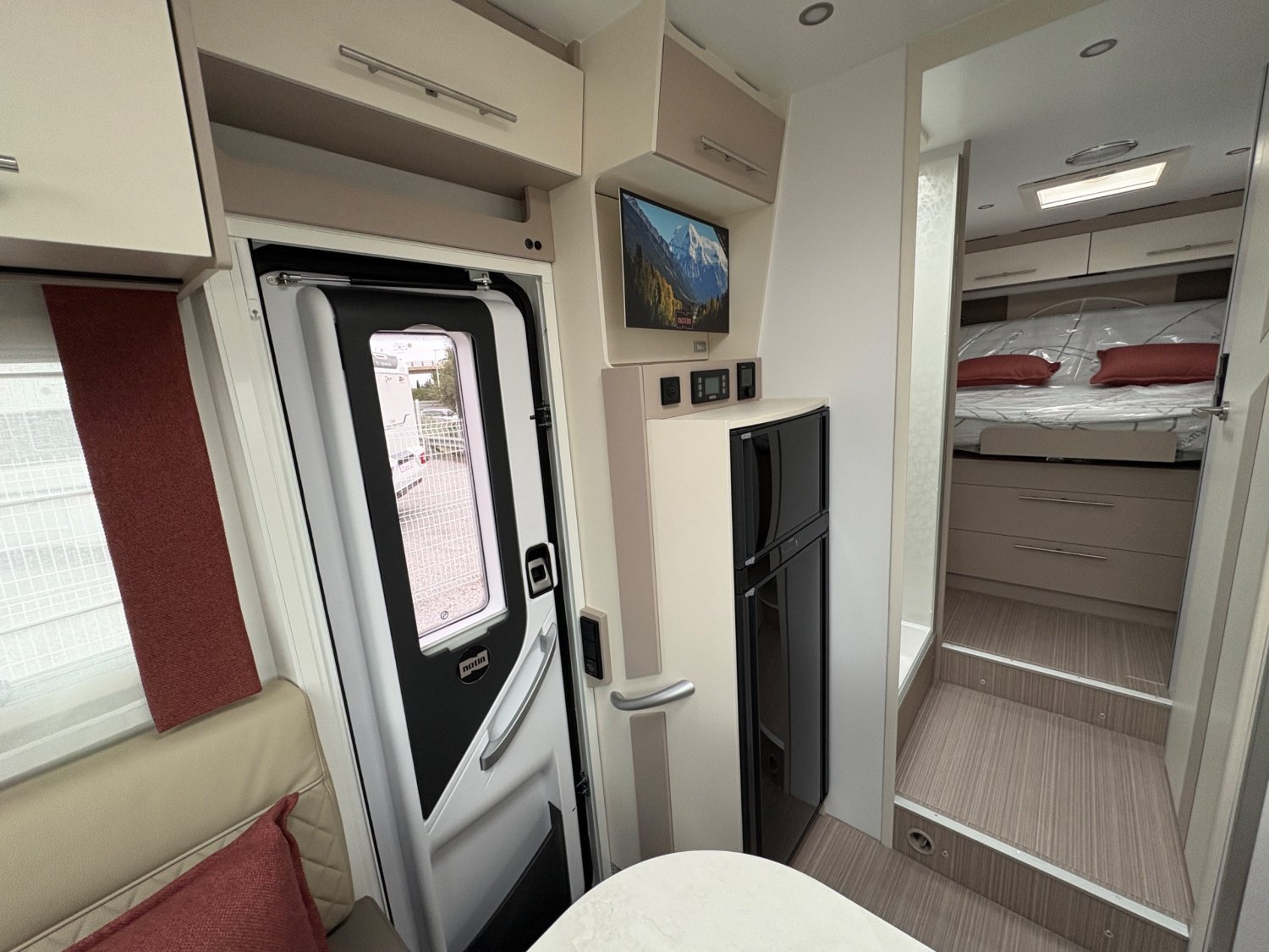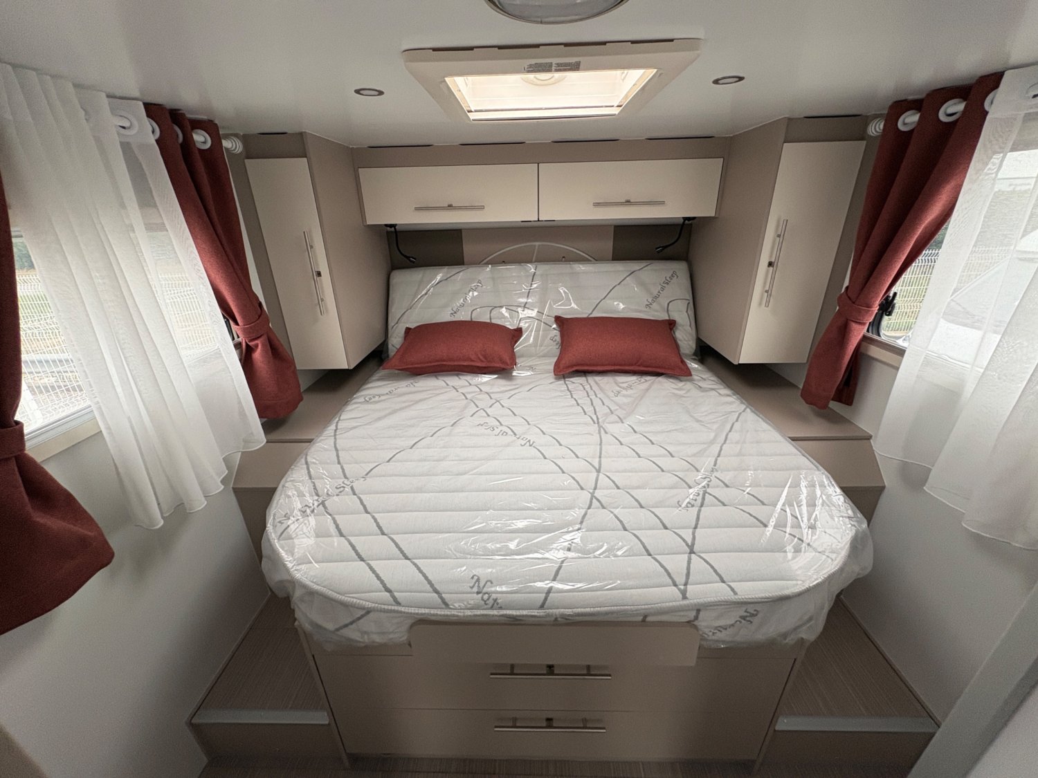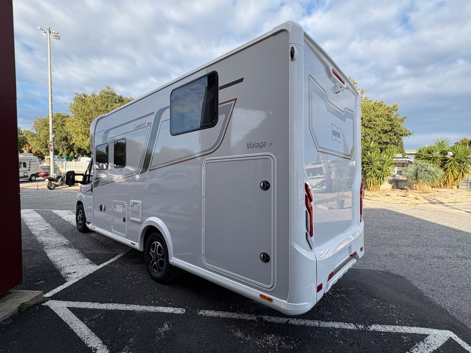 « Le Notin Malaga CF 2026, profilé élégant de 7,19 m construit sur porteur Fiat Ducato 2,2 L 140 ch, incarne le savoir-faire haut de gamme de la marque française avec sa cellule sans bois en structure composite garantissant une isolation optimale, son lit central spacieux surélevé au-dessus d’une soute modulable, sa salle d’eau transversale avec double cloisonnement, sa dînette conviviale baignée de lumière naturelle, son mobilier raffiné aux finitions laquées, ainsi que son équipement technologique complet — comprenant climatisation cabine, caméra de recul, panneau solaire, batterie lithium et écran multimédia tactile —, le tout dans une ambiance moderne et feutrée qui combine confort, autonomie et élégance pour offrir aux voyageurs exigeants une expérience de route et de vie à bord digne d’un véritable cocon mobile. »