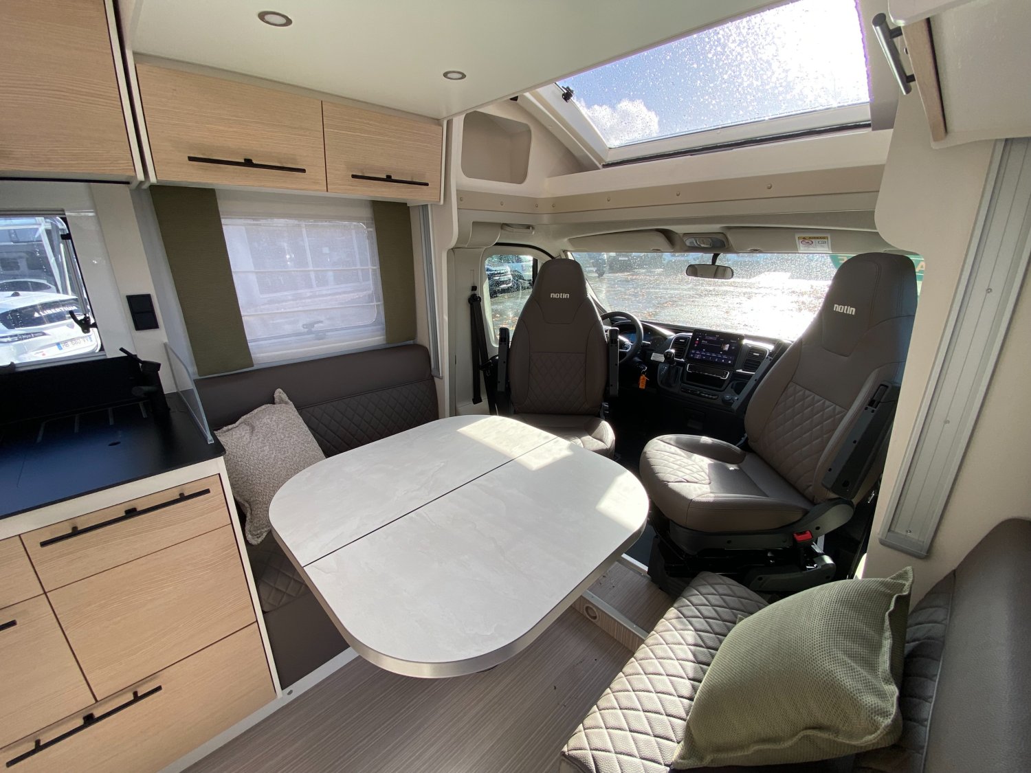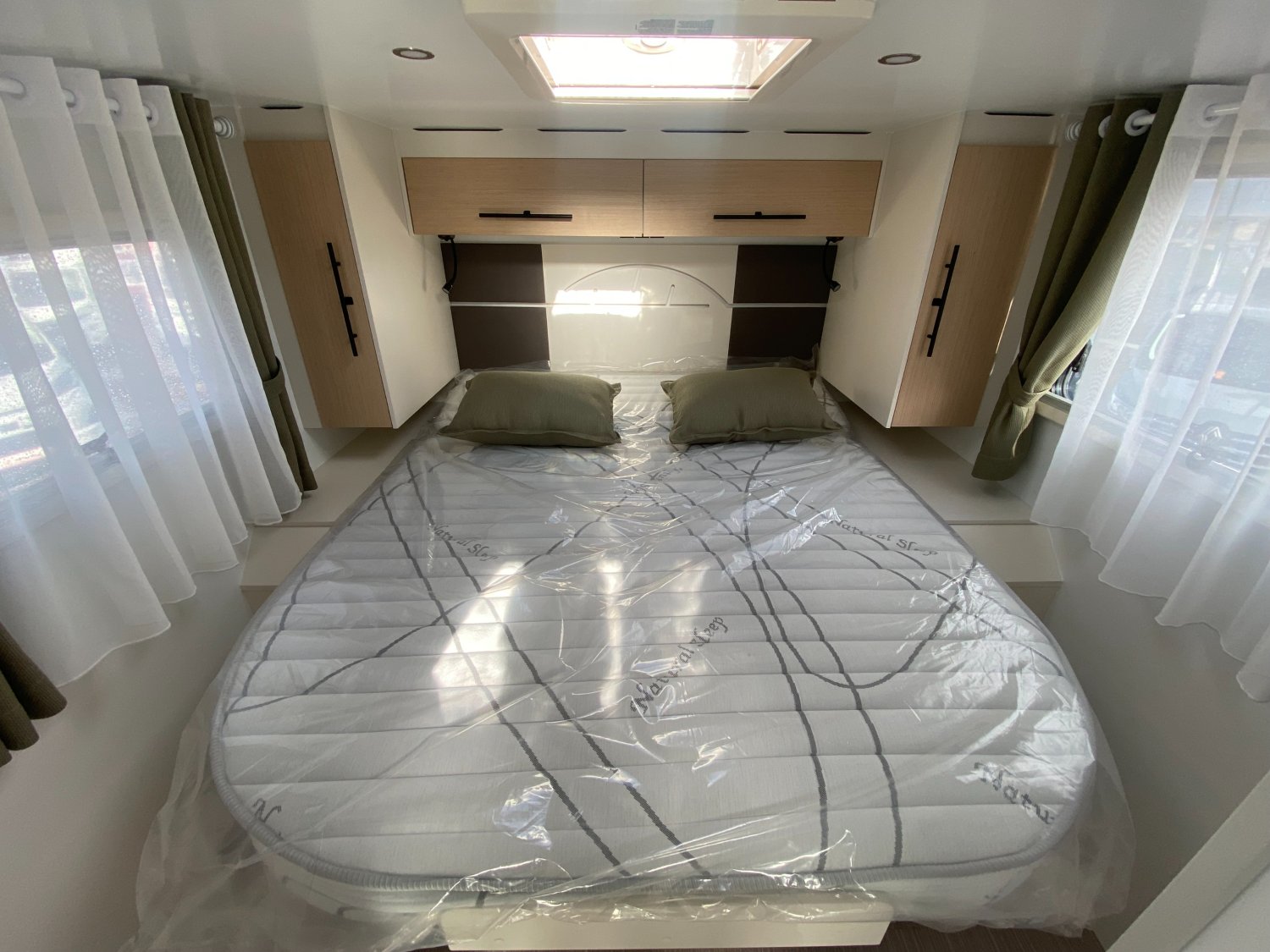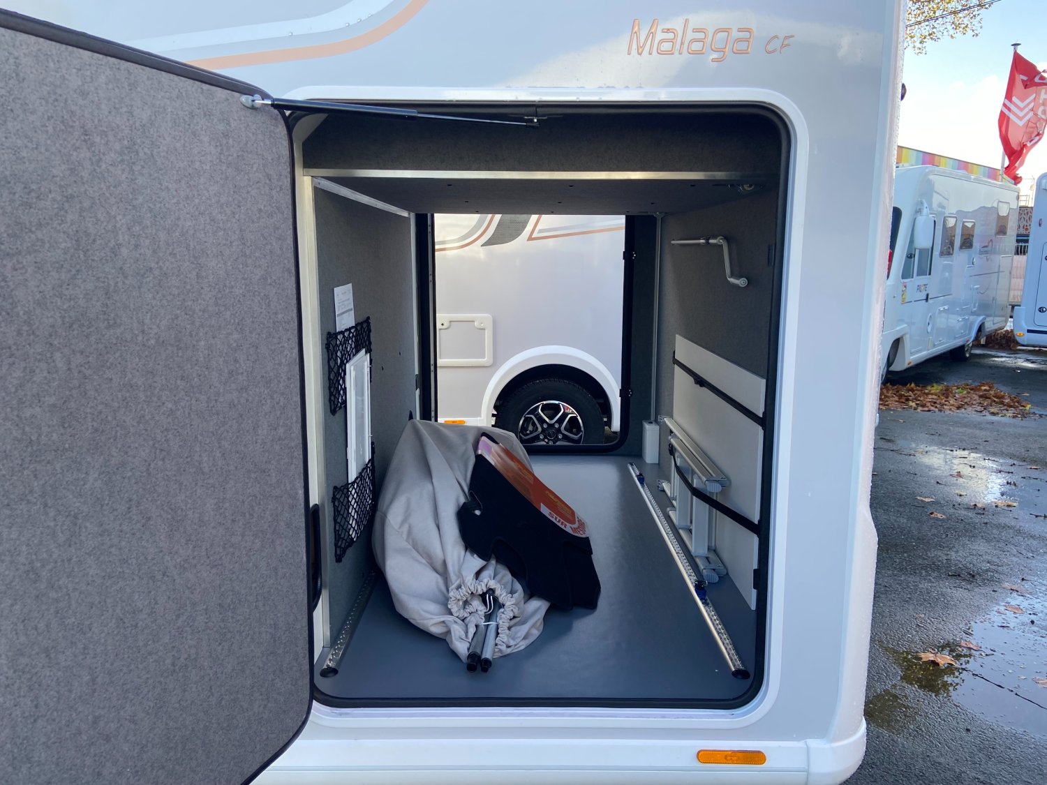 EQUIPEMENTS ET PACKS DE SERIE :, STORES D OCCULTATION CABINE, PACK AUTONOMIE ELECTRIQUE COMPRENANT :, PACK PROGRESS COMPRENANT :, ANTIBROUILLARDS AVANT, SUPPORT TV POUR ECRAN PLAT SALON, CLIMATISATION CABINE AUTOMATIQUE, MARCHEPIED ELECTRIQUE, RESERVOIR DES EAUX USEES ISOLE ET CHAUFFE, TAPIS CABINE POSTE DE CONDUITE, PACK VOLANT CUIR + HABILLAGE GRIS ALUMINIUM SUR AERATEUR, JANTES ALU 16", CHARGEUR DE TELEPHONE SANS FIL, RADIO 10" DAB + CAMERA DE RECUL, BATTERIE LITHIUM 100 Ah, PANNEAU SOLAIRE 200W + MPPT, PARE-CHOCS PEINTS, PACK MALAGA CF 105 ANS COMPRENANT :, RAILS D ARRIMAGE EN SOUTE, STORE EXTERIEUR AVEC ECLAIRAGE LED