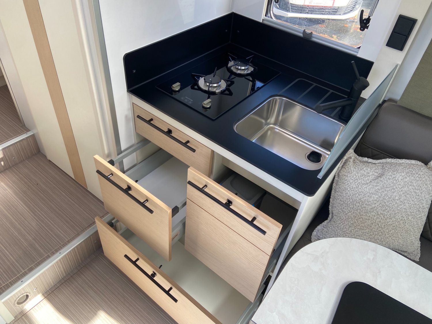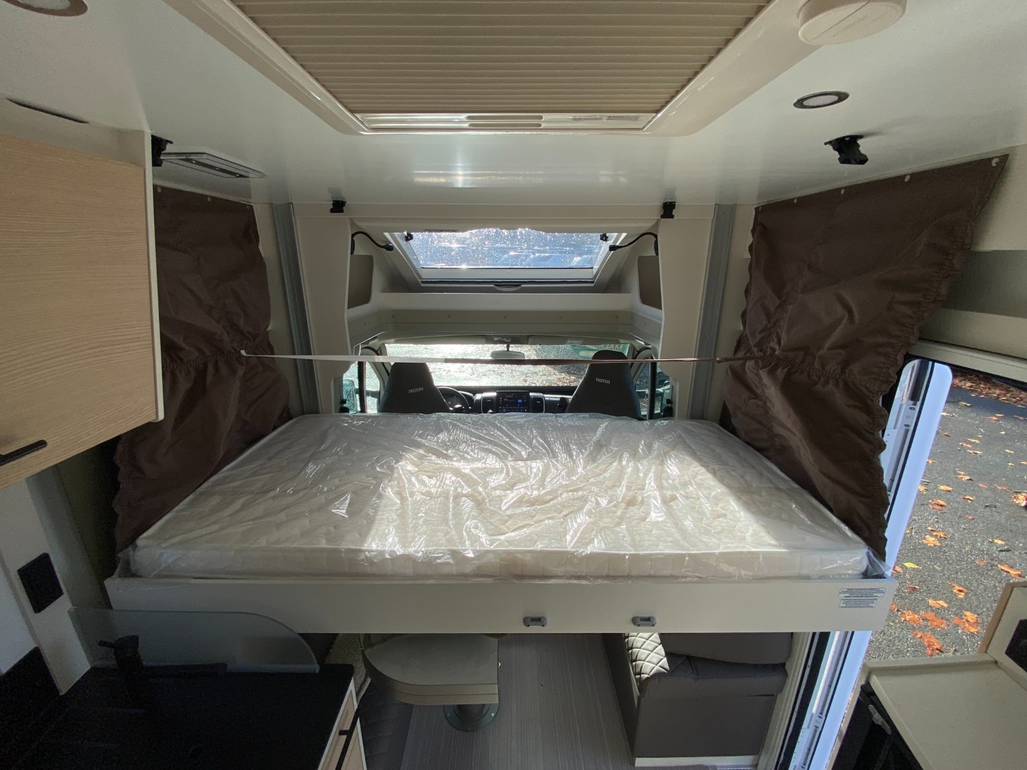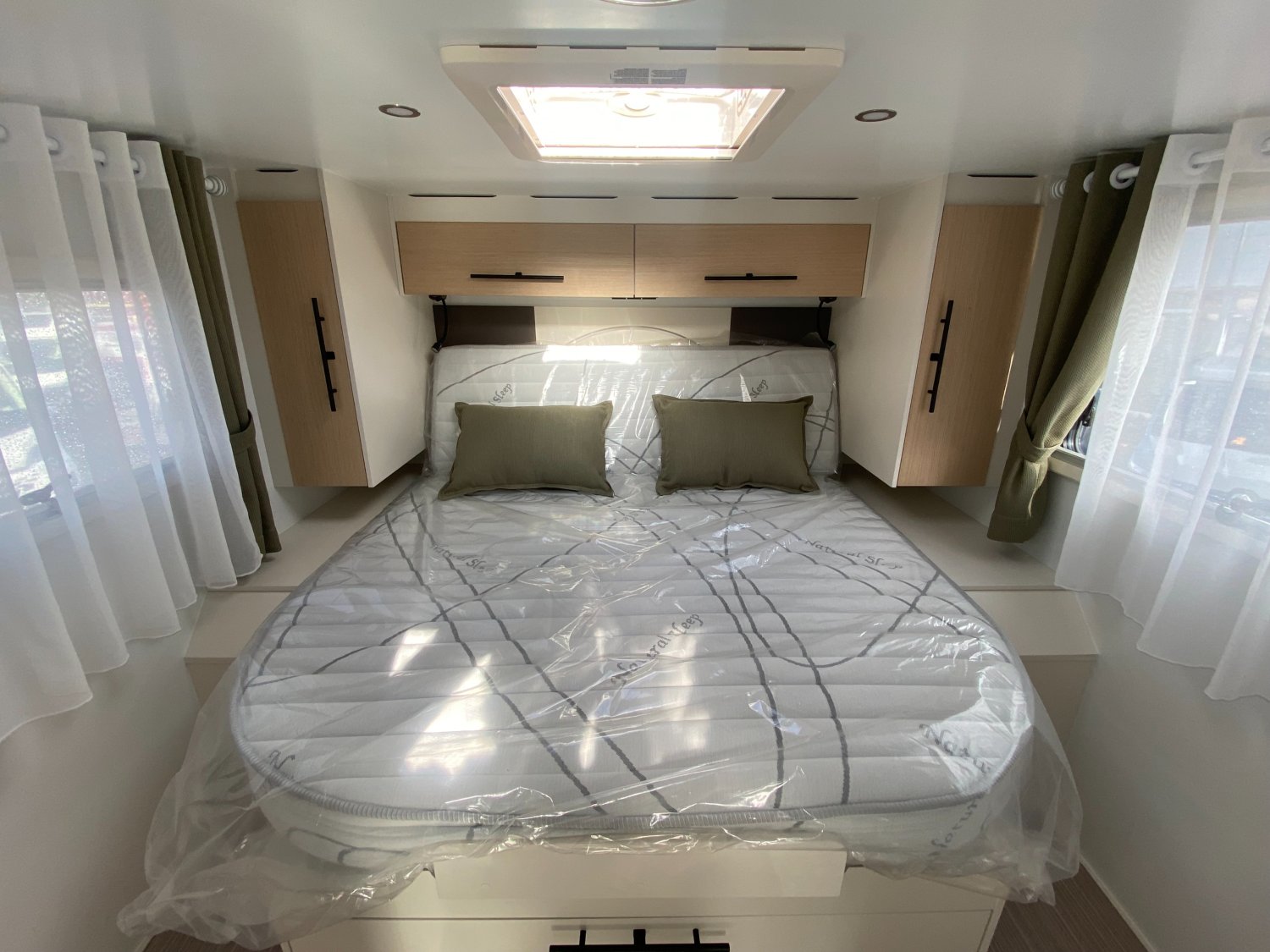 EQUIPEMENTS ET PACKS DE SERIE :, STORES D OCCULTATION CABINE, PACK AUTONOMIE ELECTRIQUE COMPRENANT :, PACK PROGRESS COMPRENANT :, ANTIBROUILLARDS AVANT, SUPPORT TV POUR ECRAN PLAT SALON, CLIMATISATION CABINE AUTOMATIQUE, MARCHEPIED ELECTRIQUE, RESERVOIR DES EAUX USEES ISOLE ET CHAUFFE, TAPIS CABINE POSTE DE CONDUITE, PACK VOLANT CUIR + HABILLAGE GRIS ALUMINIUM SUR AERATEUR, JANTES ALU 16", CHARGEUR DE TELEPHONE SANS FIL, RADIO 10" DAB + CAMERA DE RECUL, BATTERIE LITHIUM 100 Ah, PANNEAU SOLAIRE 200W + MPPT, PARE-CHOCS PEINTS, PACK MALAGA CF 105 ANS COMPRENANT :, RAILS D ARRIMAGE EN SOUTE, STORE EXTERIEUR AVEC ECLAIRAGE LED