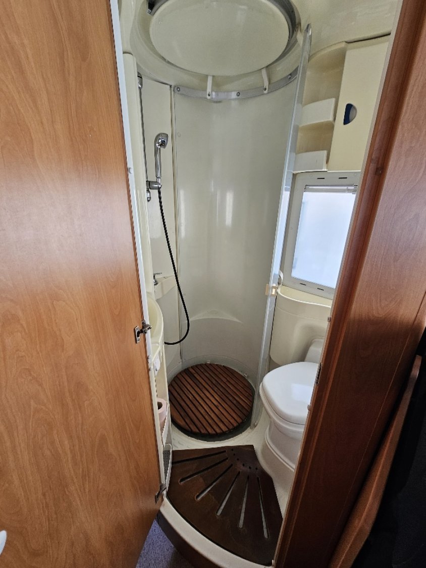 Intégral comprenant des lits superposés à l’arrière, une salle d’eau avec douche séparée, une cuisine avec de nombreux rangement, un salon panoramique avant et un lit de pavillon 2 places.