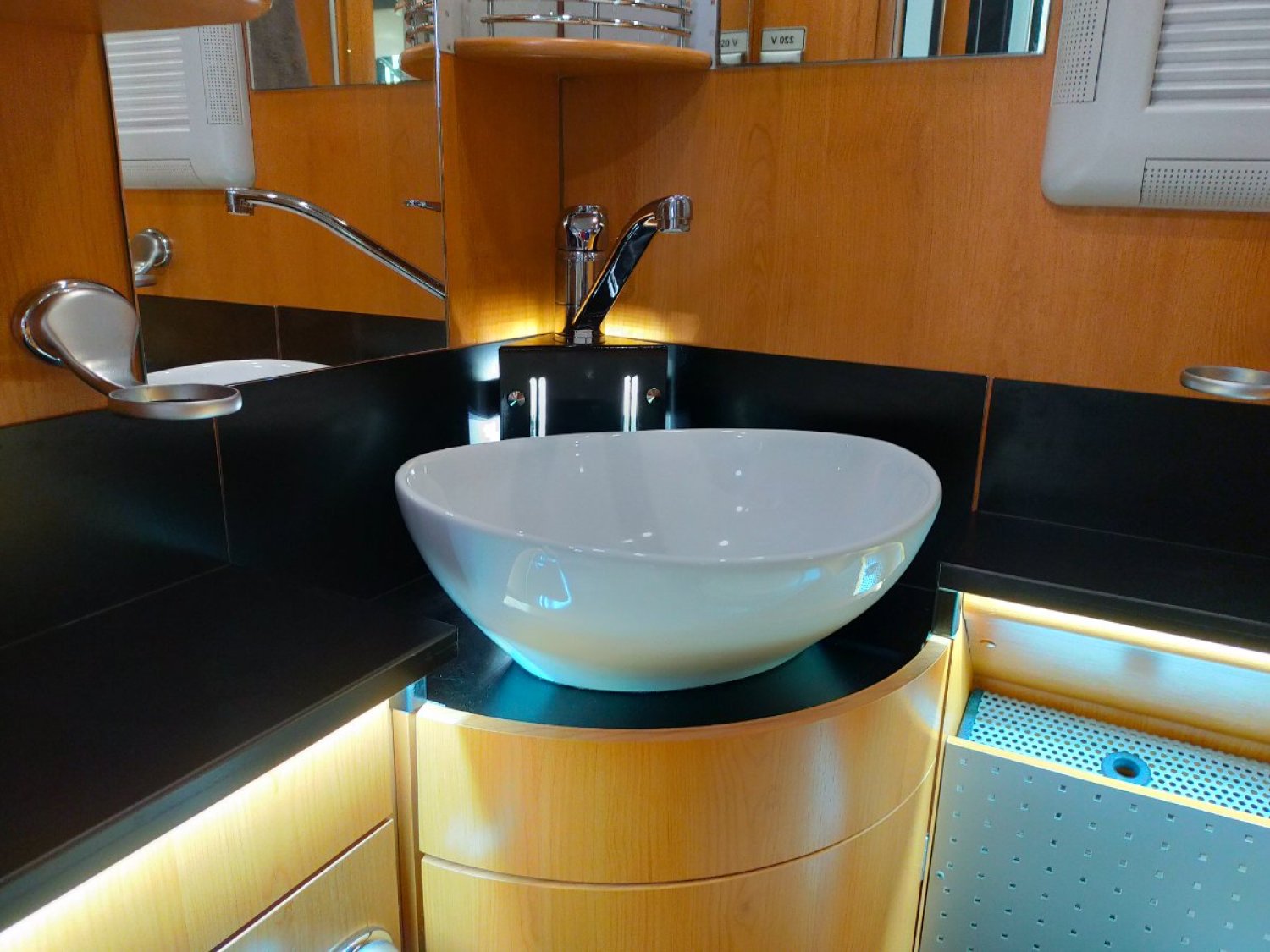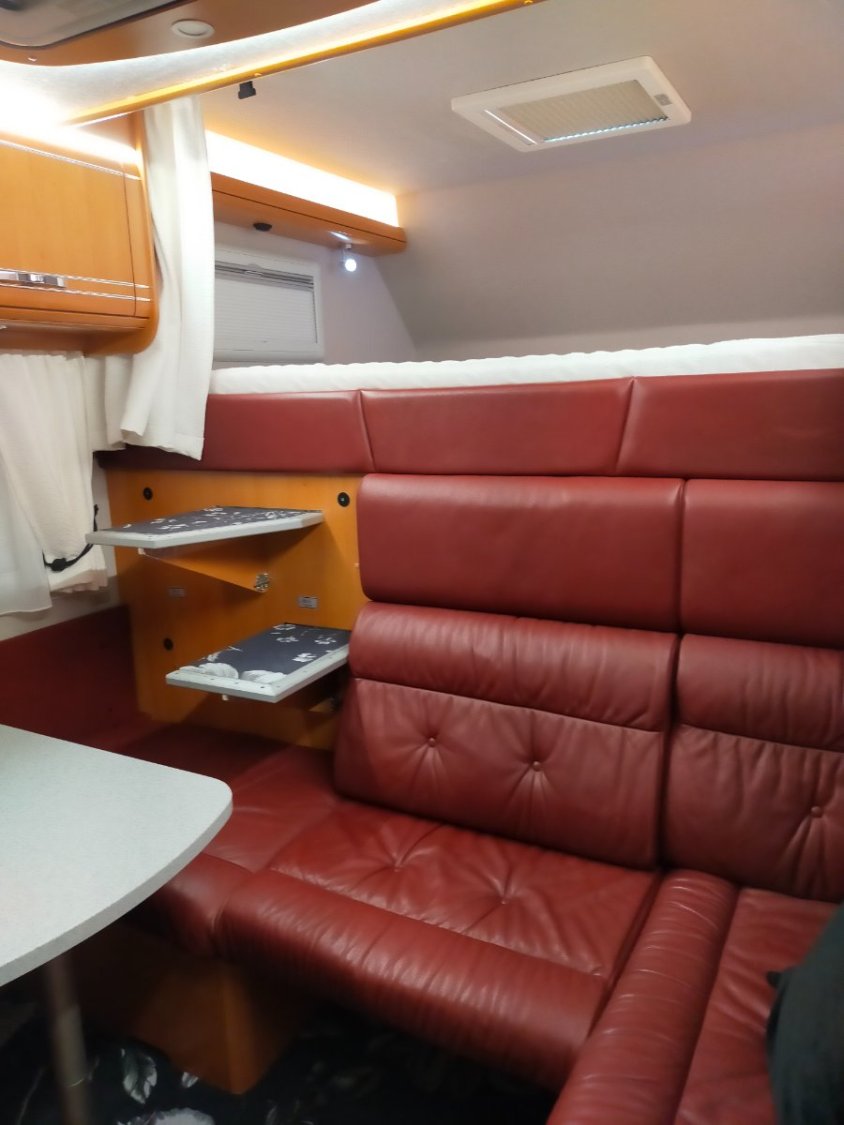 Le lit alcôve se relève pour un accès facile à la cabine de pilotage