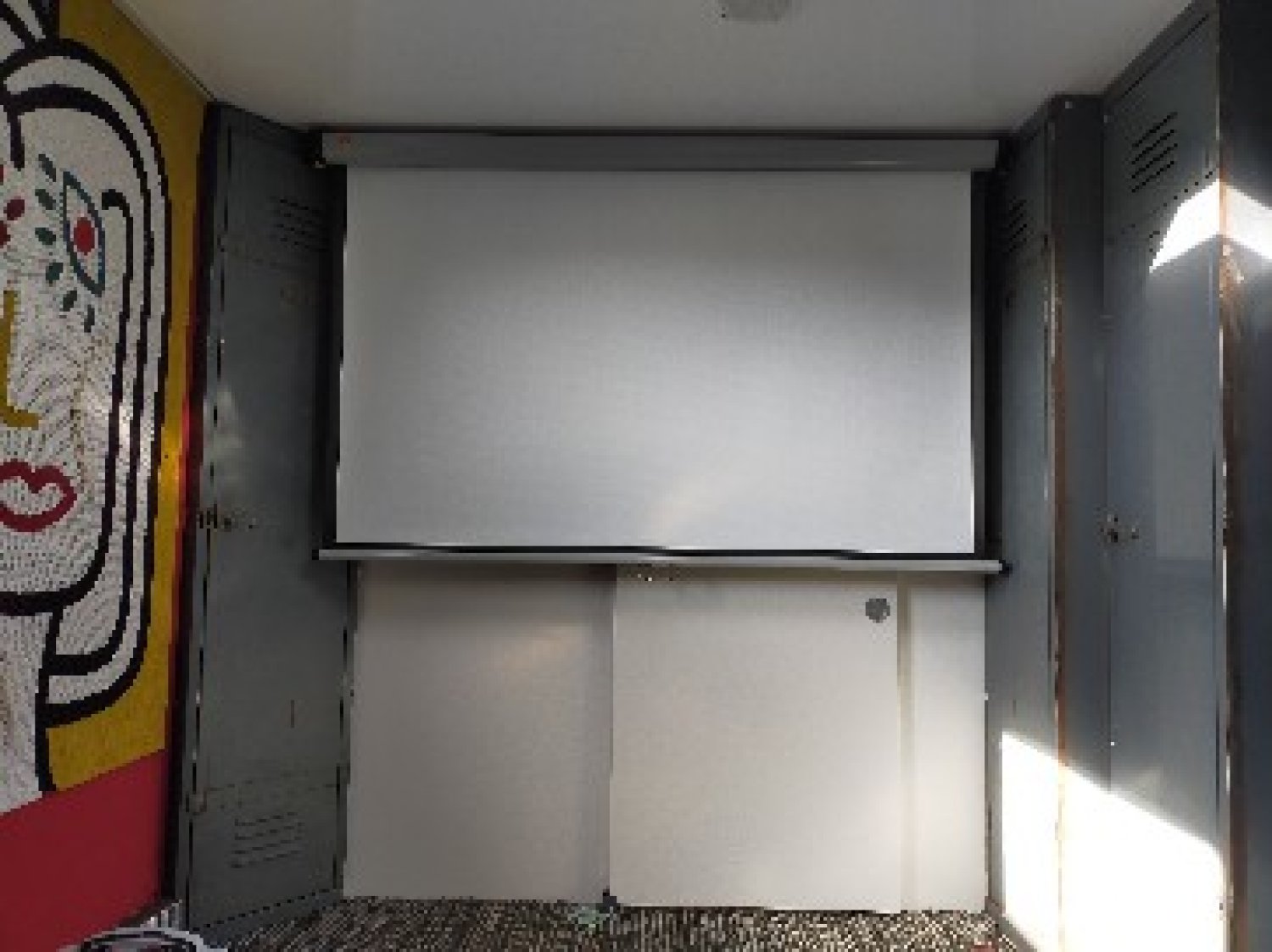 Home cinéma Phillips Neopix-520 avec écran amovible, cheminée d’agrément, bibliothèque placards de rangement