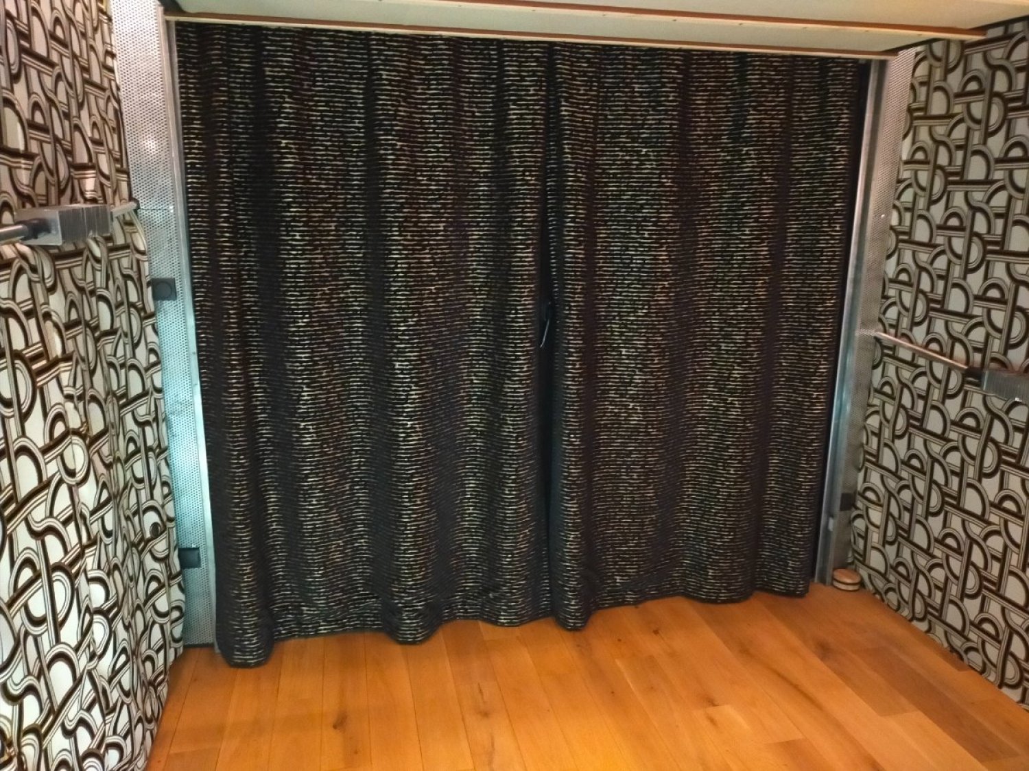 Ouvertures : double vitrage Dometic, stores occultants isolants nid d’abeille et joints d’étanchéité refaits avec rideaux et doubles-rideaux