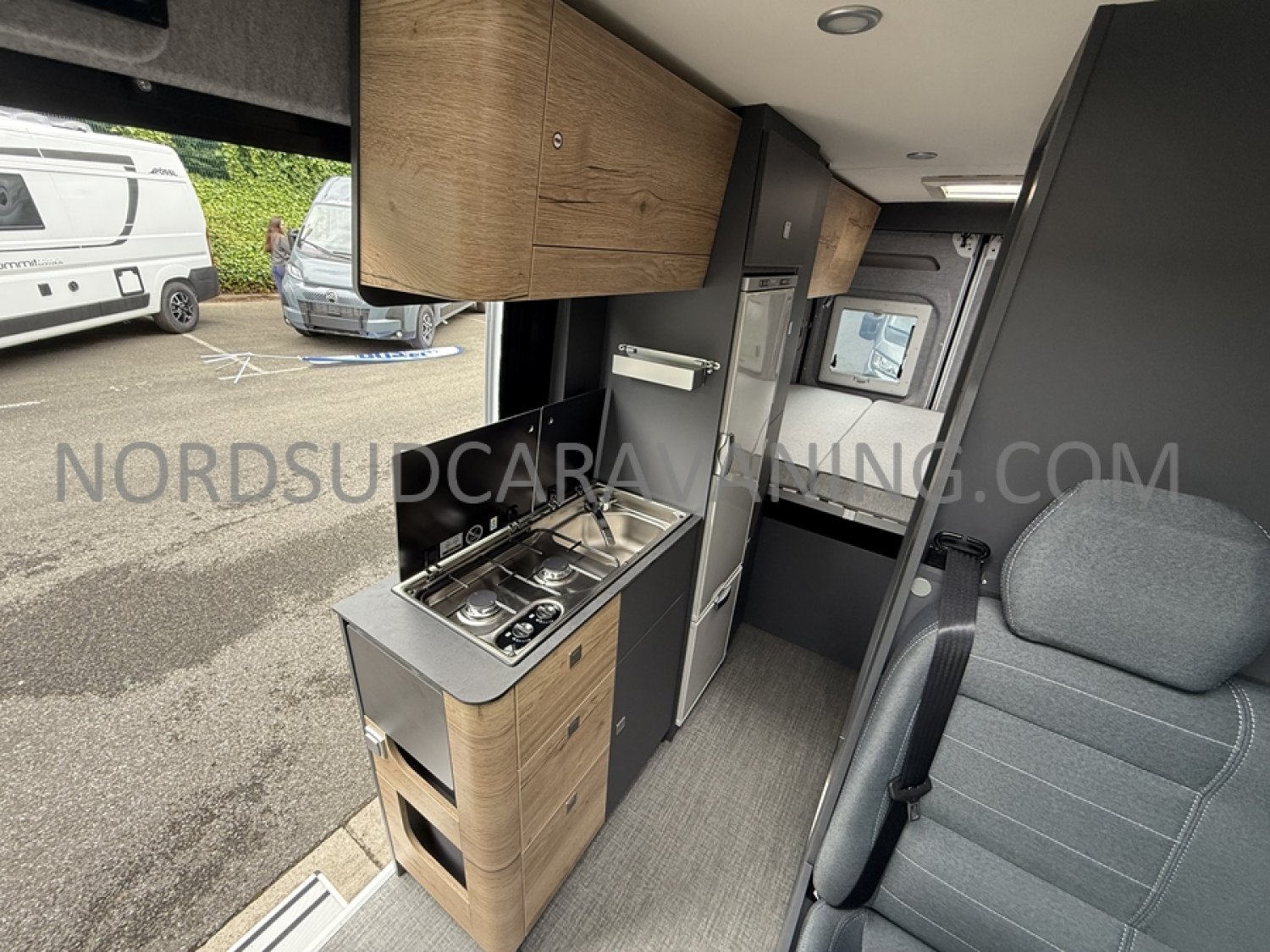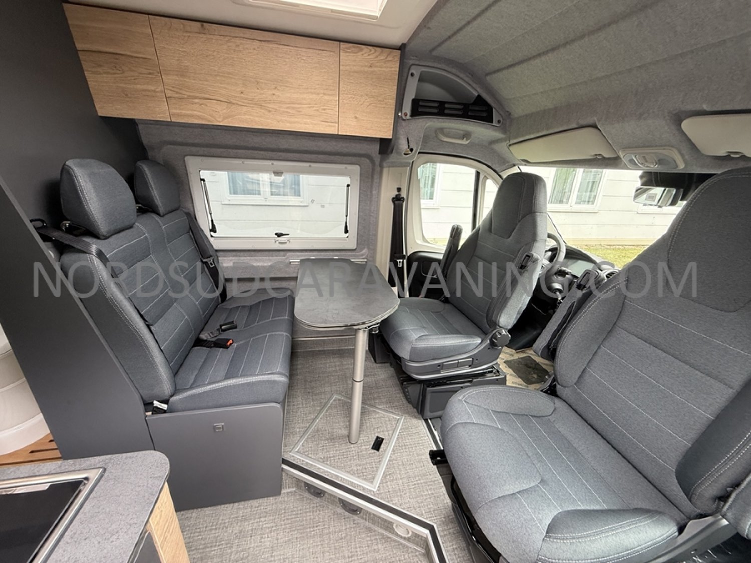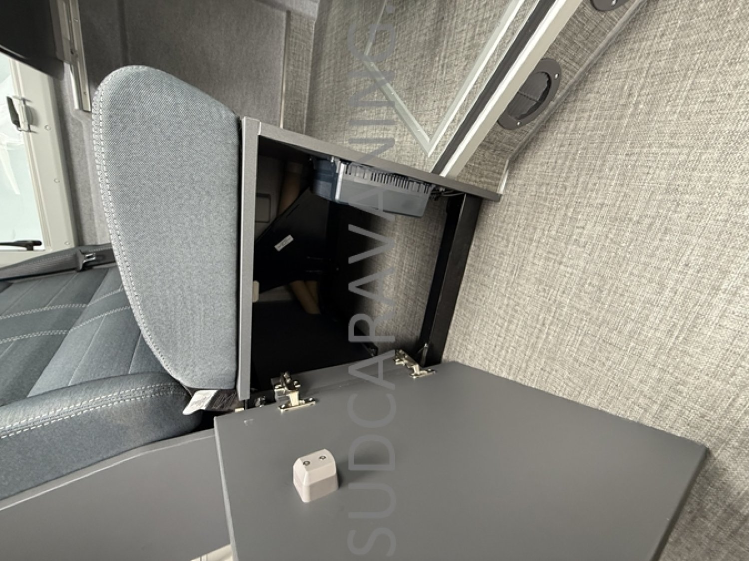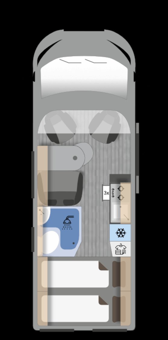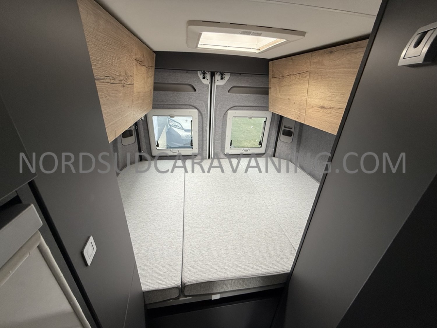 Ce magnifique fourgon sur Citroën Jumper est équipé d’une dinette agréable et lumineuse de 4 personnes pour passer de bons moments en toute convivialité. Sa cuisine latérale fonctionnelle dotée d’un réchaud 2 feux, d’un évier inox, de couvercles en verre, d’un grand réfrigérateur et d’un plan de travail haute résistance avec une rallonge qui raviront les cuisinières et cuisiniers. En face, une salle d’eau avec WC à cassette, lavabo, miroir, douchette et caillebotis. A l’arrière, vous y retrouverez un lit transversal, ainsi l’esprit de vacances s’installe en un instant. Emportez ce dont vous avez besoin avec ses nombreux rangements astucieux, l’espace ne manque pas.