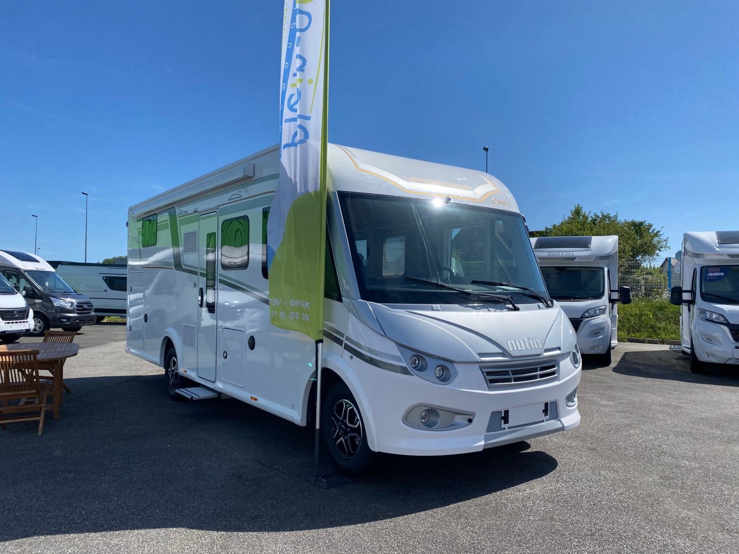 o PTAC : 4400 KG PTRA : 6194 o FIAT DUCATO 2.2 Lo Puissance DIN : 180 cv / puissance fiscale : 07 cho 4 places carte griseo 4 places couchageso Long : 7.49 mo Hauteur : 2.95 mo Intérieur très lumineux au design moderne et éléganto Grande soute traversanteo Eaux usées hors gel• Implantation :o Grand Lit central (150 x 200 cm)o Lit pavillono Nombreux rangements tiroirs• Nombreux Équipementso Boite automatique 9 VITESSES o Chauffage central ALDEo Climatisation de toit TRUMAo Combine autoradio / caméra de recul / GPS Alpine o Douchette extérieure o Mobilier scandinaveo Panneau solaire o Store extérieur avec éclairage LEDo Vision sécurité 360 ° avec 4 caméras