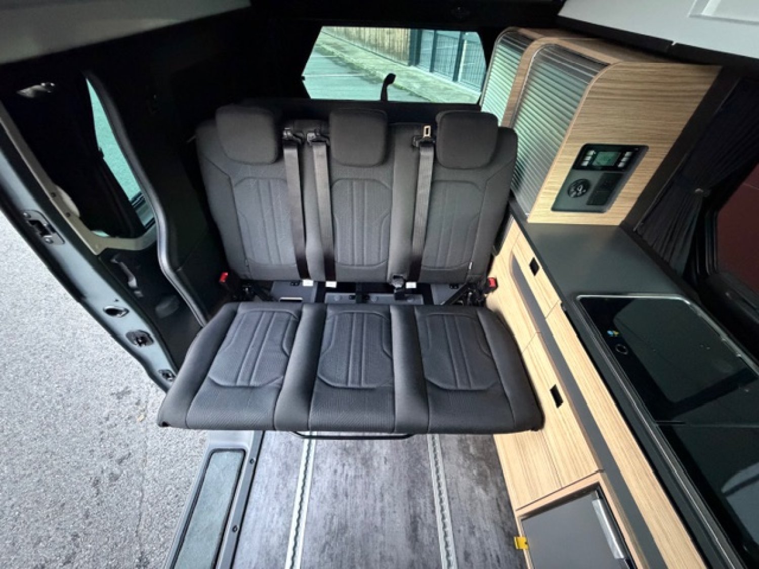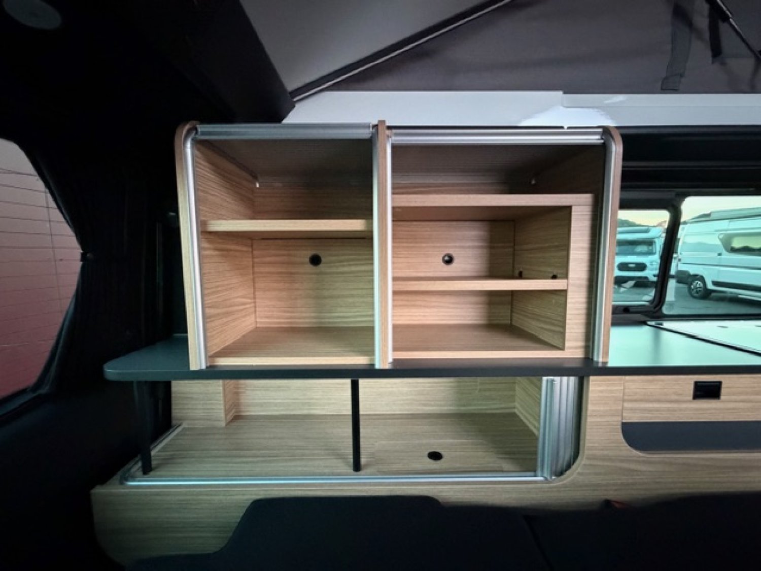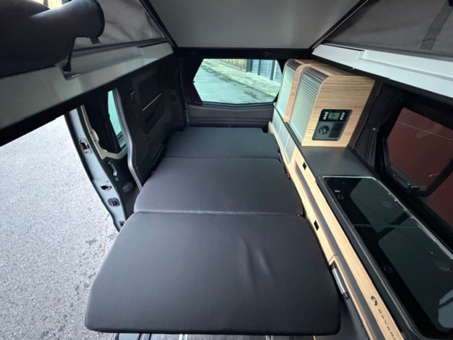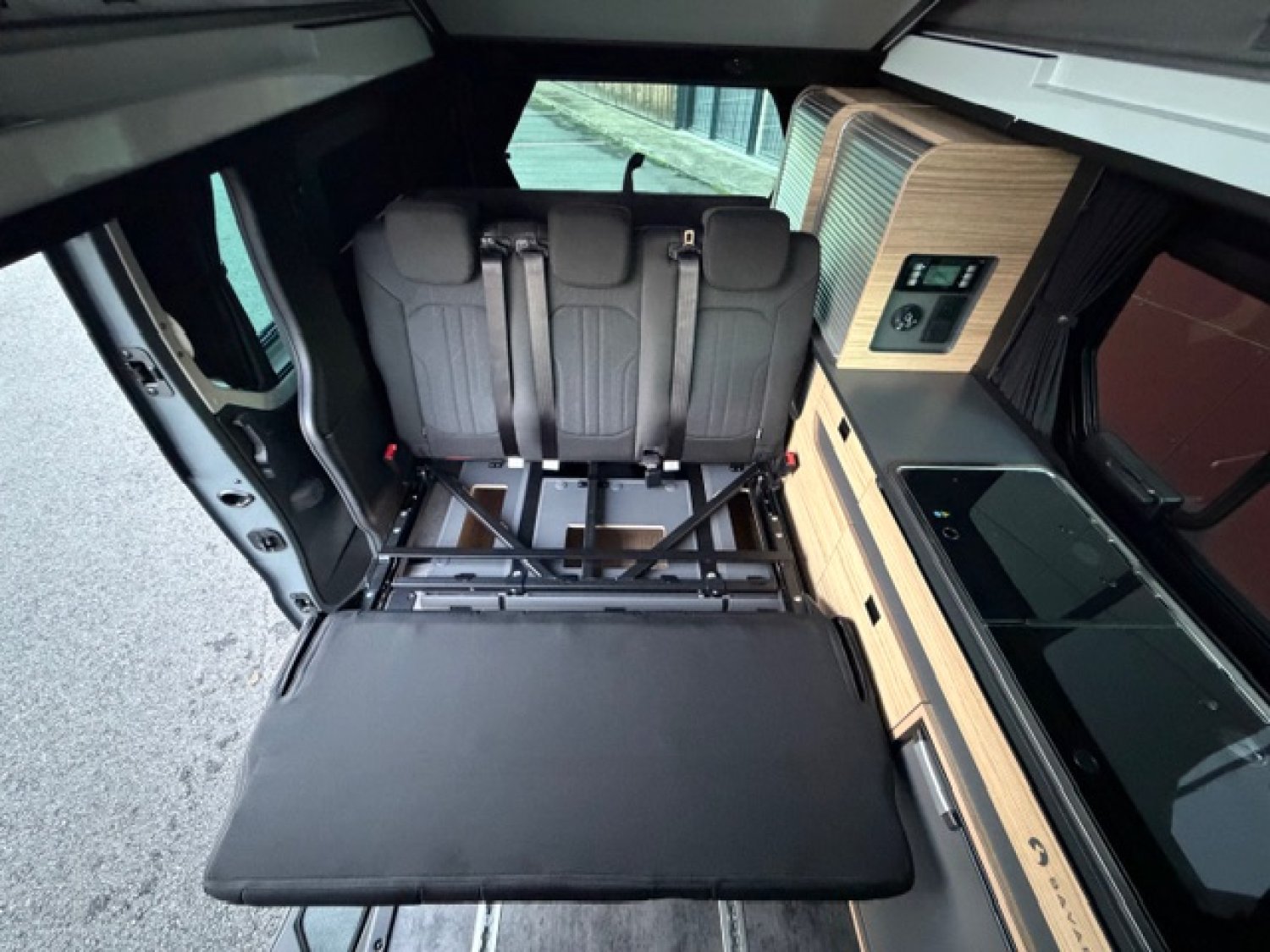 Ce van aménagé Bavaria est un véhicule polyvalent, adapté à une utilisation quotidienne. Il offre quatre places de couchage grâce à sa banquette arrière et son toit relevable. De plus, il dispose de nombreux espaces de rangement pratiques. Grâce à sa banquette coulissante, il est possible d'agrandir l'espace du salon ou du coffre selon les besoins.