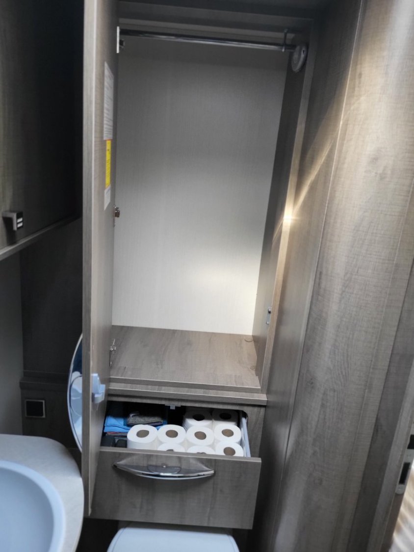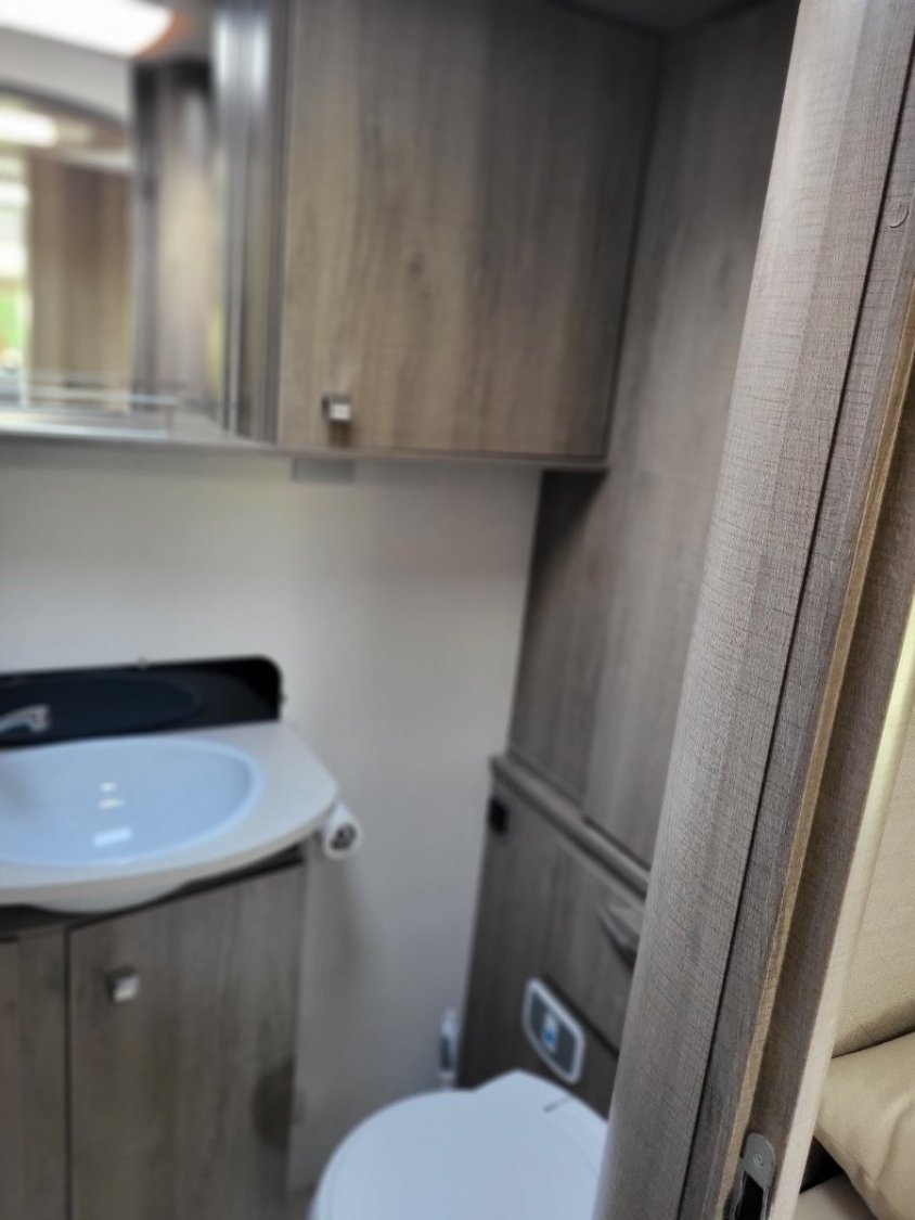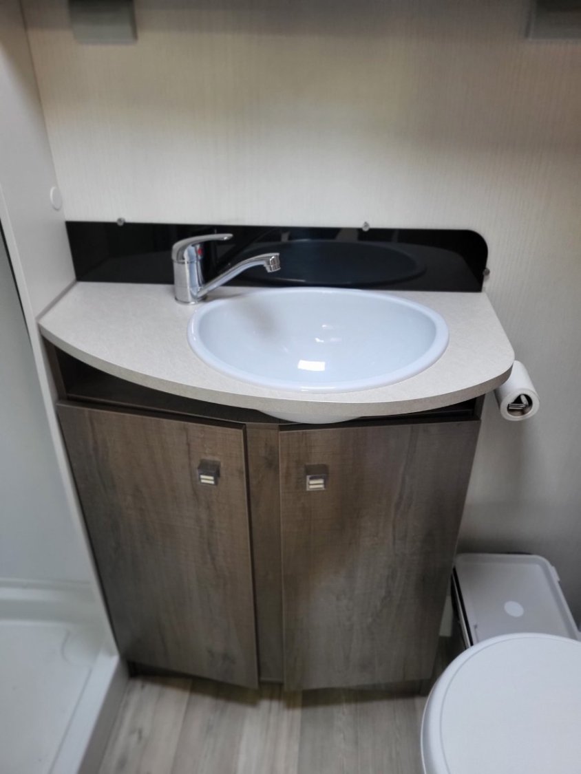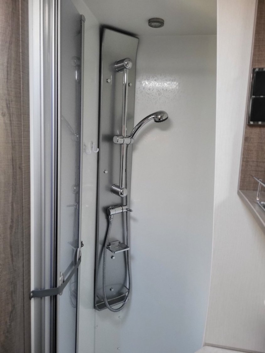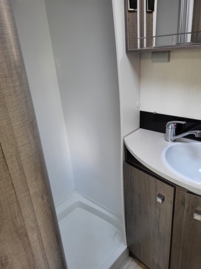 Salle d'eau arrière avec douche séparée (grande surface de déplacement à l'intérieur du véhicule)