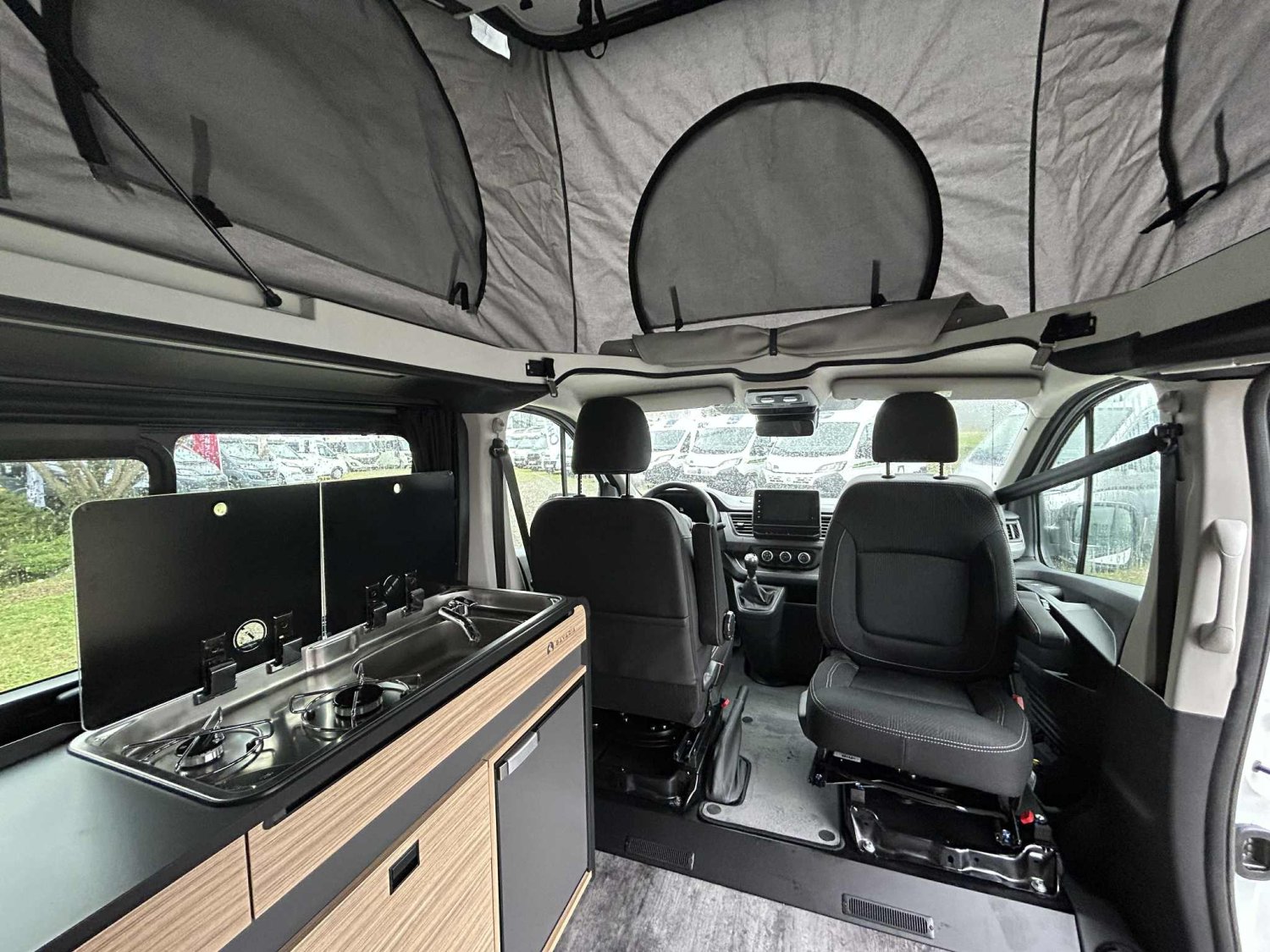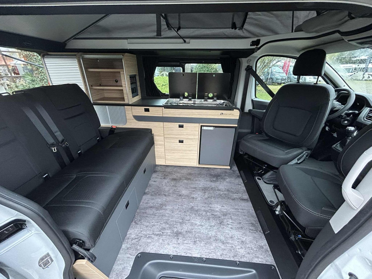 Profitez de ses 4 places de couchage, grâce à la banquette arrière et au toit relevable, pour des nuits confortables où que vous alliez. De plus, vous ne manquerez jamais d'espace de rangement grâce aux nombreux compartiments disponibles. Avec une banquette fixe, vous bénéficiez d'un vaste espace salon, idéal pour se détendre après une journée d'aventures, ainsi qu'un grand coffre pour ranger tous vos équipement