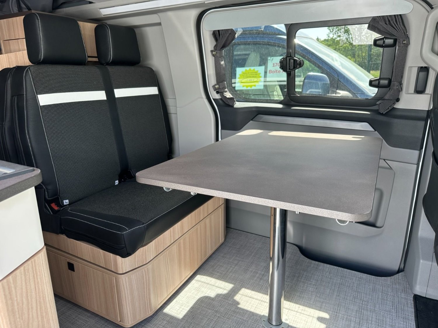 Pack Custom Belize (pré disposition panneau solaire, banquette BZ électrique, chauffe eau Truma, batterie AGM 92 Ah, préparation faisceau électrique attelage, table de camping, tapis de sol cabine, variateur de luminosité, 2 eme porte latérale, rideaux opacifiants)