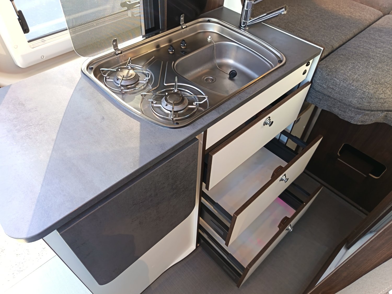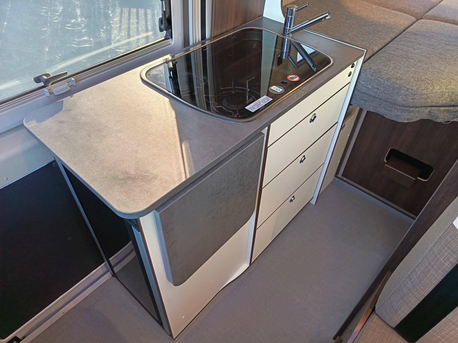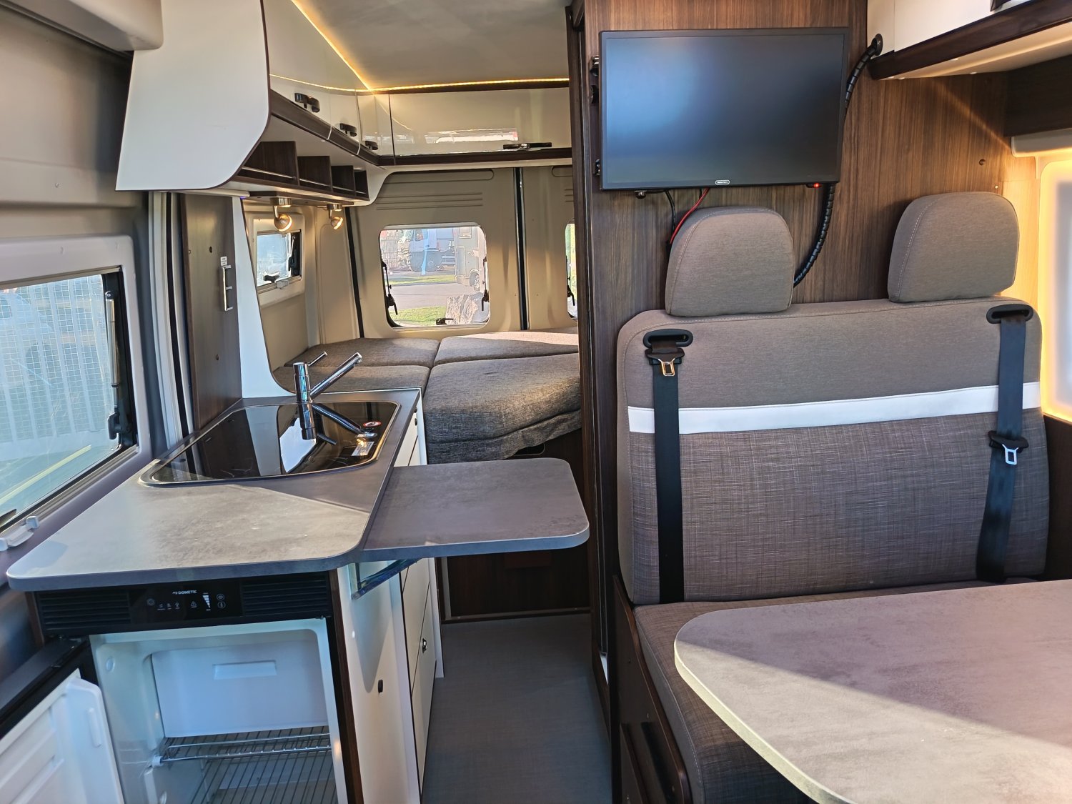 Fourgon compact en 5m41 avec énormément d'équipement. Petit kilométrage, première main avec un entretien suivi et régulier. Grand lit transversal, cuisine latérale et salle de bain Vario