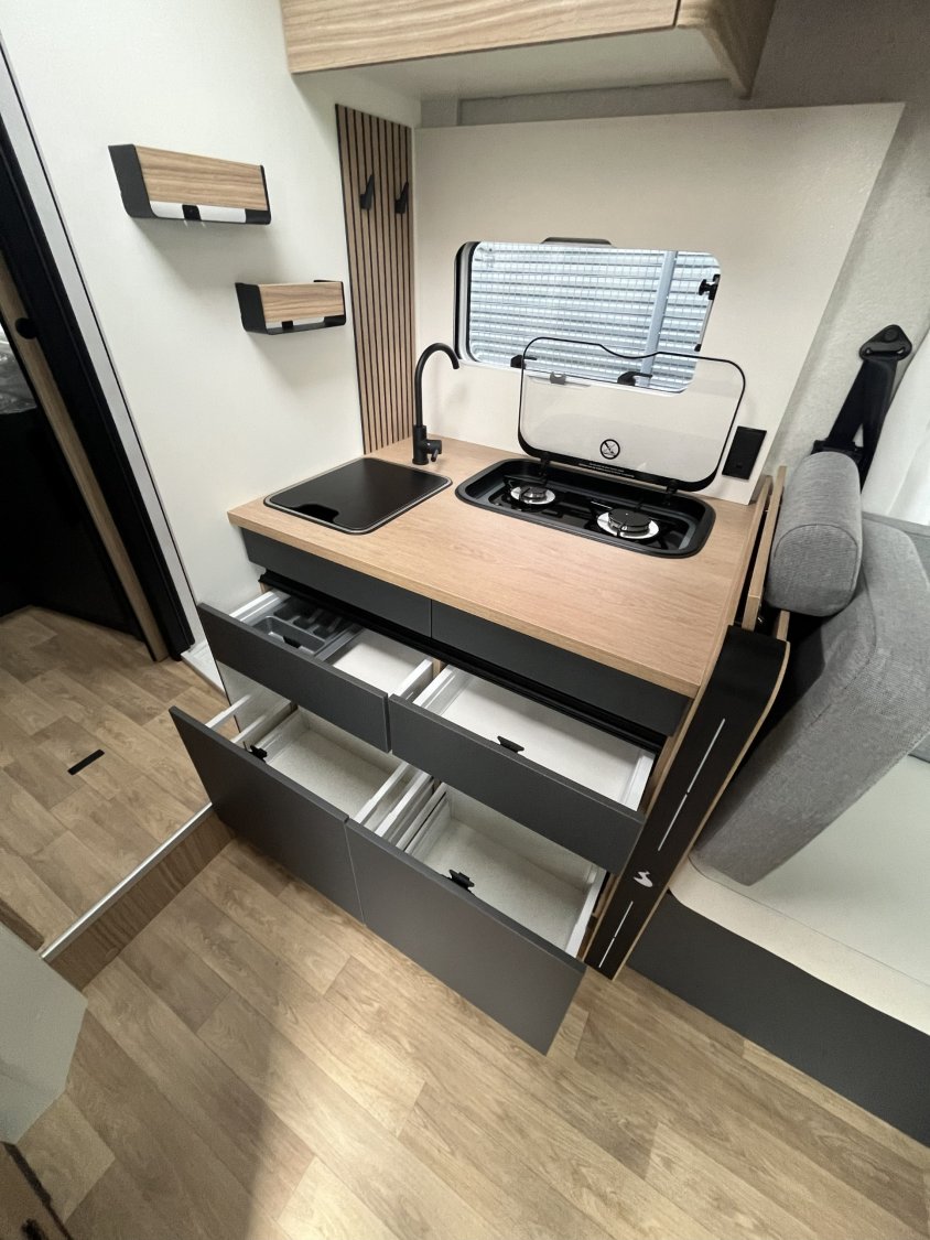 RESERVOIR CARBURANT 90L, TIROIR BAS DE CAISSE, TRUMA COMBI DIESEL 6E, DEUX PANNEAUX SOLAIRE 100W, REFRIGERATEUR A COMPRESSION, BATTERIE LITHIUM 210 AH, AUTORADIO 7" DAB, CAMERA DE RECUL, DOUCHE EXTERIEURE, LIT ARRIERE HAUT, STORE BANNE