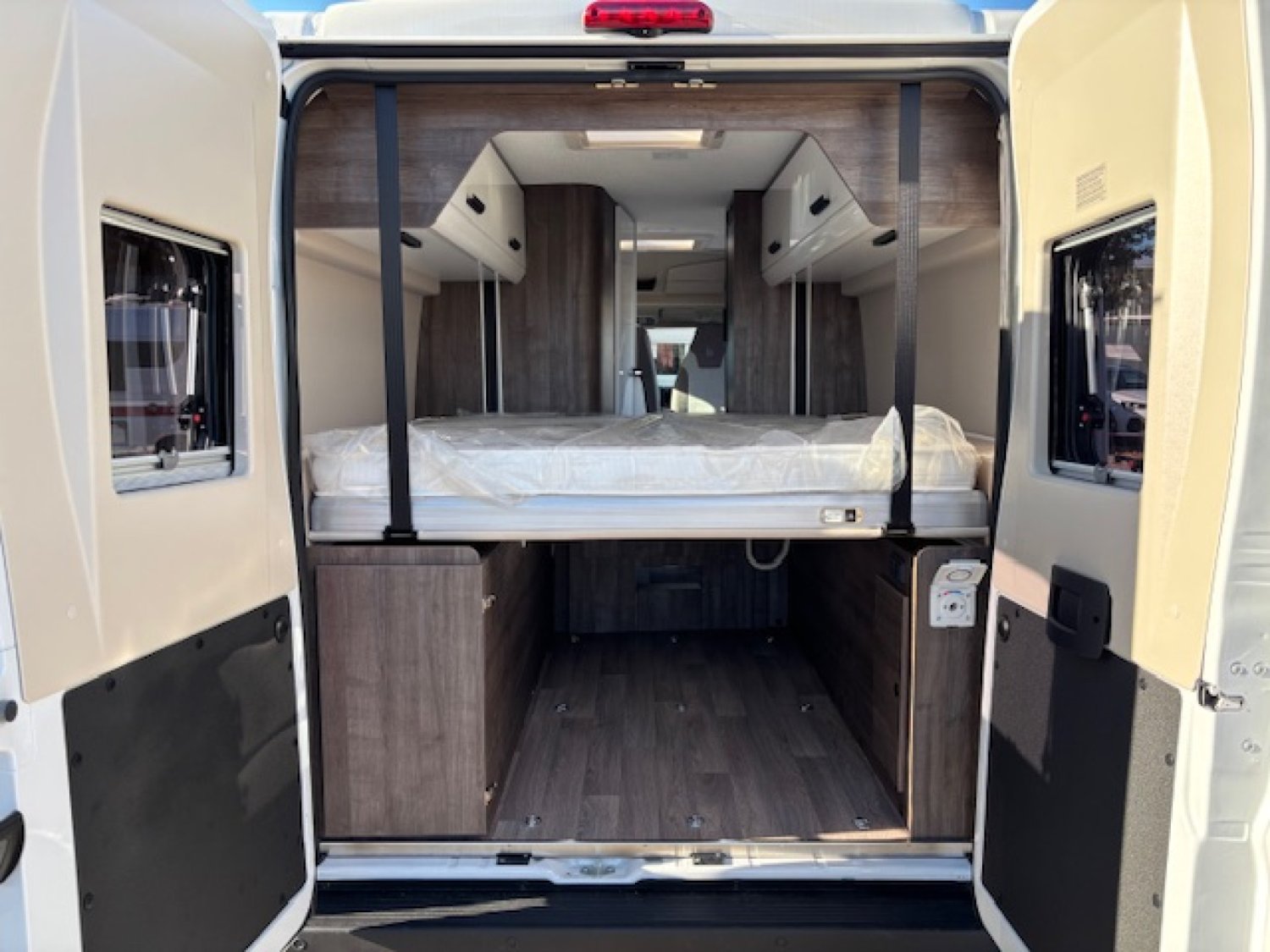 Grâce à son lit de pavillon électrique ajustable, libérez en un instant un espace de rangement XXL pour vélos, moto ou matériel d aventure, sans renoncer au confort.