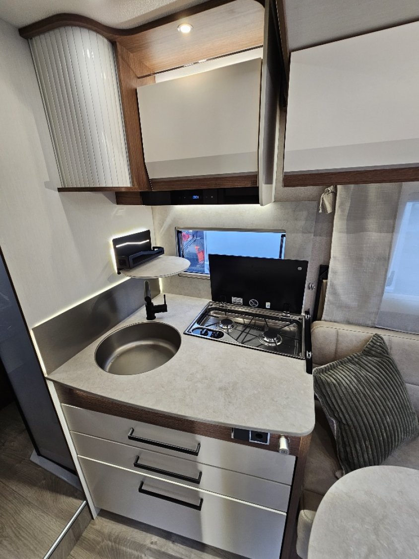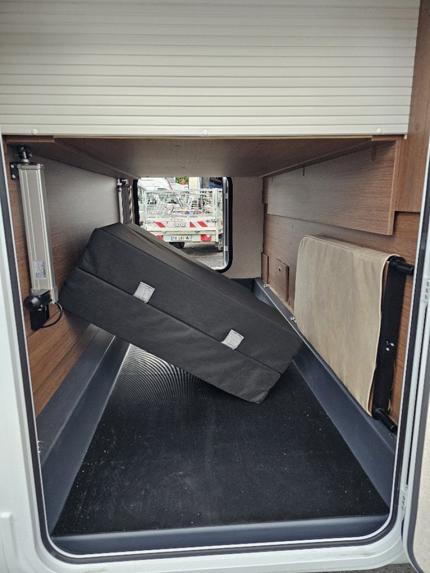 Literie haut de gamme, Chauffage Truma 4000 ED ( Diesel / électrique ), Lampe avec variateur atmosphère douce et apaisante, Repose pieds Relax sur siège passager, Grand Réfrigérateur 145 L compression, Douche et toilettes séparés, BATTERIE LITHIUM 100AH, CONVERSTISSEUR DC/DC 40AH
