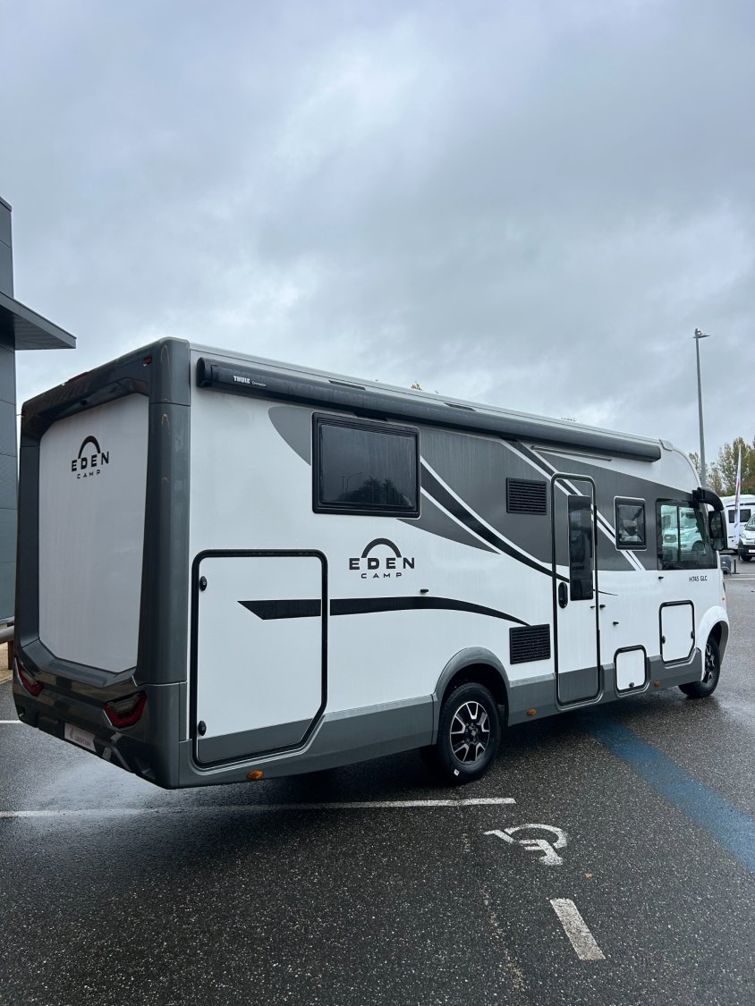 Le Eden Camp - H 745 GLC 2026 allie espace, élégance et innovation. Son aménagement raffiné et ses technologies de pointe garantissent confort et autonomie sur toutes les routes. Le compagnon idéal pour voyager avec style et sérénité.