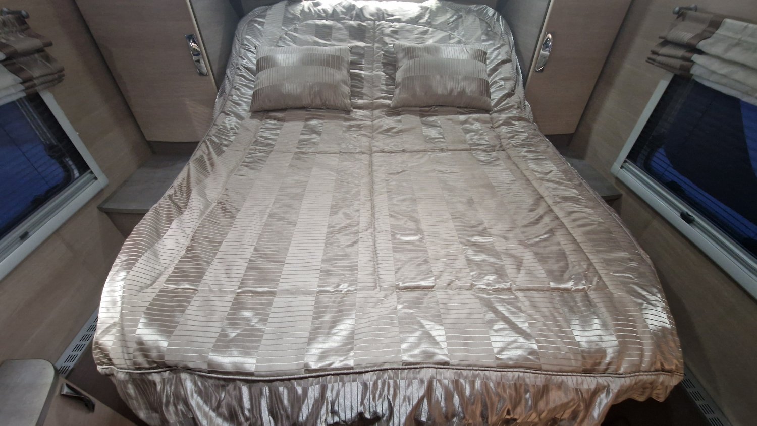 Montez à bord et laissez-vous transporter en couple ou en famille dans un environnement harmonieux et haut de gamme où tout est pensé comme un véritable appartement : confort de couchage avec lit central à sommier rétractable et lit de pavillon escamotable, cuisine ergonomique toute équipée avec de nombreux rangements, vaste salon en cuir à vue panoramique convivial et lumineux, et grand espace balnéo avec douche et cabinet de toilettes indépendants.