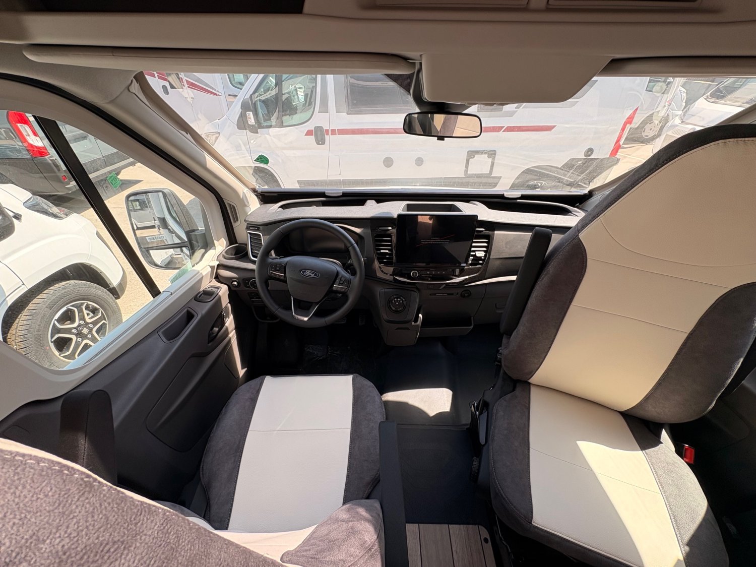 Profilé avec lit de pavillon, grande dinette face à face, salle de bain arrière et garde-robe arrière. Dimensions compactes : seulement 2,15 m de large, avec une longueur et une hauteur réduites. Lit de pavillon 2 places 190 cm de série.