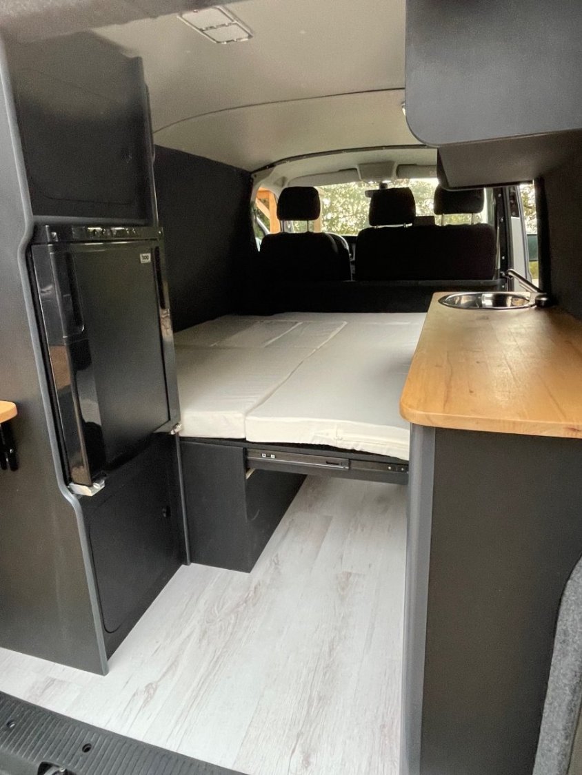 Aménagement complet VAN fait par un PRO avec salon transformable en lit 2 personnes, frigo, evier, batterie auxiliaire, panneau solaire, etc, etc....