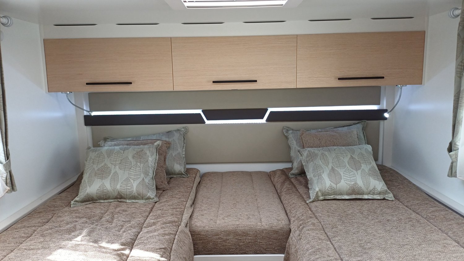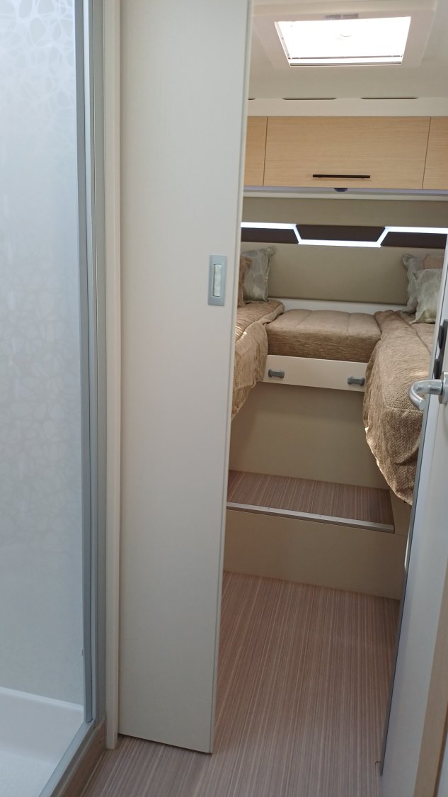 Boite automatique, Renforts des suspensions pneumatique, Antenne satellite auto + TV, Panneau solaire 150 W, Batterie lithium + convertisseur, Porte de séparation chambre, 2 rangements dans le double plancher, Store