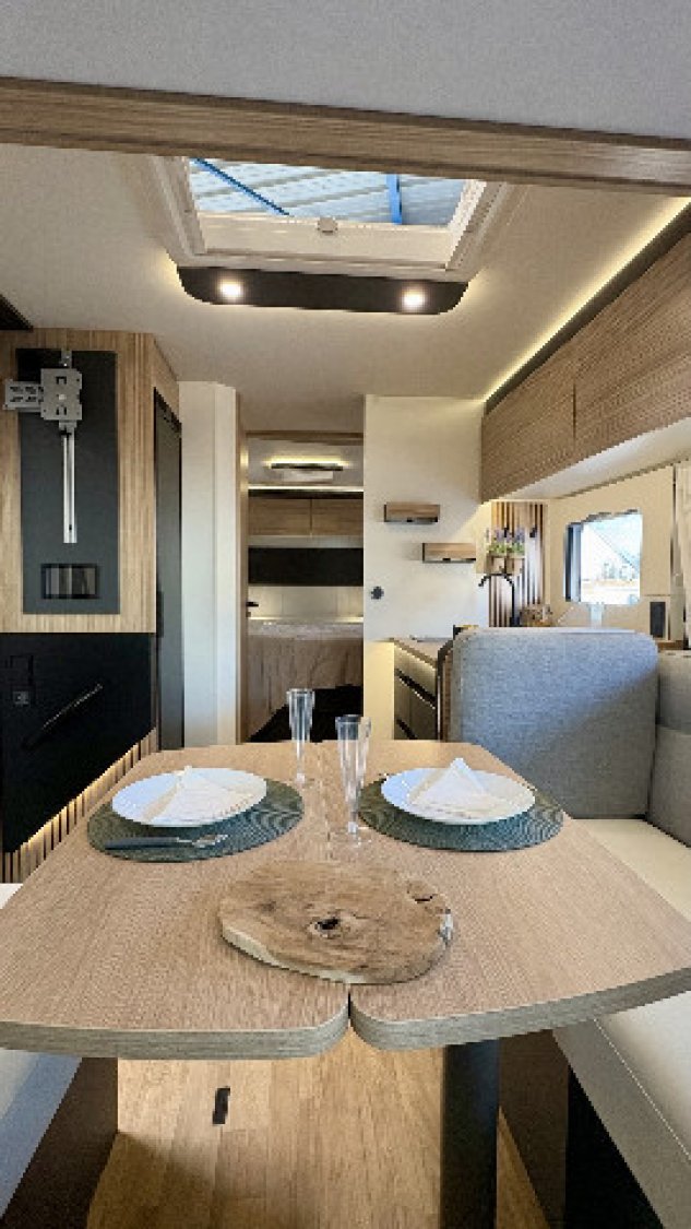 AUTORADIO 9'' + GPS + CAMERA DE RECUL, BATTERIE LITHIUM + 2 PANNEAUX SOLAIRES, CAILLEBOTIS DANS LA DOUCHE, CONVERTISSEUR 2000W, DOUCHETTE EXTERIEURE, ECLAIRAGE + PRISE 230V + RAIL EN SOUTE, ECLAIRAGE PENDERIE, ECLAIRAGE SOUTE, POUBELLE INTEGREE, PRISE 230V EN SOUTE, TIROIR BAS DE CAISSE, TRUMA COMBI DIESEL
