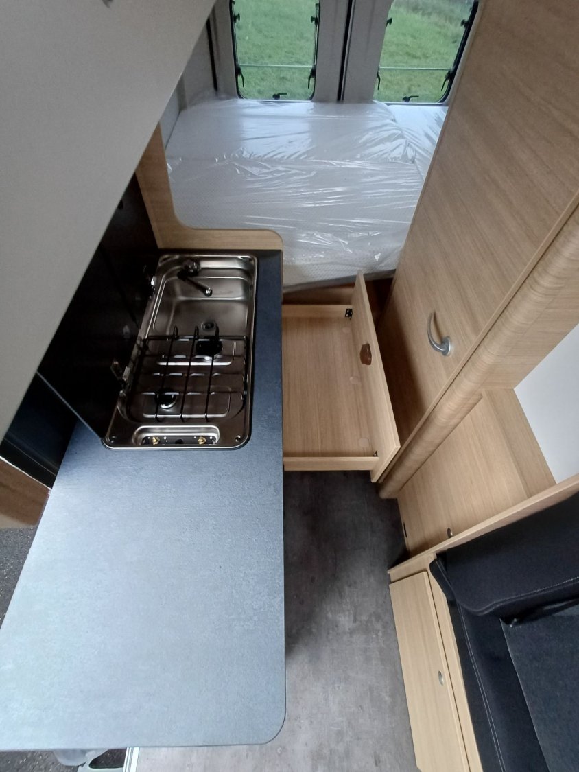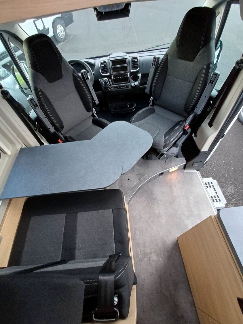 - Pack Confort: Marchepied électrique- Moustiquaire porte latérale- Lanterneau Midi-Heki au dessus de la dînette- Rideau occultant cabine- Equipement de douche (rideau + pommeau)