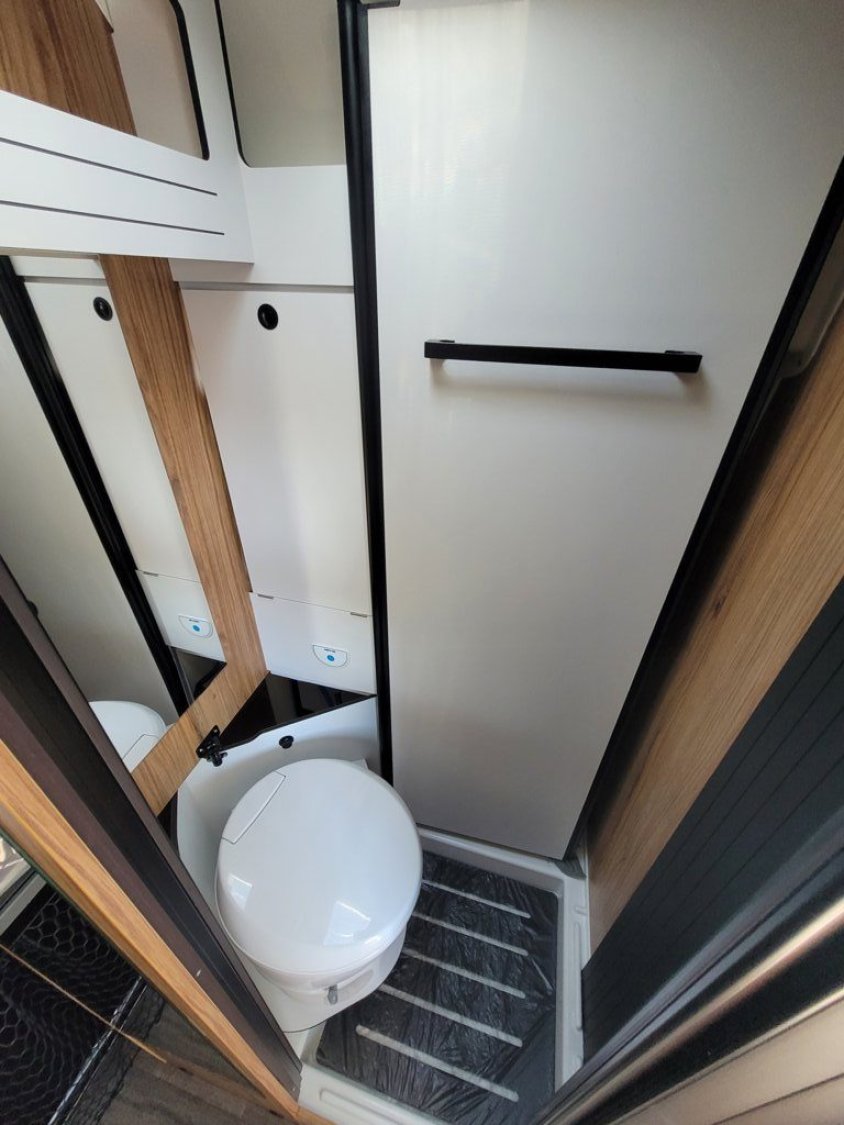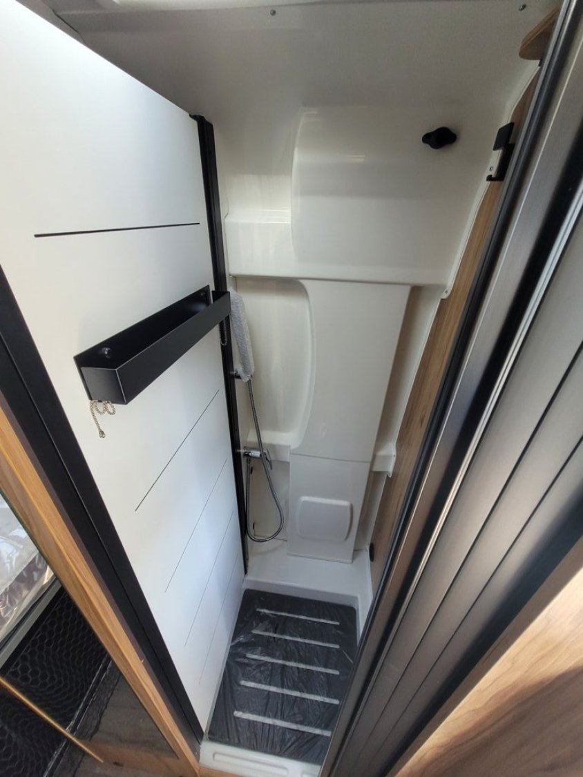 Douche modulable, Douche à vario, Lit arrière transversal, Lit dînette avant, Salon avant sièges pivotants, WC Cassette.