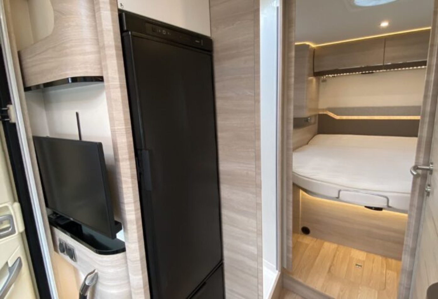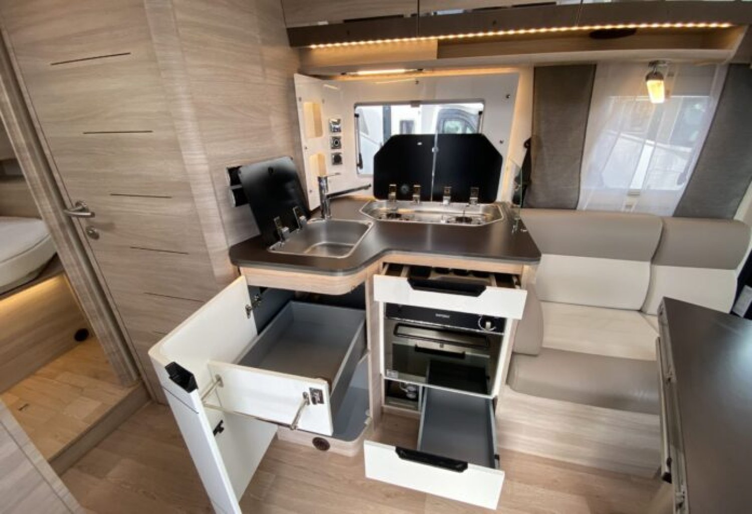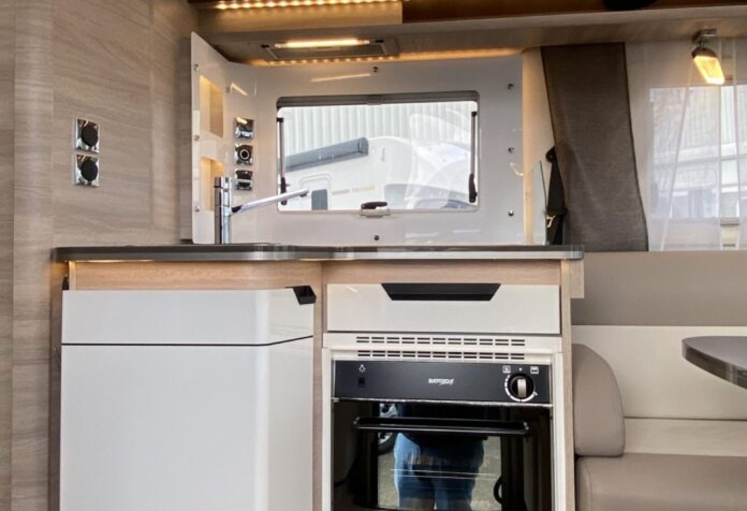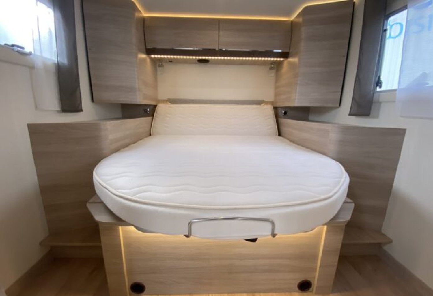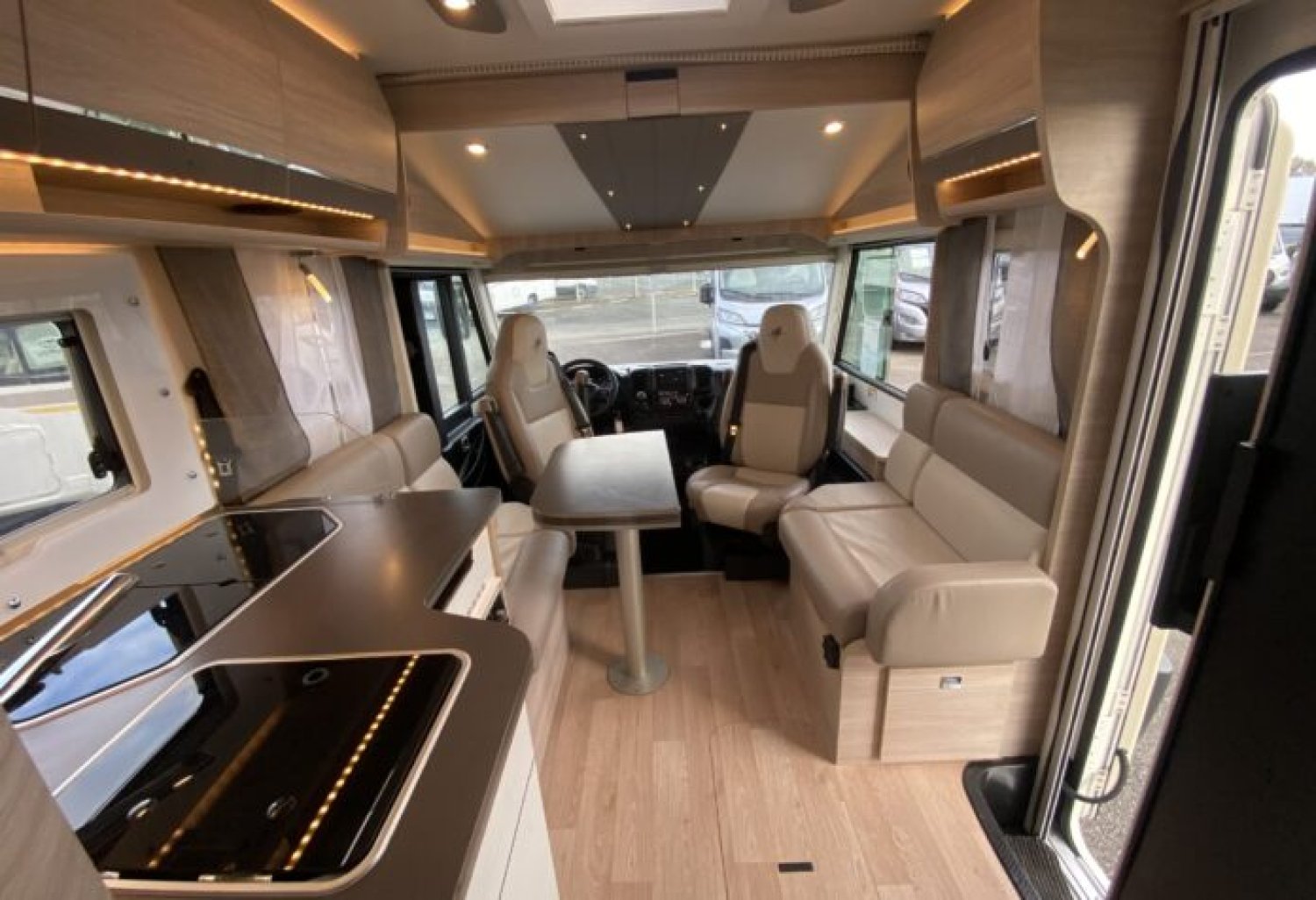 Le Rapido 886F 2023 est un intégral de 7,20 m avec lit central, salon face-à-face et douche séparée.