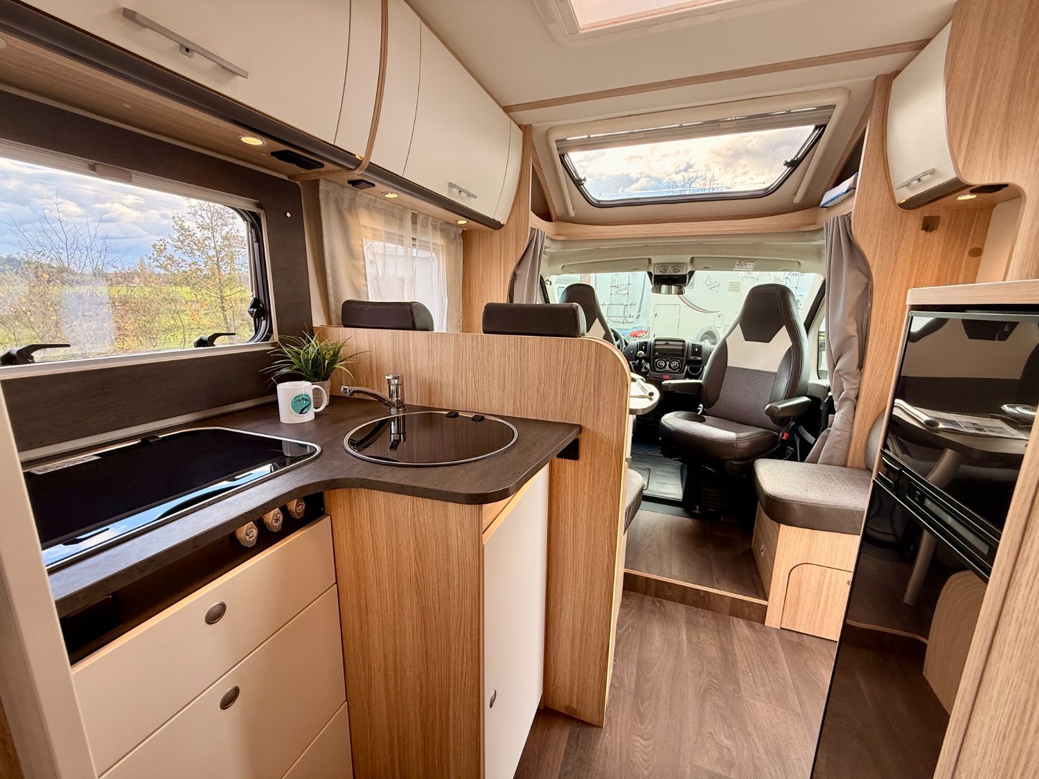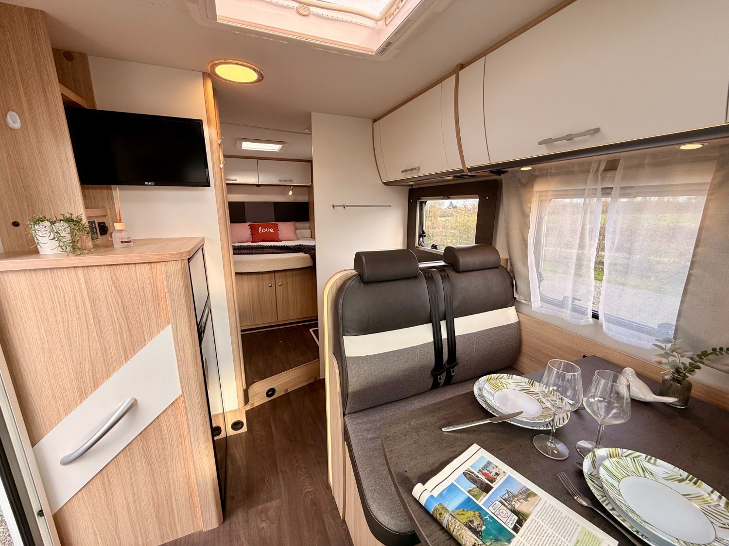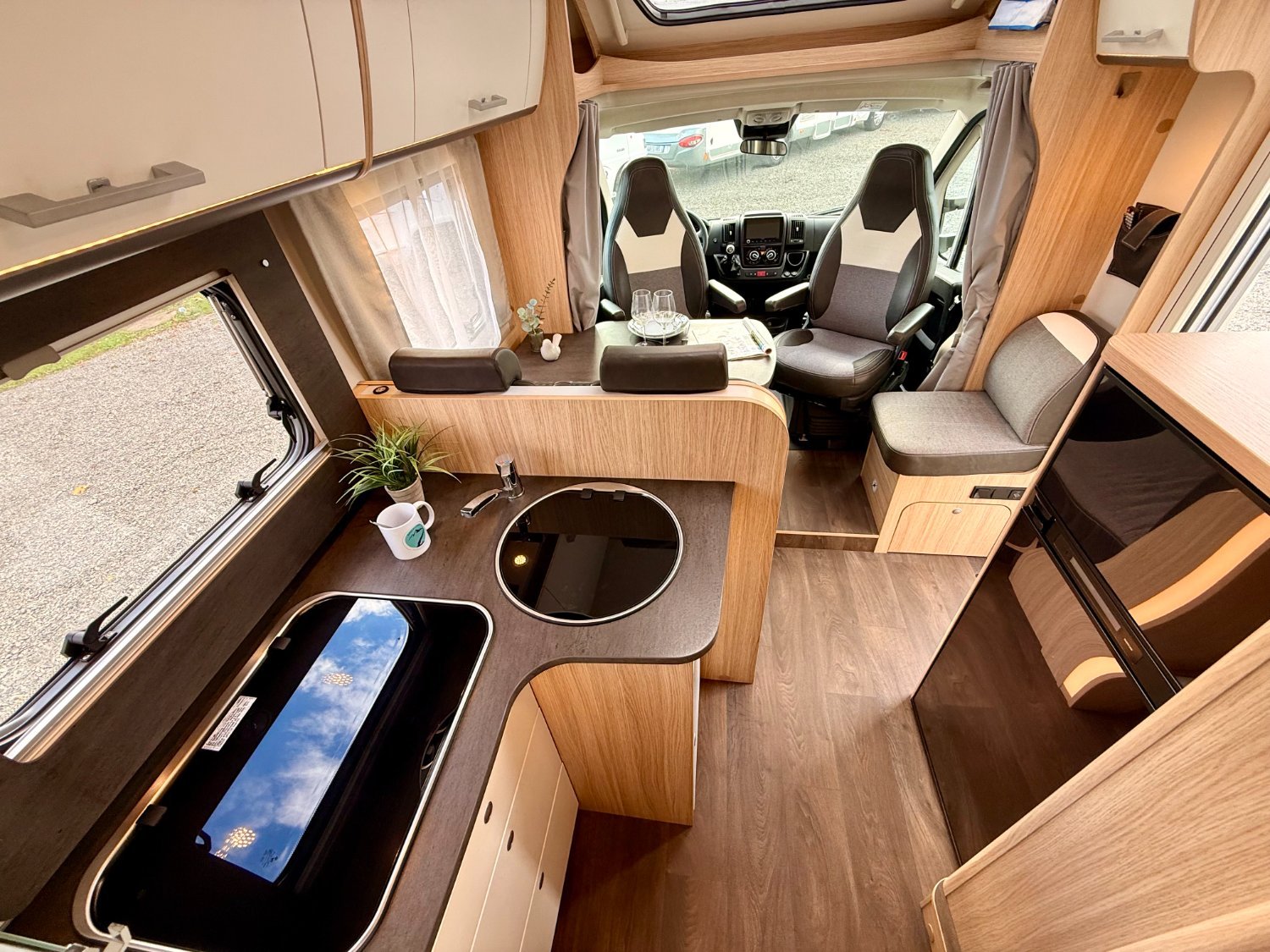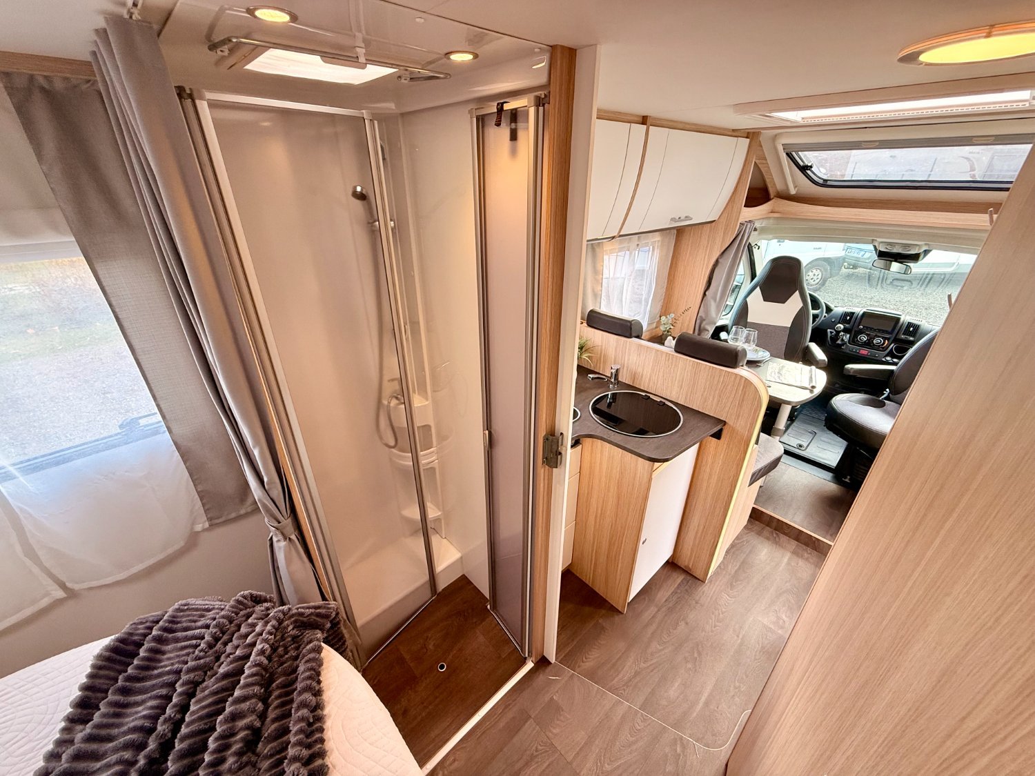 Le Sunlight T 69 S – 2020 dispose d’un lit central à l’arrière, offrant un vrai confort pour voyager à deux. Sa cuisine pratique et bien pensée permet de préparer facilement les repas, même lors de longs séjours. L’intérieur est lumineux, fonctionnel et doté de nombreux rangements. C’est un modèle idéal pour voyager en toute simplicité et profiter pleinement de la route.