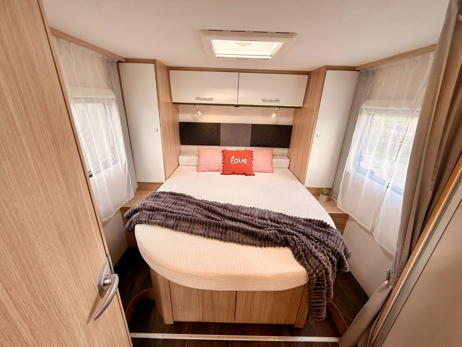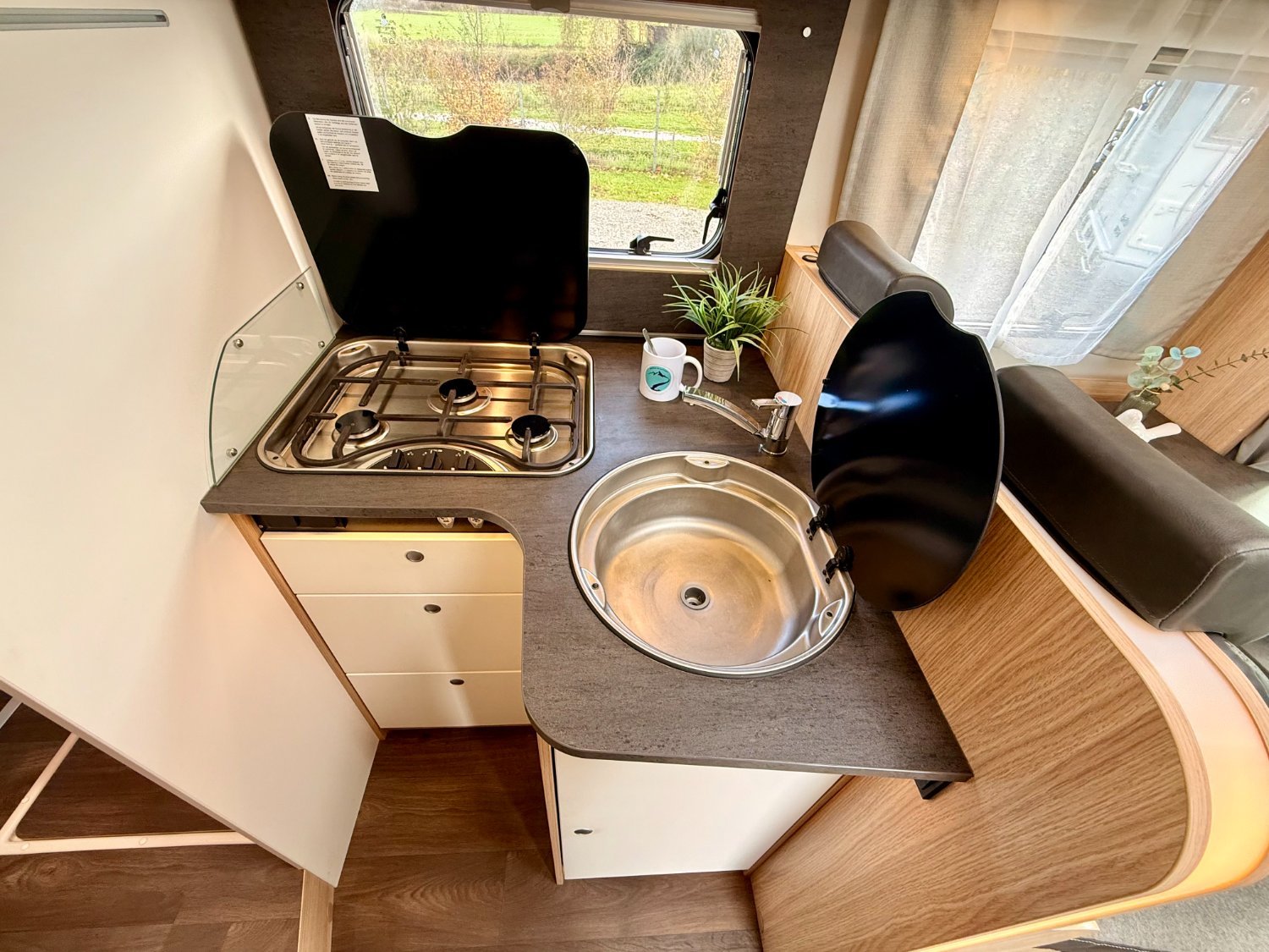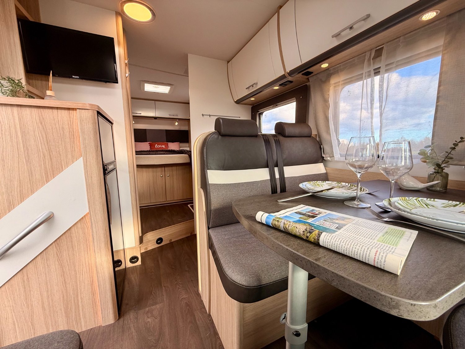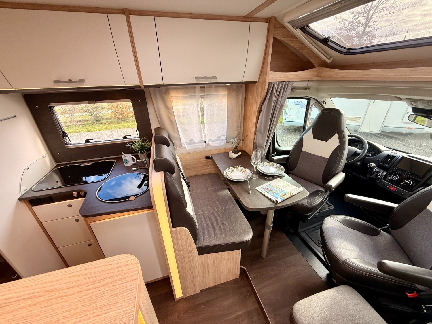 Le Sunlight T 69 S – 2020 dispose d’un lit central à l’arrière, offrant un vrai confort pour voyager à deux. Sa cuisine pratique et bien pensée permet de préparer facilement les repas, même lors de longs séjours. L’intérieur est lumineux, fonctionnel et doté de nombreux rangements. C’est un modèle idéal pour voyager en toute simplicité et profiter pleinement de la route.