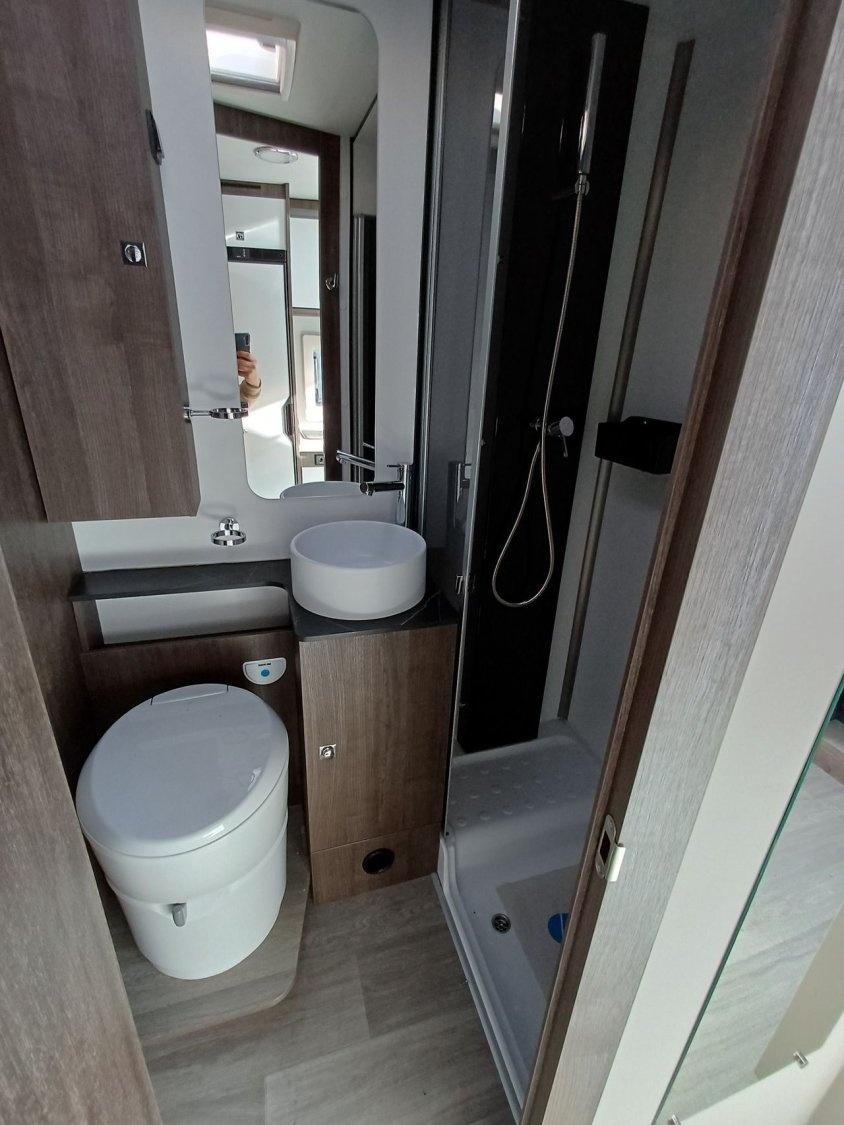 - Kit départ (batterie 12 V, 2 cales, rallonge 230 V, tuyau eau, liquide WC, extincteur, gilet jaune, 2 triangles)