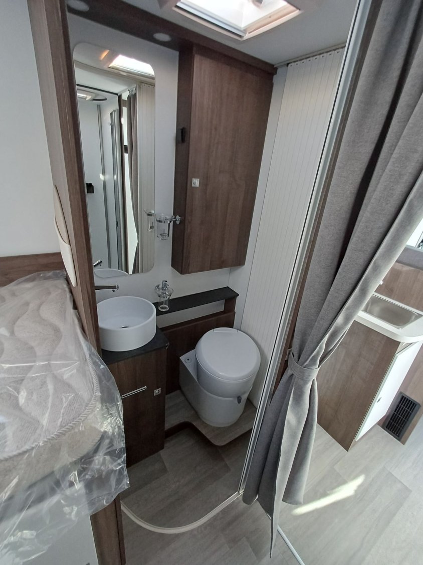- Kit départ (batterie 12 V, 2 cales, rallonge 230 V, tuyau eau, liquide WC, extincteur, gilet jaune, 2 triangles)