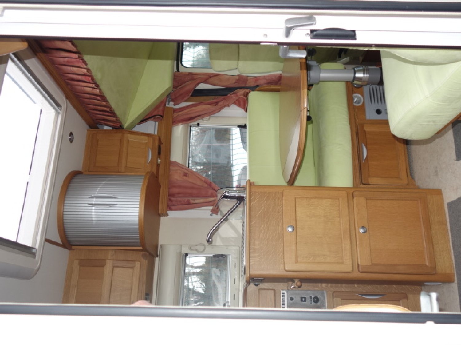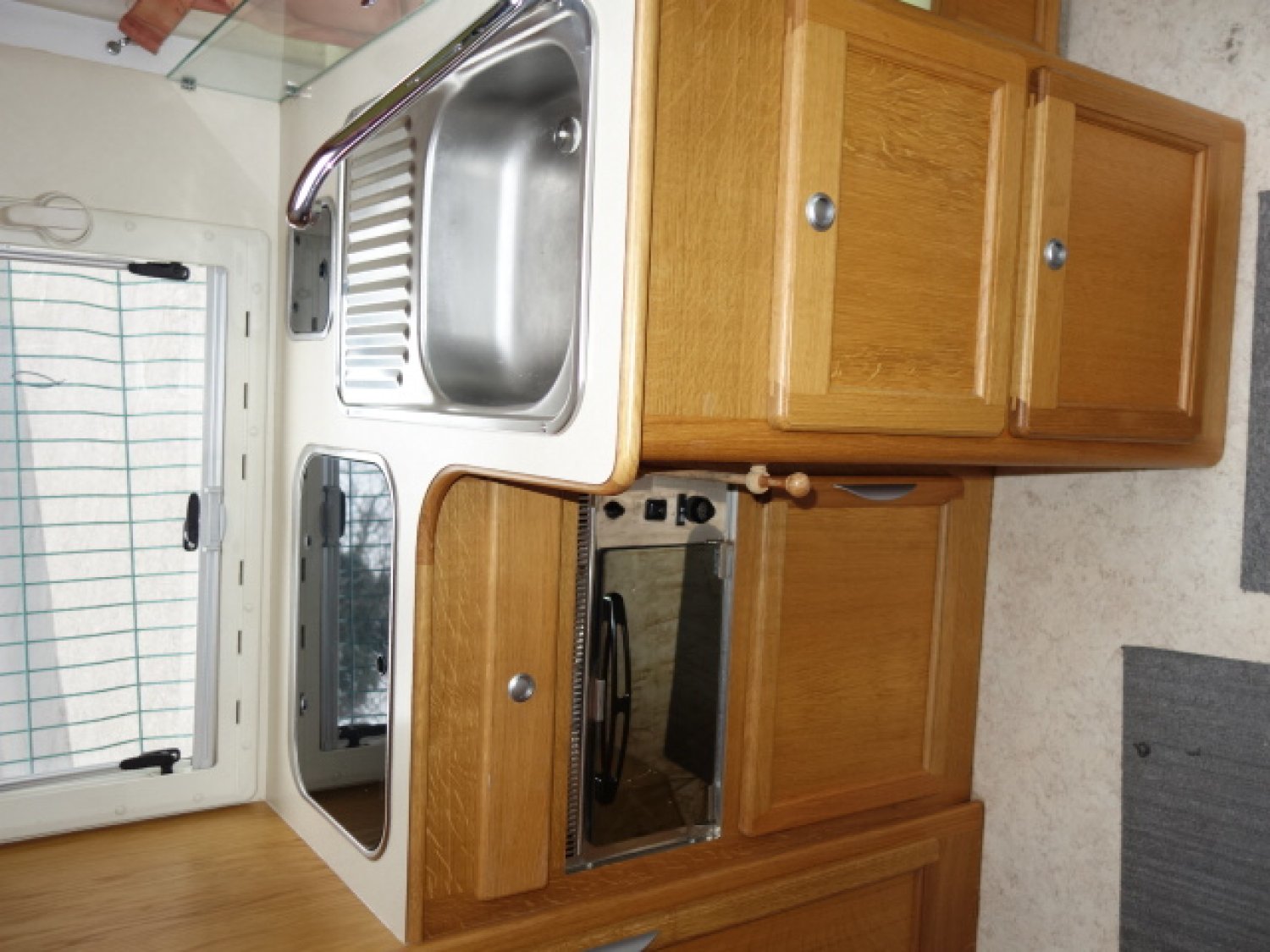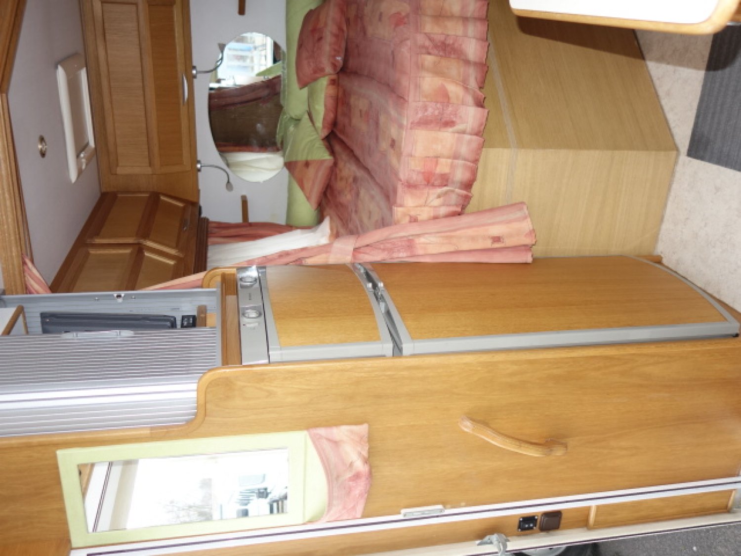 Intégral haut de gamme sur Mercedes 316 CDI, 5 cylindres, lit arrière longitudinal dit " à la française", cabinet de toilette avec WC et douche, lit de pavillon, équipements: store, panneau solaire, antenne satellite automatique, TV, auto radio, caméra de recul, alarme, 2 batteries cellule, SOG.