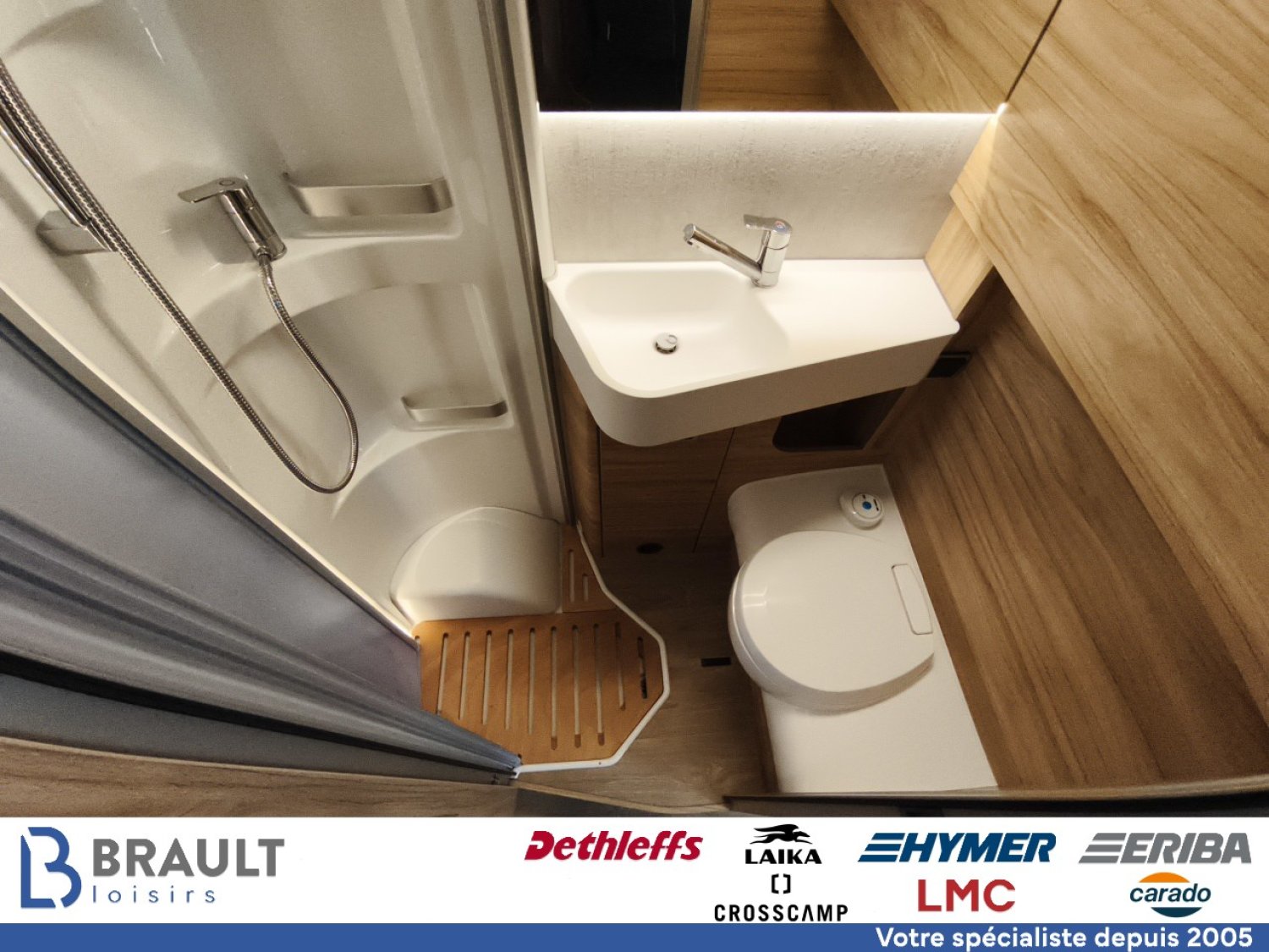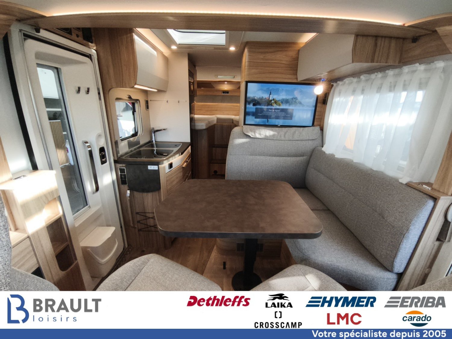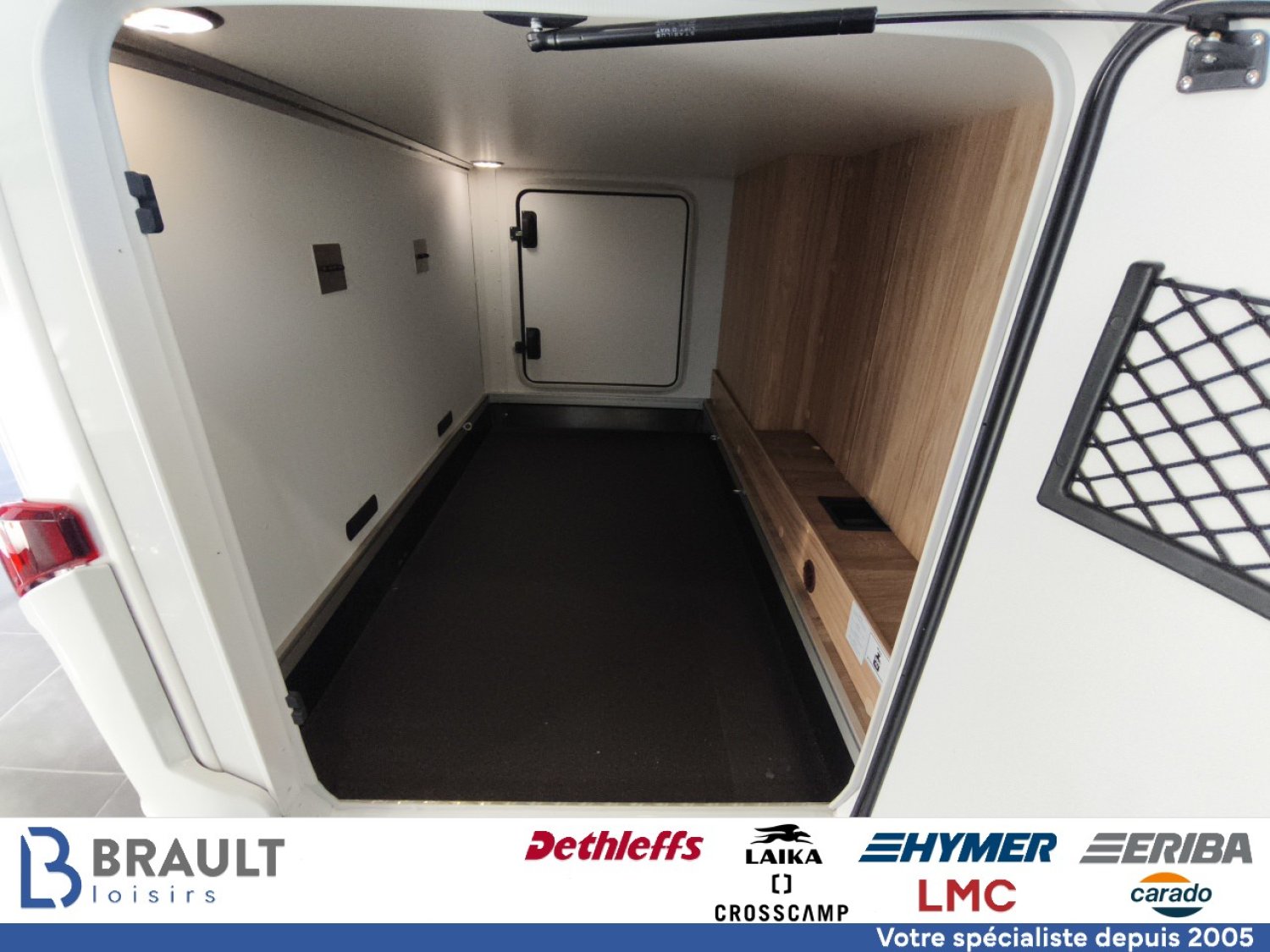 Réservoir carburant 90l, volant et pommeau de levier de vitesse en cuir, jantes alu 16", store extérieur, porte de soute côté conducteur, porte conducteur avec lève-vitre électrique et éclairage d'entrée, porte cellule vitrée avec moustiquaire et poubelle intégrée, transformation de la dinette en couchage, pied de table télescopique, coussin supplémentaire entre lits jumeaux pour maxi couchage, éclairage d'ambiance, inverseur automatique de gaz avec capteur de chocs et résistance anti-givre, filtre à gaz, prises supplémentaires, support TV 32". TV Led 32" avec lecteur DVD, parabole automatique 65cm, caméra de recul)