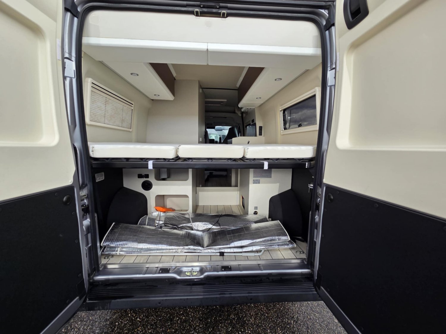 Aménagement Westfalia : finitions haut de gamme, nombreux rangements, lit confortable