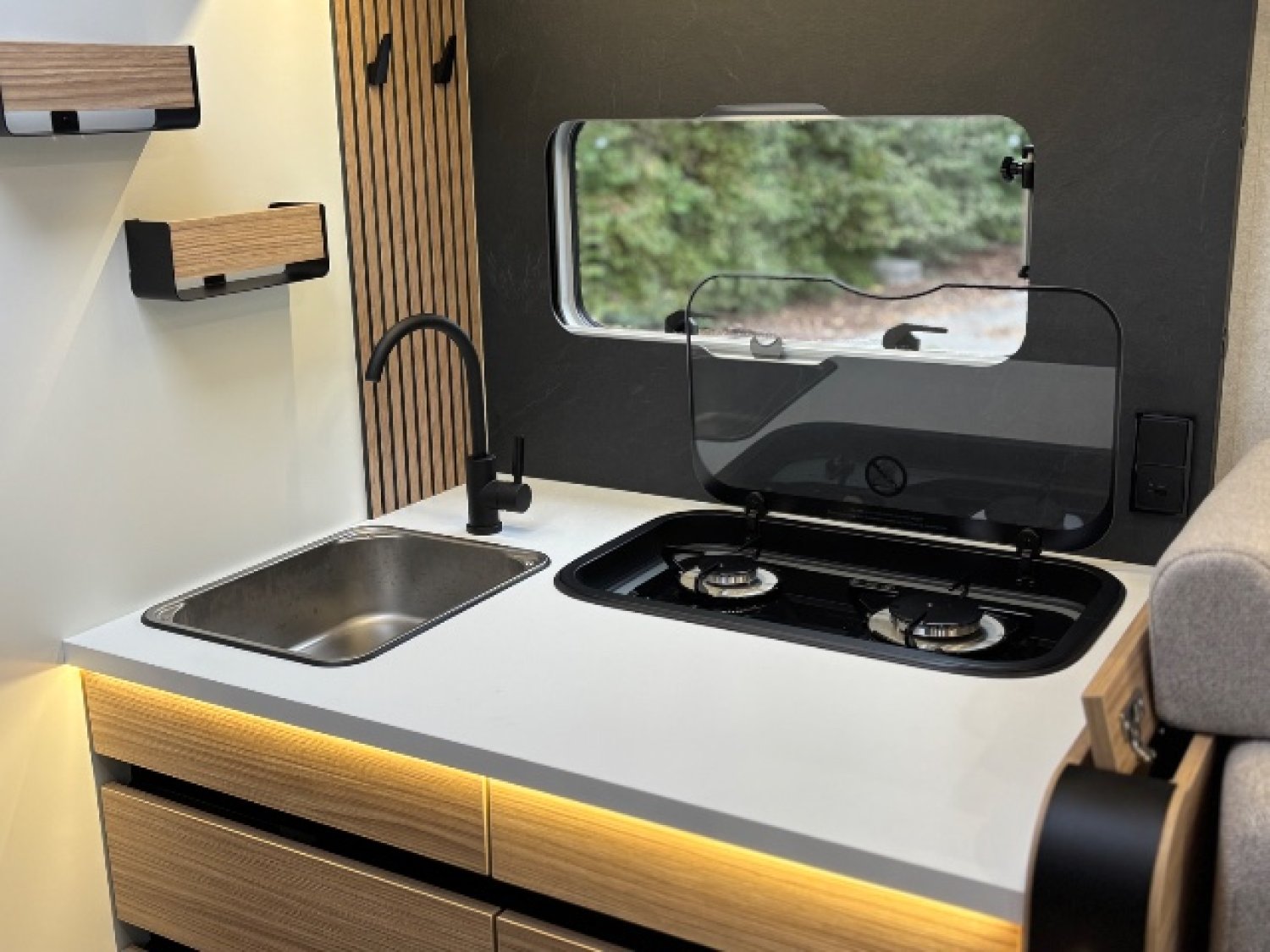 2 Panneaux solaire 100w, Batterie lithium 200 AH, Booster de charge 40A, Chauffage Truma 6DE, Réfrigérateur compression 140L, Store banne, Système multimedia pioneer 7'' avec caméra de recul, Tirroir bas de caisse
