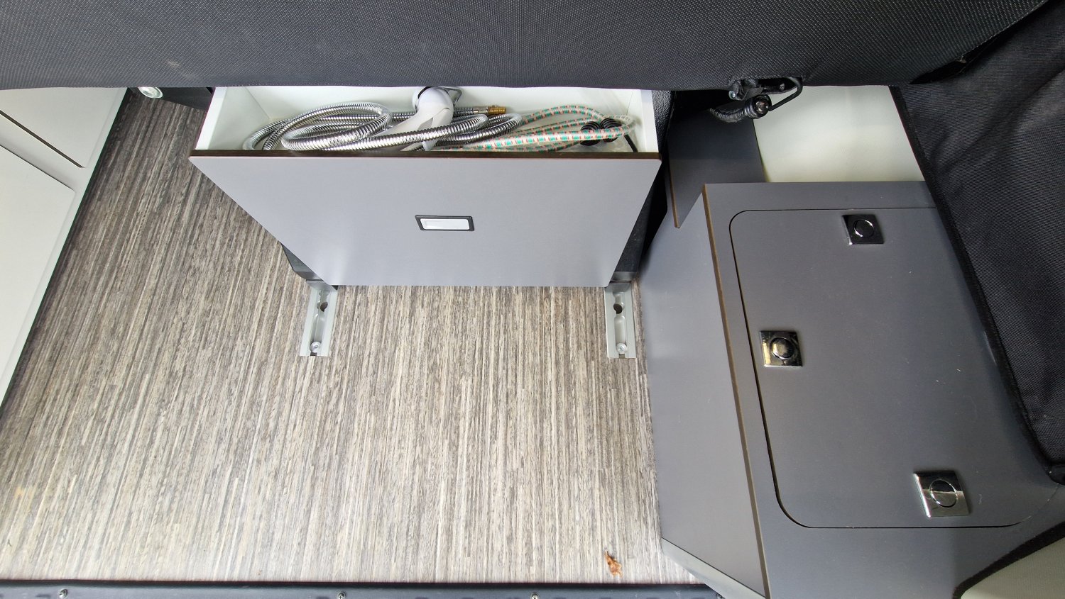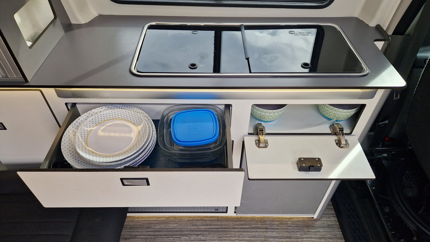Vivez confortablement l’aventure au quotidien : un toit relevable avec lit mezzanine et vue panoramique + un lit banquette amovible. Un coin cuisine fonctionnel avec de nombreux rangements + une table amovible permettant d’offrir pour les repas un bel espace salon convivial grâce à ces deux sièges cabine pivotants. Une douchette extérieure + douche solaire et un WC nomade complètent la dotation.