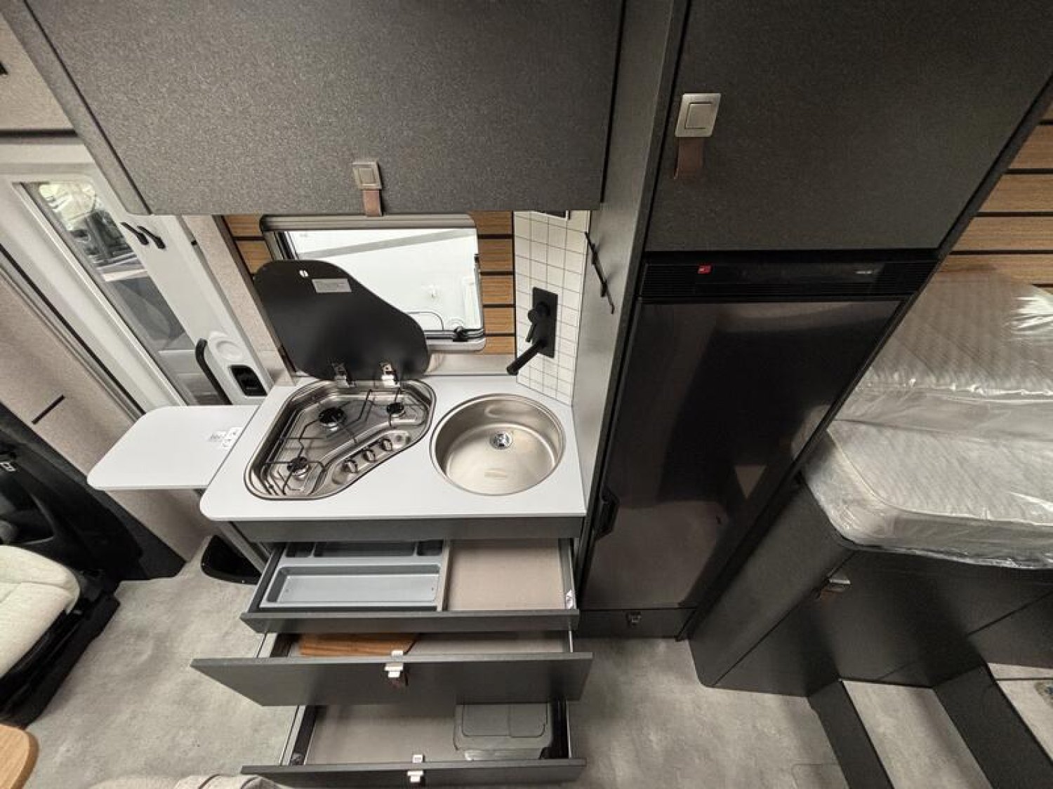 Pack complet ML-T Xperience Série spéciale Xperience : Mercedes-Benz Sprinter 3,5T - 417 CDI - 125KW/170CV - EURO VI-E Couleur extérieure cabine : gris Ténorite (métallisé) Sérigraphie Xperience Boîte de vitesses automatique 9G-TRONIC incluant la fonction Hold Feux antibrouillard avec feux de virage Jantes alliage 16'' Borbet coloris noir et pneus 4 saisons Volant cuir (uniquement avec la boîte de vitesses automatique) Régulateur de vitesse actif DISTRONIC PLUS avec commandes au volant Assistant reconnaissance des panneaux de signalisation Store extérieur 400 x 250 cm avec éclairage LED, boîtier noir Porte cellule Confort fermeture 2 points avec baie, store occultant et poubelle intégrés Transformation dînette en L en couchage (table au pied télescopique + coussin supplémentaire + utilisation du siège conducteur) Dînette en L confort avec coussins lounge, table coulissante longitudinalement / transversalement et 2 ceintures 3 points intégrées Système de couchage avec sommier à assiettes (lit(s) arrière) Coussin supplémentaire pour lits jumeaux avec accès confort Coussins avec housses (4 pièces) Radio DAB Support écran plat 32" Smart TV LED 32" avec haut-parleurs intégrés, télécommande, lecteur DVD, "Smart-Multimedia-System" HYMER (DVB-T / C, DVB-S2), récepteur inclus Système multimédia MBUX 10,25" avec caméra de recul, commande vocale et écran tactile, y compris navigation & intégration pour smartphone Pack capteurs HYMER Connect comprenant 1x capteur de niveau de gaz, 1x capteur de température et 2x capteurs de contact : 0 €