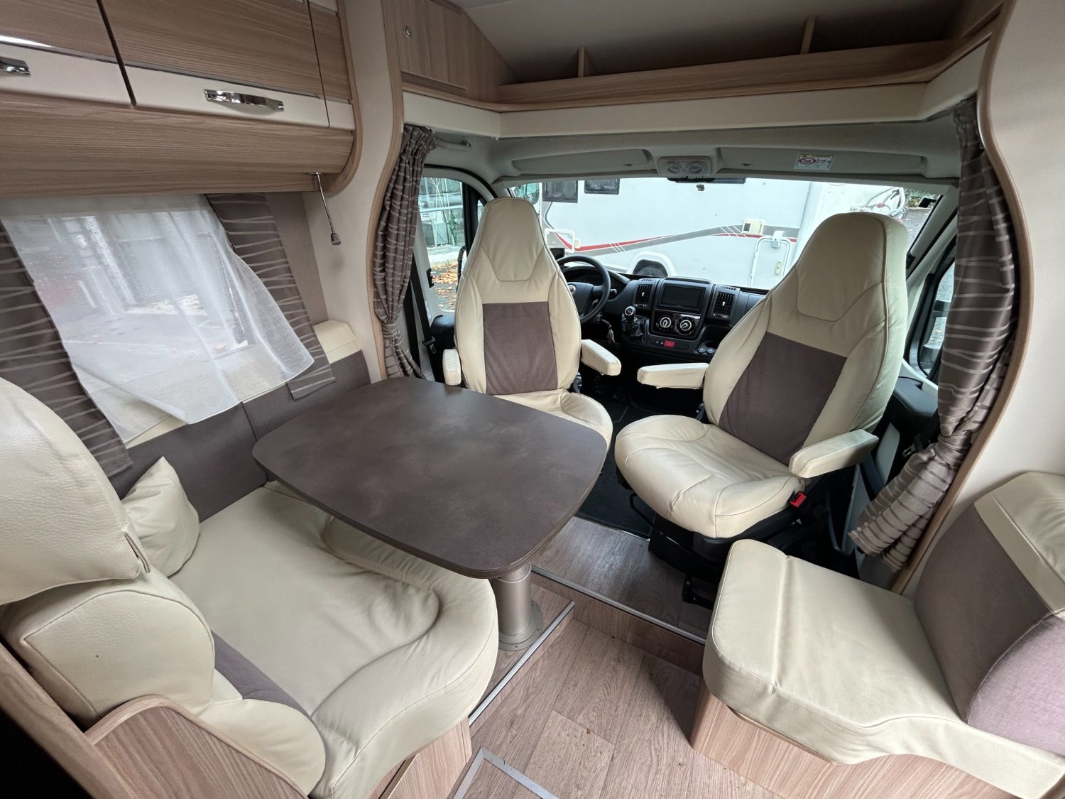 Profilé compact (5.99 m). 4 places carte grise / 3 couchages. Motorisation fiable — généralement sur base Fiat — pour des déplacements sans souci. Lit longitudinal confortable à l’arrière, salon avant spacieux avec banquette, cuisine équipée avec espace de préparation suffisant, salle d’eau avec douche séparée, frigo standard et plusieurs rangements bien répartis. Intérieur fonctionnel et chaleureux, confort correct pour les trajets et la vie à bord, idéal pour des escapades en toute simplicité à bord d’un profilé pratique.