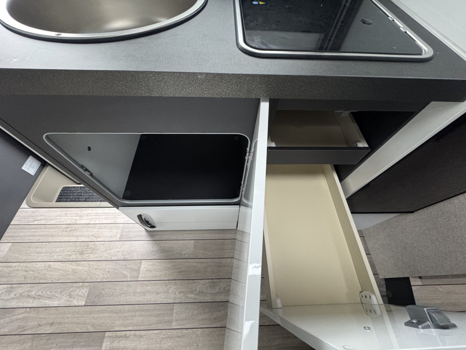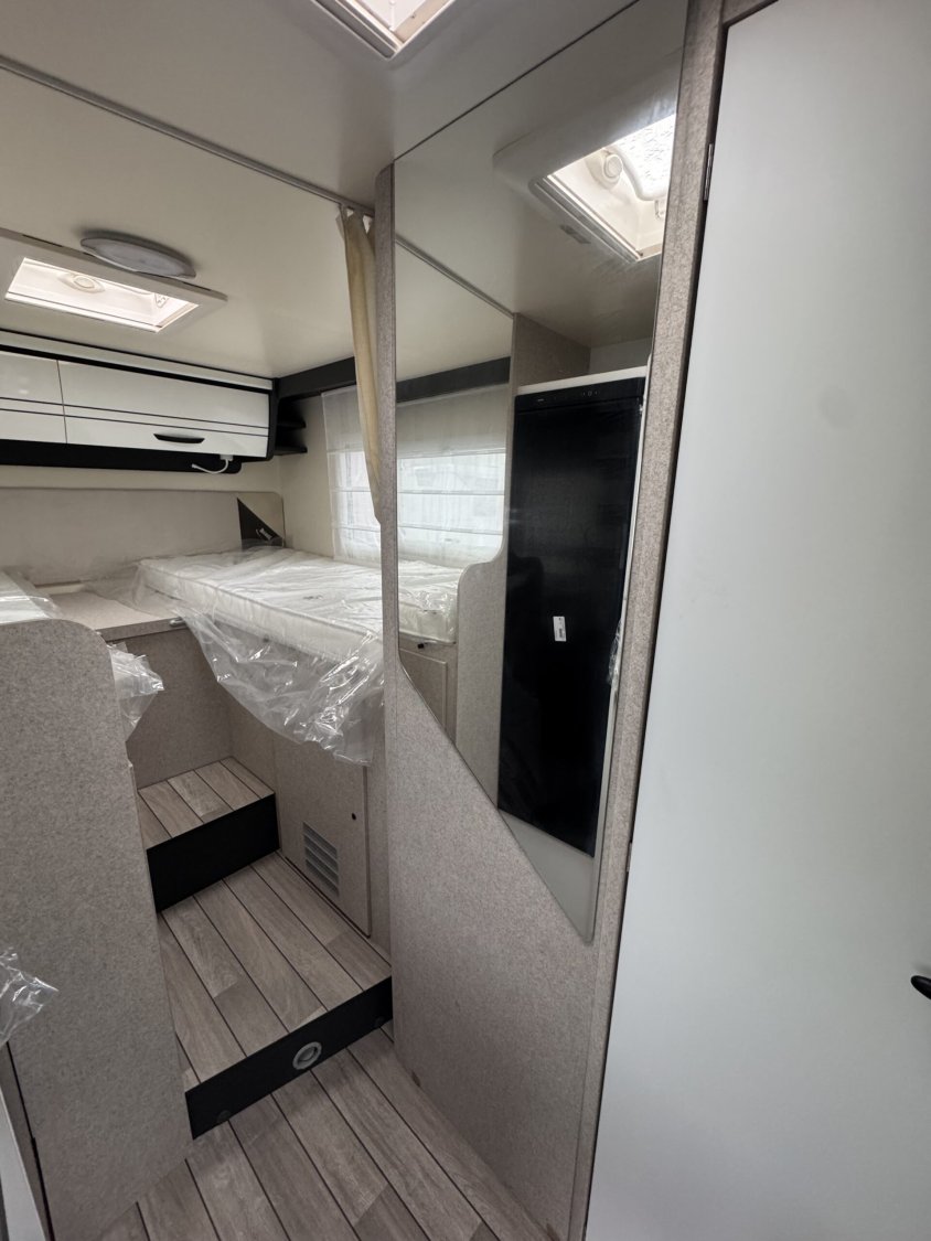 Réservoir Diesel 70Litres- Régulateur de vitesse (Cruise control) avec « Intelligent Speed Assist » – Feux de jours DRL-Feux anti-brouillard–Allumage automatique des phares – Essuie-glace automatique-Frein à main électrique–Service d’urgence FORD-Caméra de recul-Système de freinage avec atténuation de collision N2–Alerte et assistance au maintien dans la voie-Reconnaissance des panneaux de signalisation de vitesse –Avertissement du conduite en sens inverse-Capteurs de stationnement avant -Capteur de pression de gonflage des pneus -Écran tactile 12″ avec système SYNC 4 (Apple Car Play + Android Auto)-Tableau de bord semi-numérique de 8″ –Climatisation automatique-Modem 5G avec mises à jour sans fil également via smartphone –ABS/ESP, Start&Stop, double airbag, rétroviseurs réglables électriquement et dégivrants, Fix&Go (Kit réparation des pneus- •Carrosserie EXPS : Étanchéité maximale et isolation acoustique de l’habitacle. Intérieur murs et sol en matière plastique imperméable •Épaisseur du sol : 54 mm •Épaisseur du plafond et des murs : 30 mm •Toit extérieur en fibre de verre •Parois intérieures/extérieures en fibre de verre •Zone inférieure plancher châssis recouvert de fibre de verre-Chauffage Truma combi 4 Gaz (4000W) -5ème place homologuée -Transformation de la dinette en lit (lits supplémentaires- ISOFIX