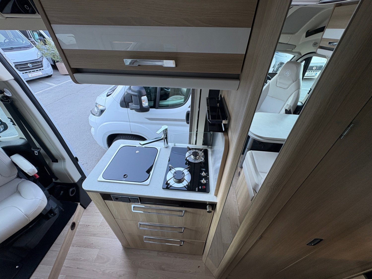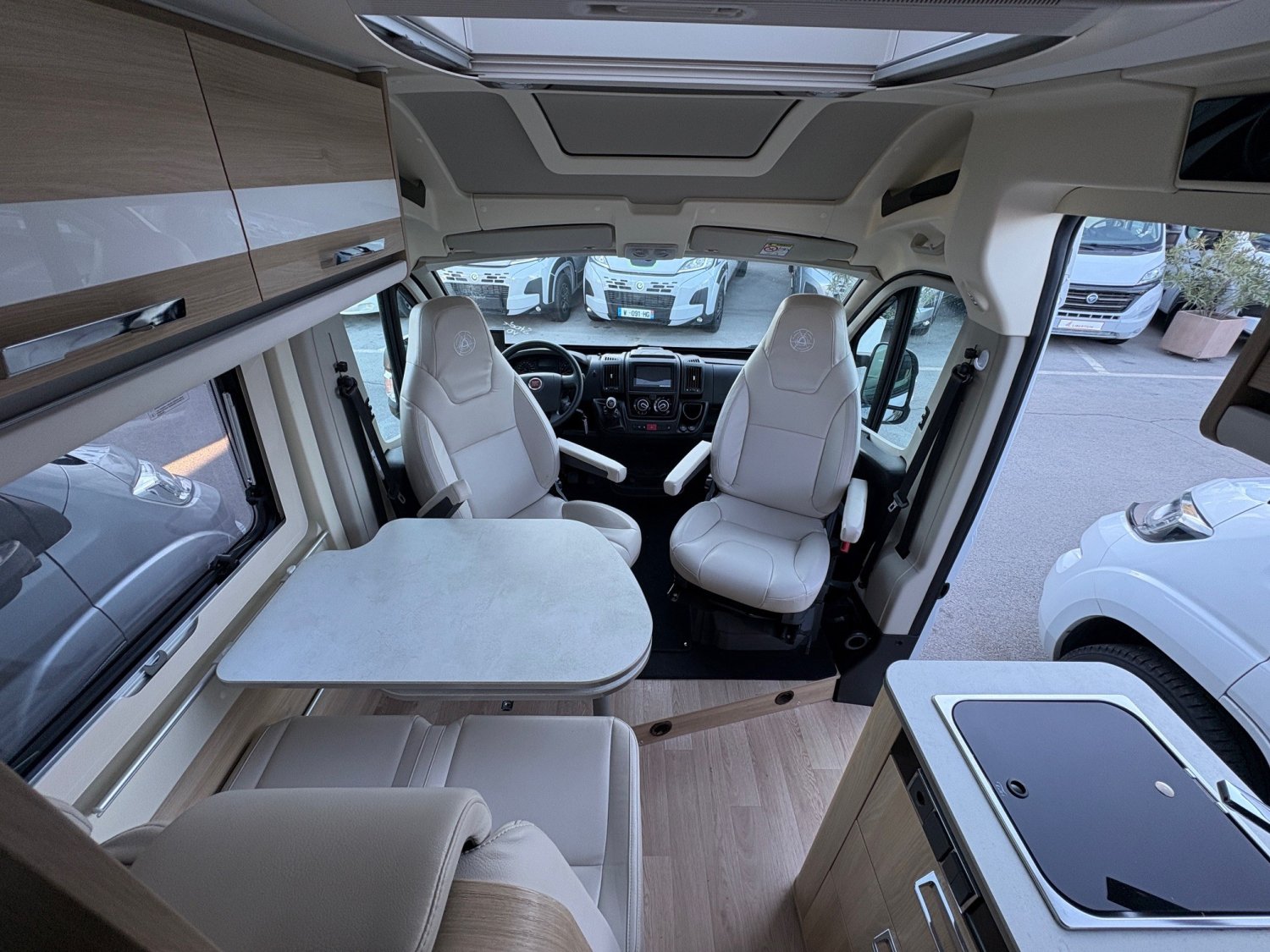 STATION MULTIMEDIA, CAMERA DE RECUL, REGULATEUR DE VITESSE, PANNEAU SOLAIRE, ANTENNE SATELLITE AUTOMATIQUE, MARCHE PIED ELECTRIQUE, STORE CABINE, SELLERIE SIMILI CUIR, DOUCHETTE EXTERIEUR, MOUSTIQUAIRE DE PORTE