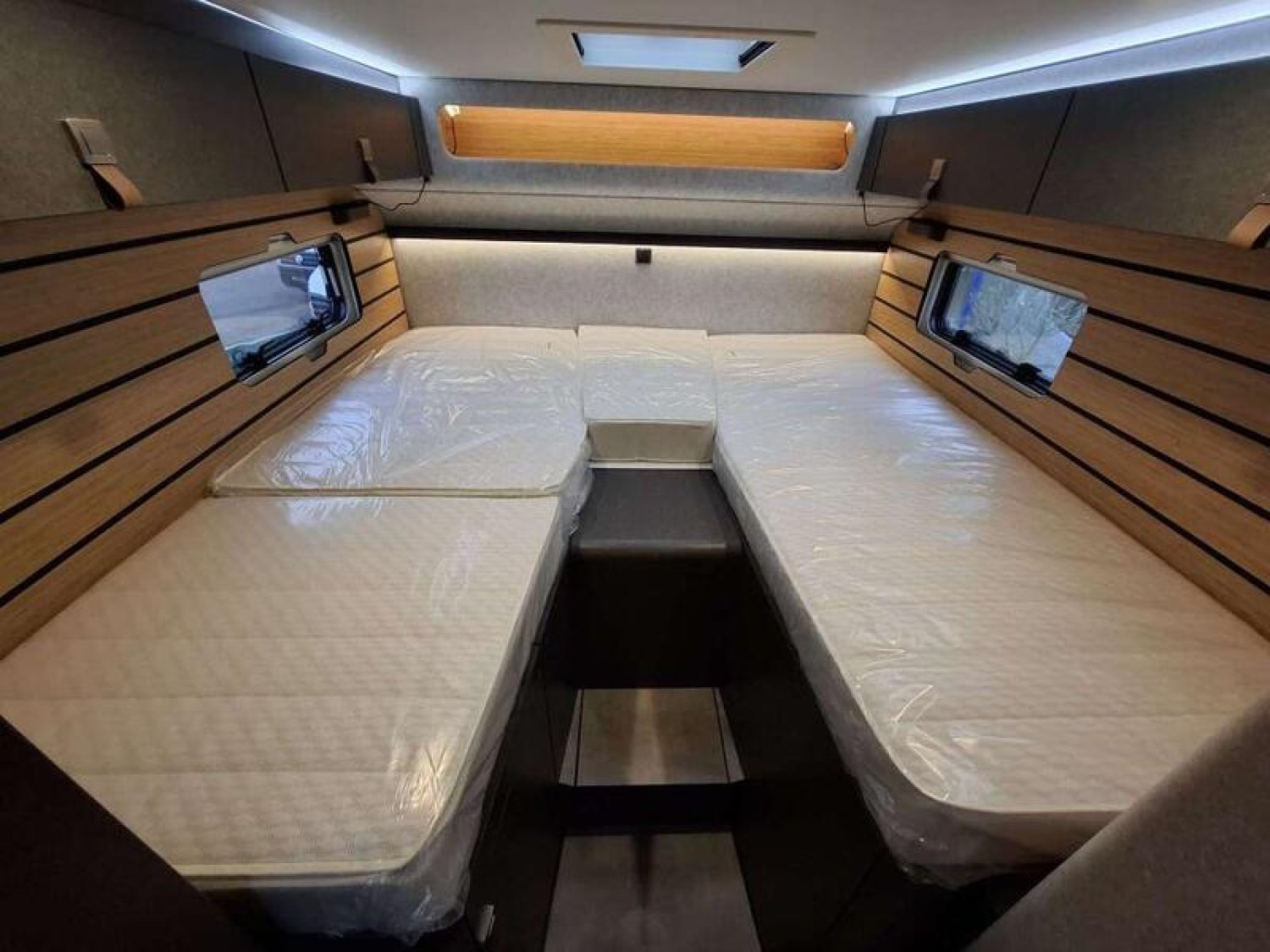 Douche extérieure dans le garage + Fermeture centralisée des portes conducteur, cellule et soute garage + Revêtement supplémentaire pour mise à niveau du cabinet de toilette + Résistance électrique de 1 800 W (pour chauffage à air chaud diesel de 6 kW) + Prises supplémentaires : 3 x 230 V / 1 x 12 V : 1935 €