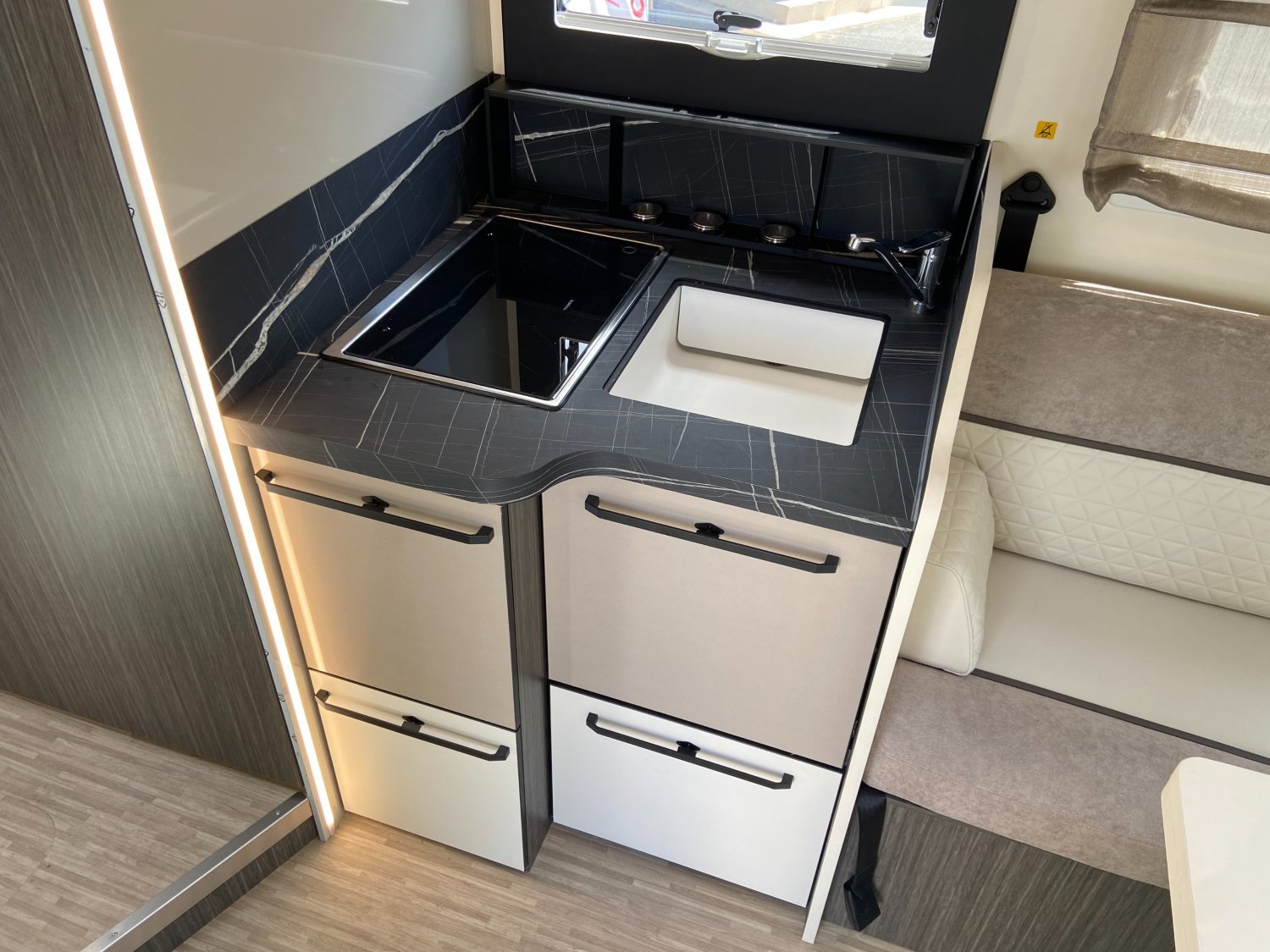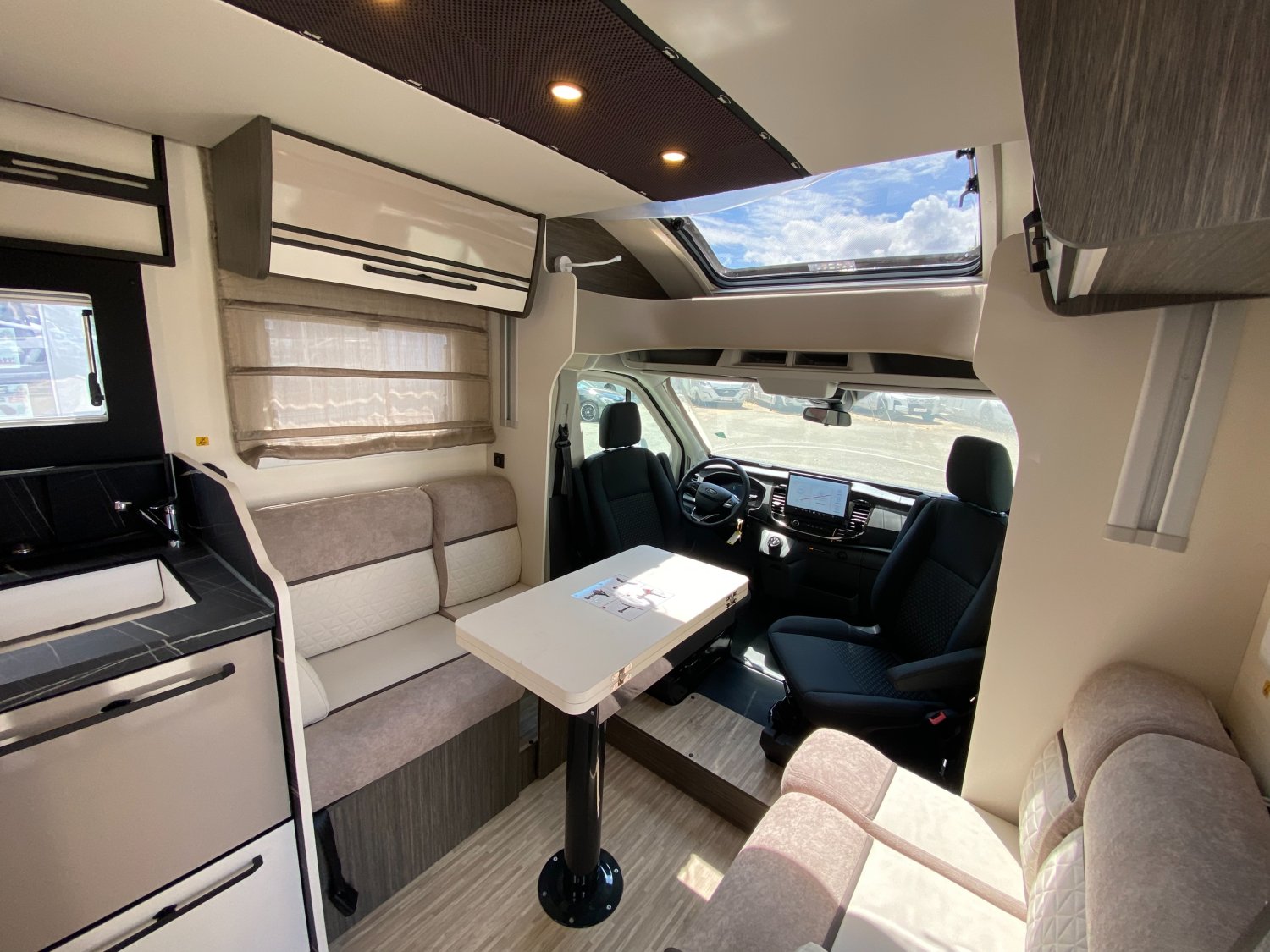 ECRAN TACTILE 12" AVEC APPLE CAR PLAY/ANDROID AUTO, ARMOIRES SUSPENDUES AVEC TABLES DE CHEVET ROTATIVES, REFRIGERATEUR A COMPRESSION 158L 2 PORTES, MOUSTIQUAIRE DE PORTE, LIT ARRIERE REGLABLE EN HAUTEUR, CHAUFFAGE TRUMA COMBI 4 GAZ, PANNEAU SOLAIRE 200 W AVEC REGULATEUR MPPT, RESERVOIR EAUX USEES ISOLE ET CHAUFFE, FIXATIONS ISOFIX, STORE EXTERIEUR ANTHRACITE 4.5 M, CLIMATISATION MOTEUR AUTOMATIQUE, MODEM 5G AVEC MISES A JOUR SANS FIL VIA SMARTPHONE, FEUX ARRIERE FULL LED, PORTE CELLULE XL AVEC 2 POINTS DE SECURITE CENTRALISEE, MOTORISATION BVA 165 CV, PARES-CHOCS COULEUR CARROSSERIE, REGULATEUR DE VITESSE, FEUX ANTIBROUILLARD, ESSUIES-GLACE AUTOMATIQUES, FREIN A MAIN ELECTRIQUE, ALERTE ET ASSISTANCE MAINTIEN DANS LA VOIE, RECONNAISSANCE DES PANNEAUX DE SIGNALISATION DE VITESSE, PRISE EXTERNE DE GAZ, DOUCHETTE EXTERIEURE, LIT DE PAVILLON ELECTRIQUE, STORE OCCULTANT PLISSE CABINE, PRISE USB DANS LA CHAMBRE ET 220 V SOUTE ET CUISINE, ALLUMAGE AUTOMATIQUE DES PHARES
