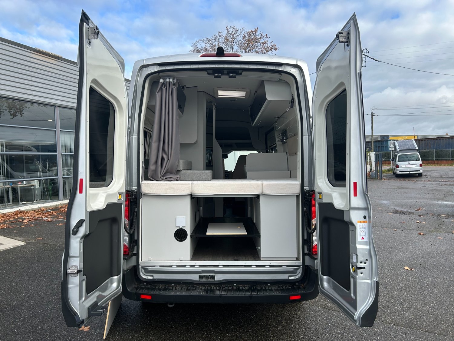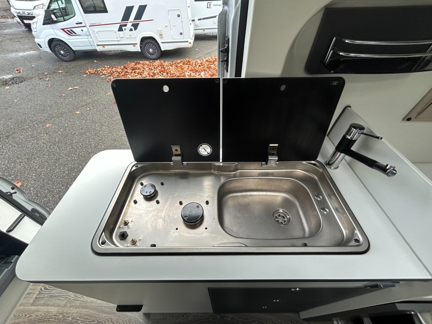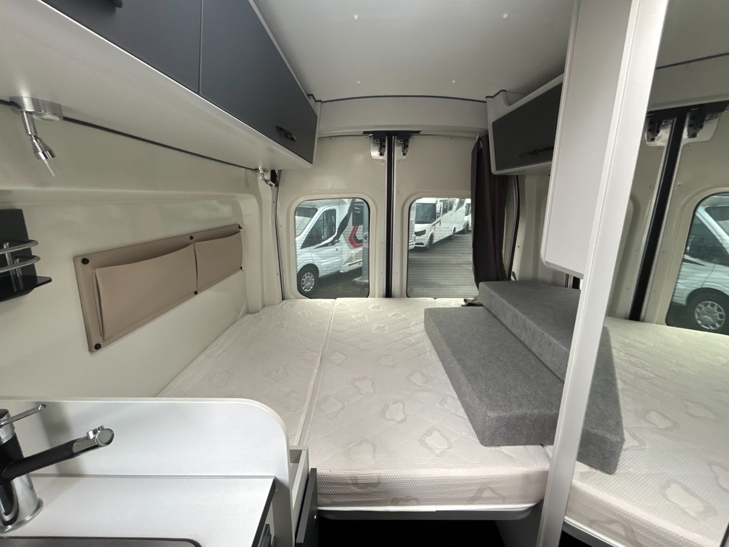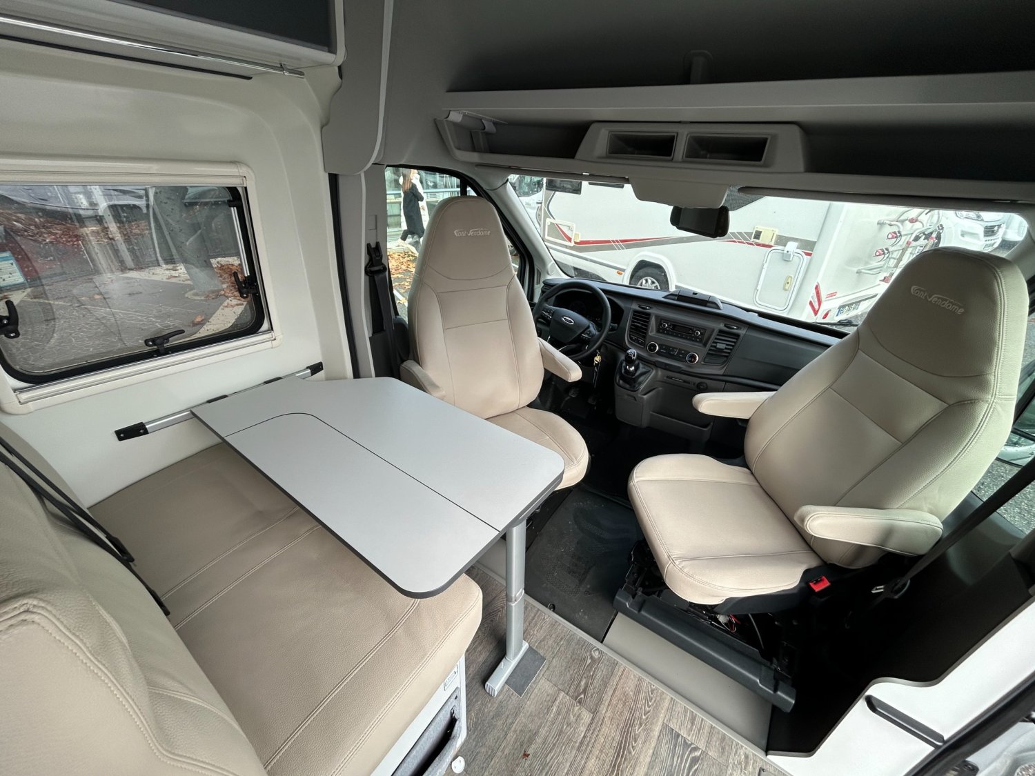 Fourgon compact et polyvalent (5,99 m). Motorisation 2.2 L – 170 ch sur porteur Ford. Lit transversal confortable, salon convivial avec banquette, cuisine fonctionnelle, salle d’eau modulable avec douche intégrée, frigo 90 L et rangements intelligents. Ambiance intérieure chaleureuse, isolation soignée et excellente maniabilité pour voyager partout avec style, confort et autonomie !