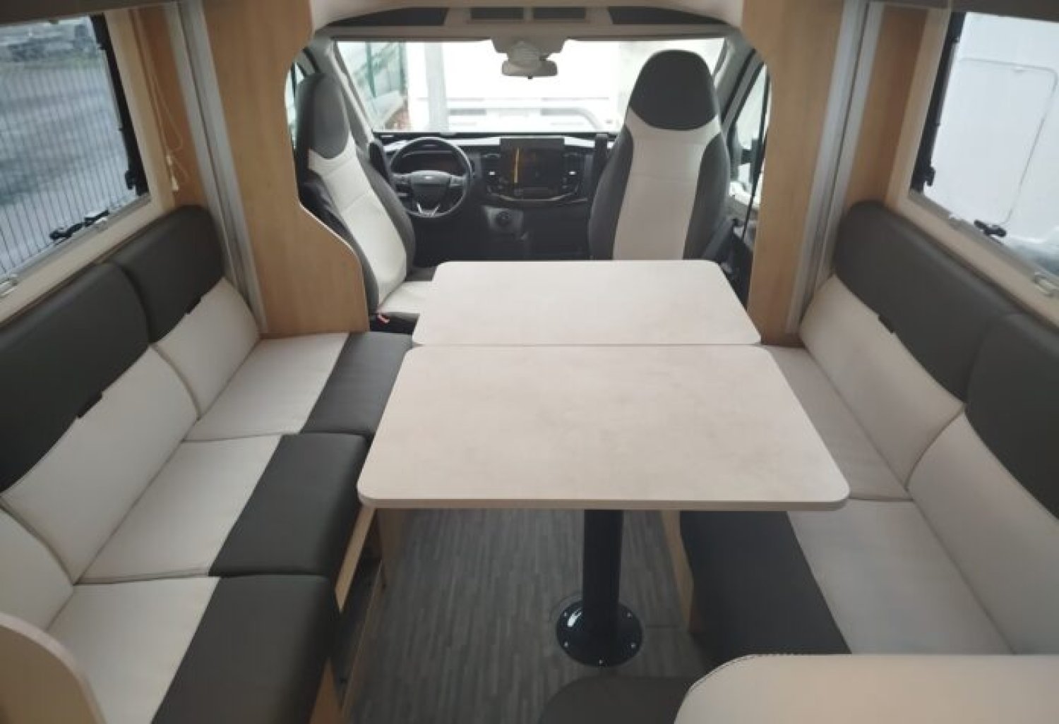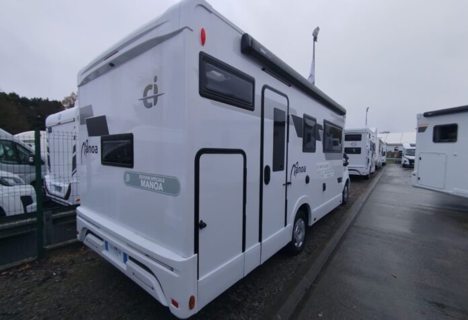 Le CI MANOA 74 XT est un profilé de 7.30 m de long sur porteur Ford Transit 2,0 L 165 ch avec boîte automatique. Il offre 6 places carte grise et 6 couchages grâce à son lit de pavillon, le couchage dinette convertible et ses deux lits superposés. C'est une implantation "familiale" permettant d'avoir qu'un grand espace de vie dans le salon.
