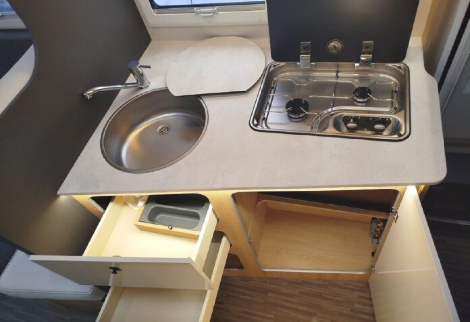 Pack manoa : motorisation 165 CV, feux diurnes, boites à gants avec serrure, habillage intérieur et tableau de bord finition « trend », pare chocs et bas-de-caisse latéraux peints couleur carrosserie, porte xl avec 2 points fermeture, fenêtre et fermeture centralisée, panneau solaire 200W avec régulateur MPPT, panneau de commande CP plus, skyroof, couvercle évier, housses de sièges cabine, store occultants plissées cabine.